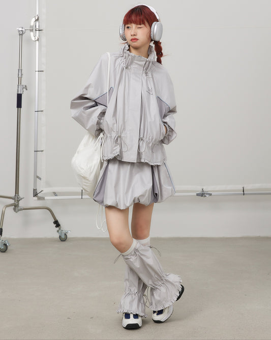 Sporty Lace-Trim High-Neck Short Jacket & Short Skirt & Leg Cover Setup NA8233
