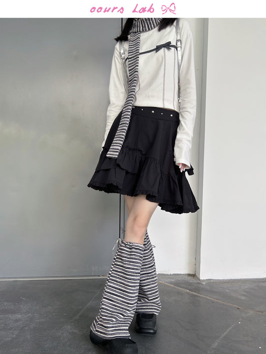 Stripe Knit Drawstring Scarf & Leg Warmers NA8249