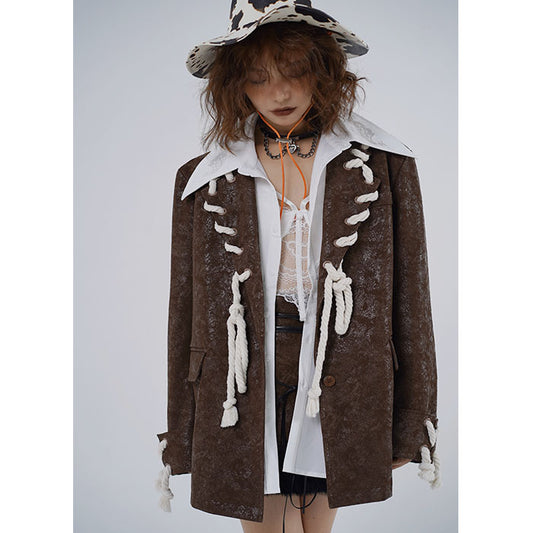 Rope Design PU Leather Jacket NA7772