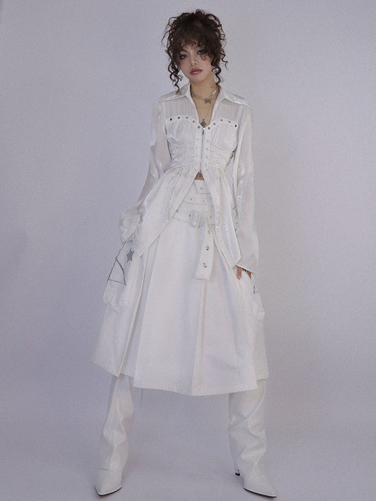 Star Design Low-Waist Pleats Long Skirt NA7771