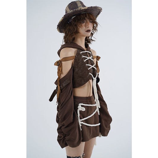 Irregular Cut-Out Pullover Hoodie & Short Skirt Setup NA7762