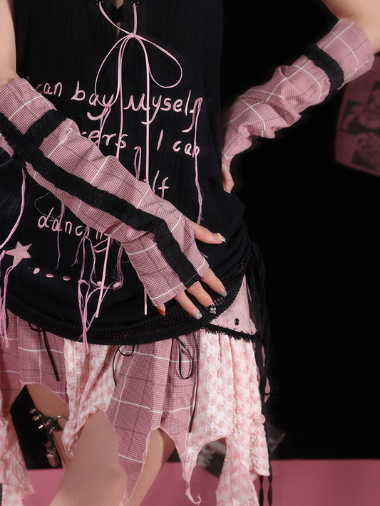 Plaid Lace Trim Arm Warmers NA7774
