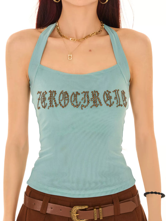 Rhinestone Decoration Hanging Neck Top NA3734