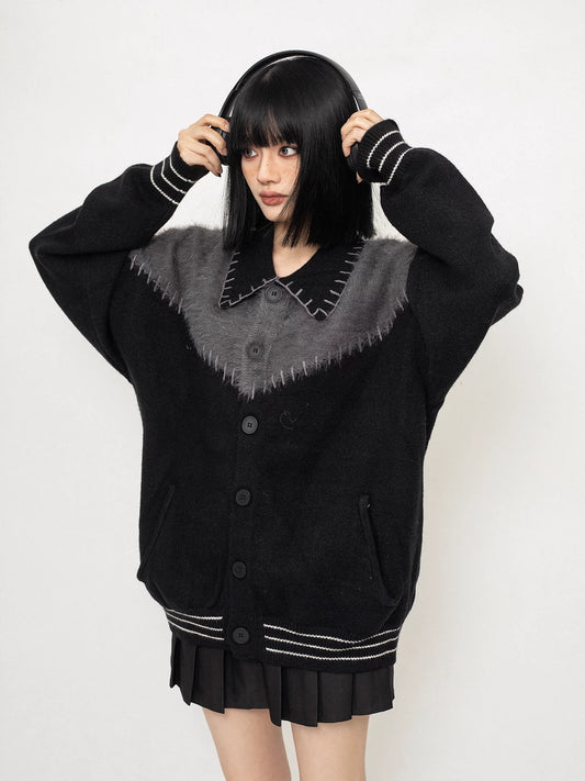 Contrast Color Polo Neck Knit Cardigan NA2605