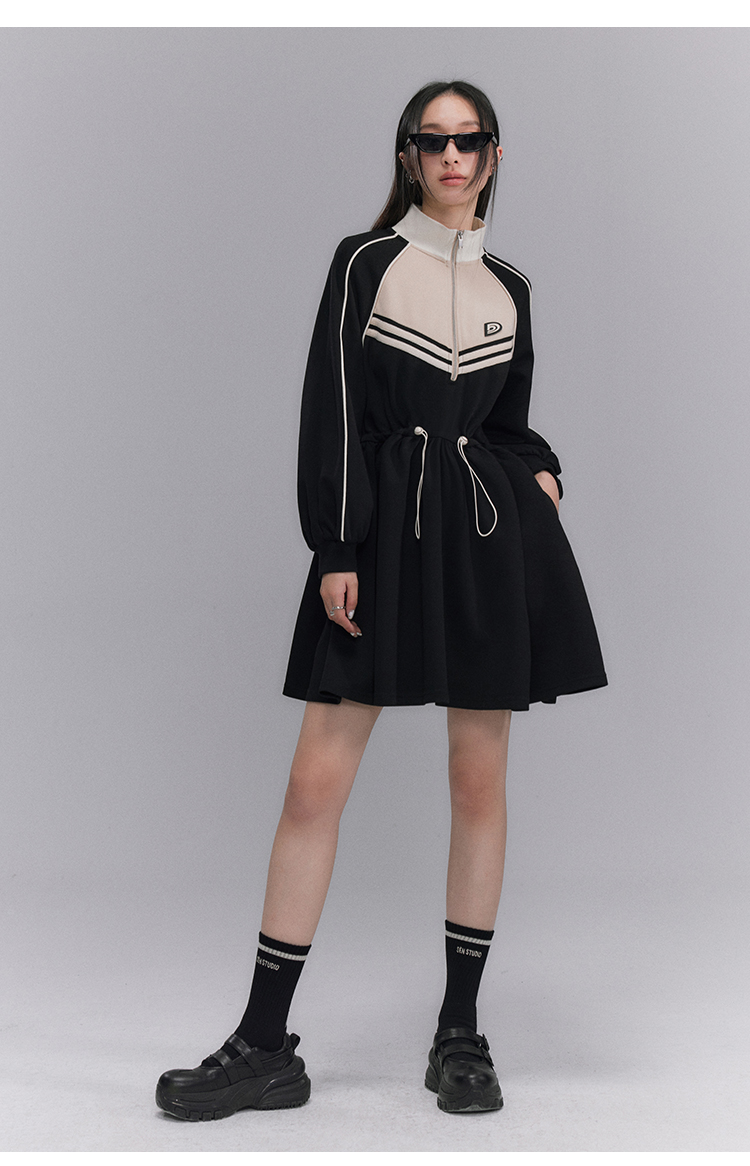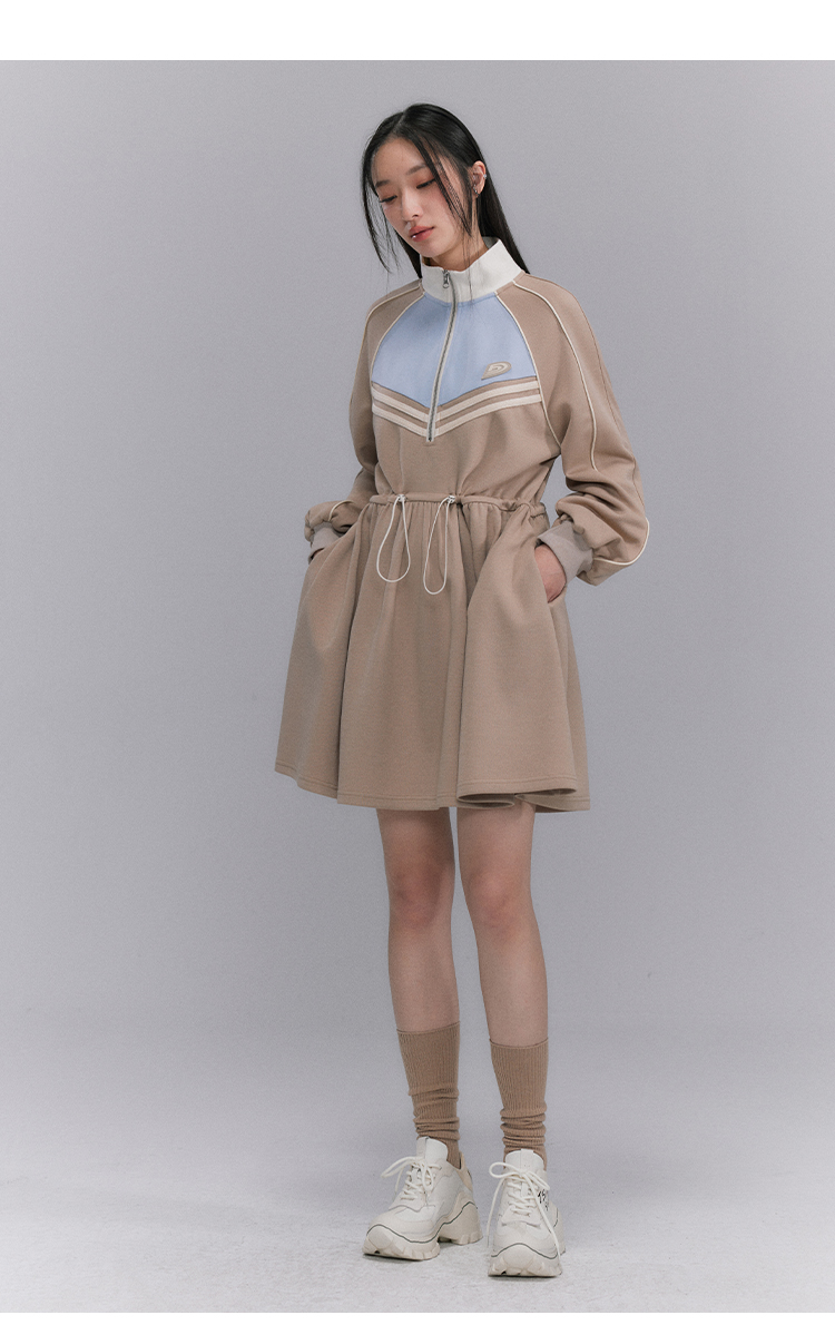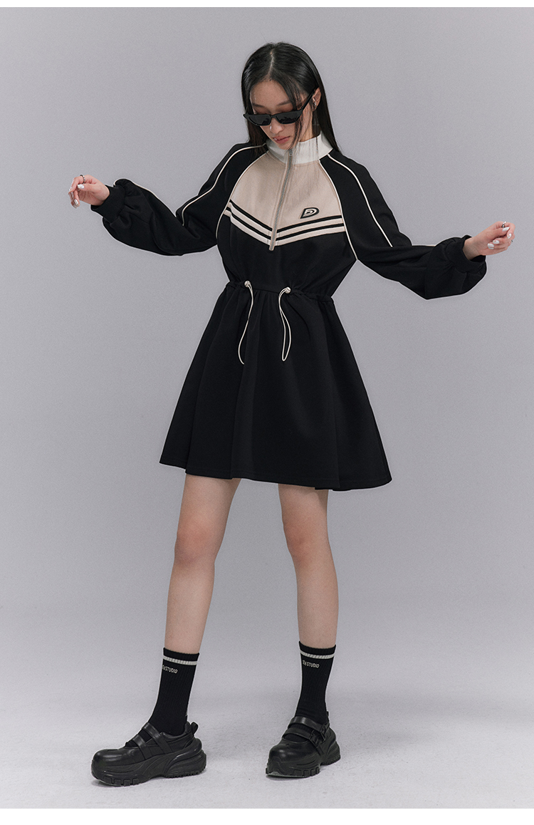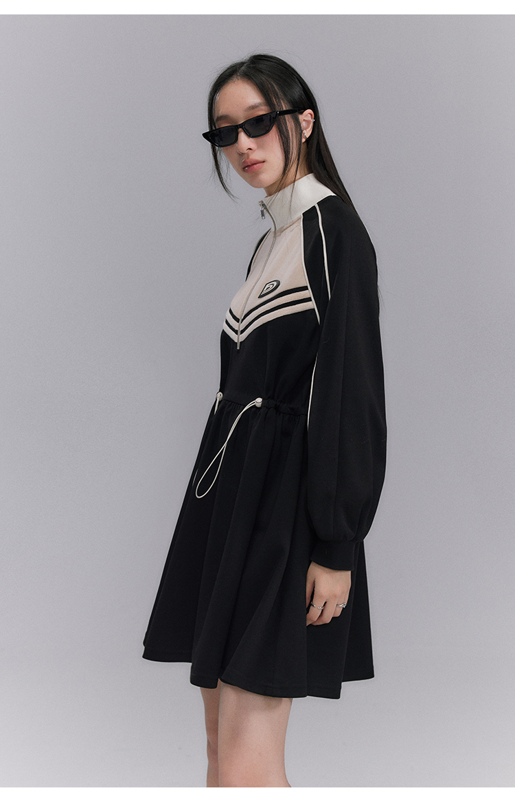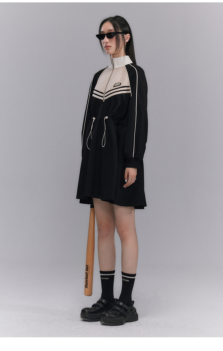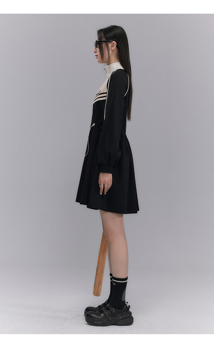 Embroidery Color Blocking Sporty Long Sleeve Jersey Dress NA5301