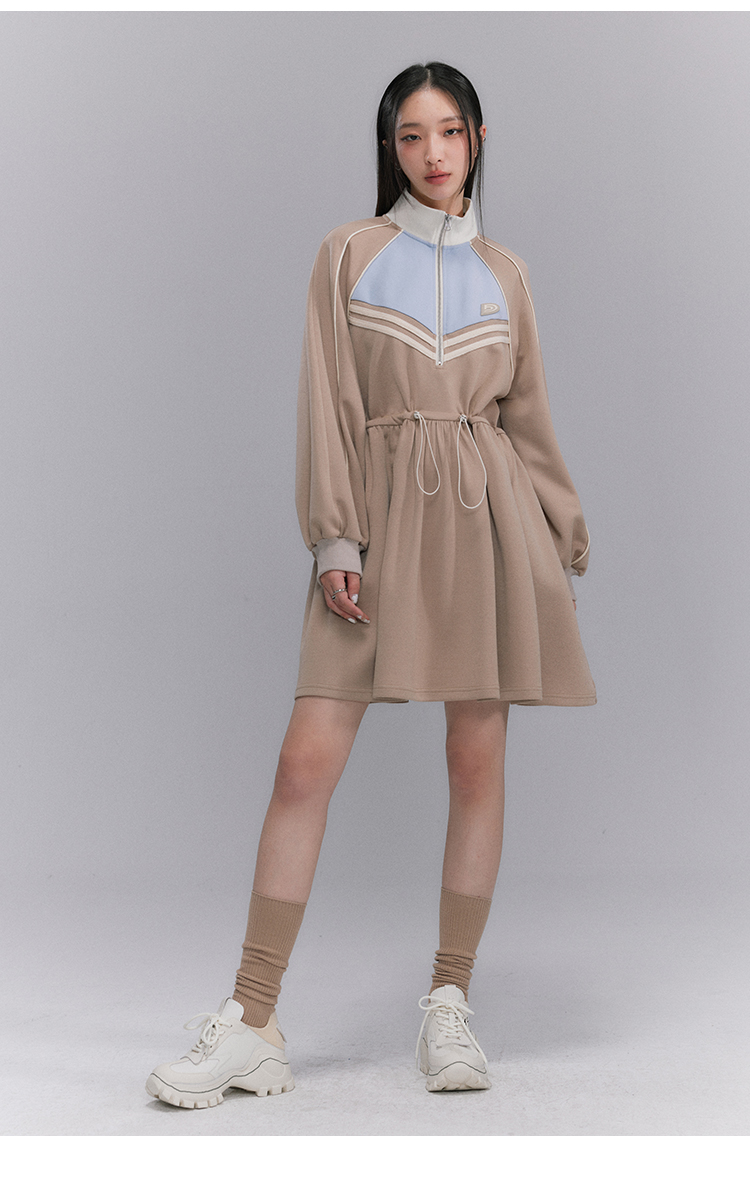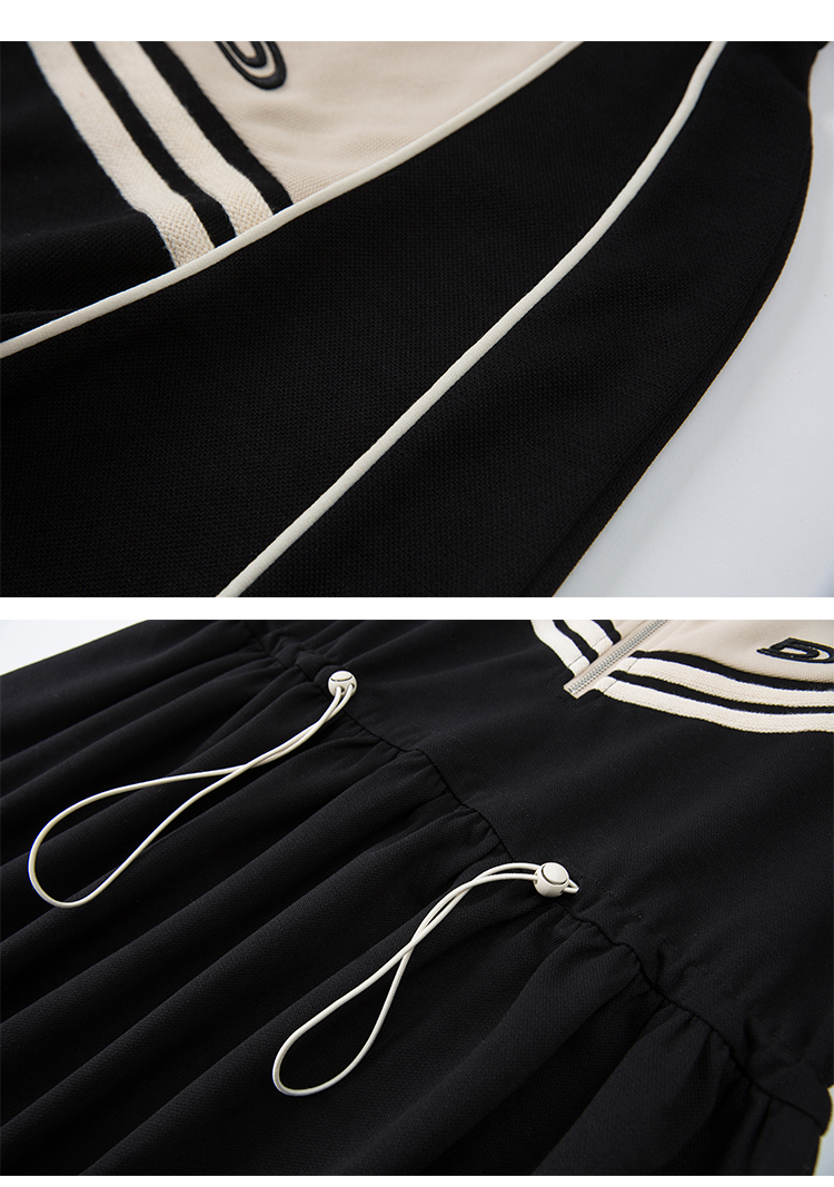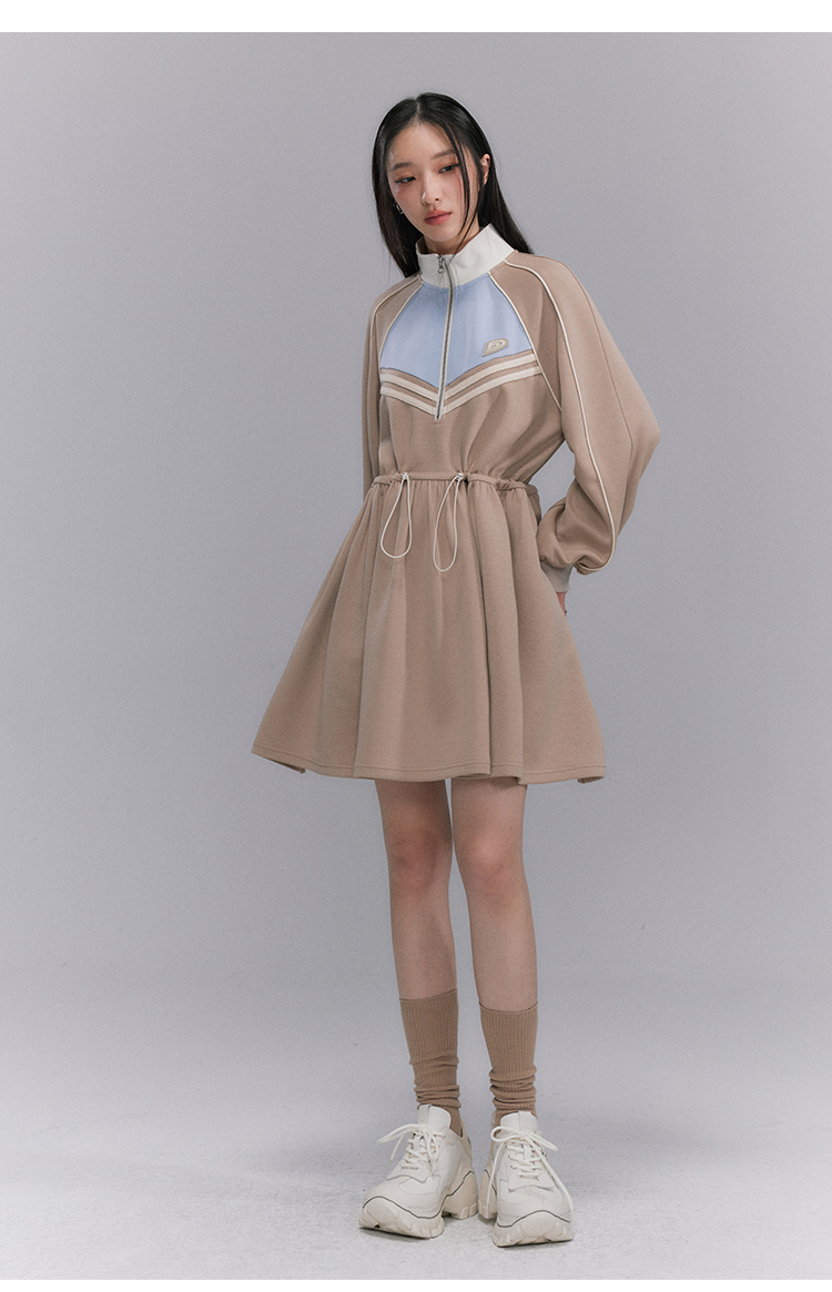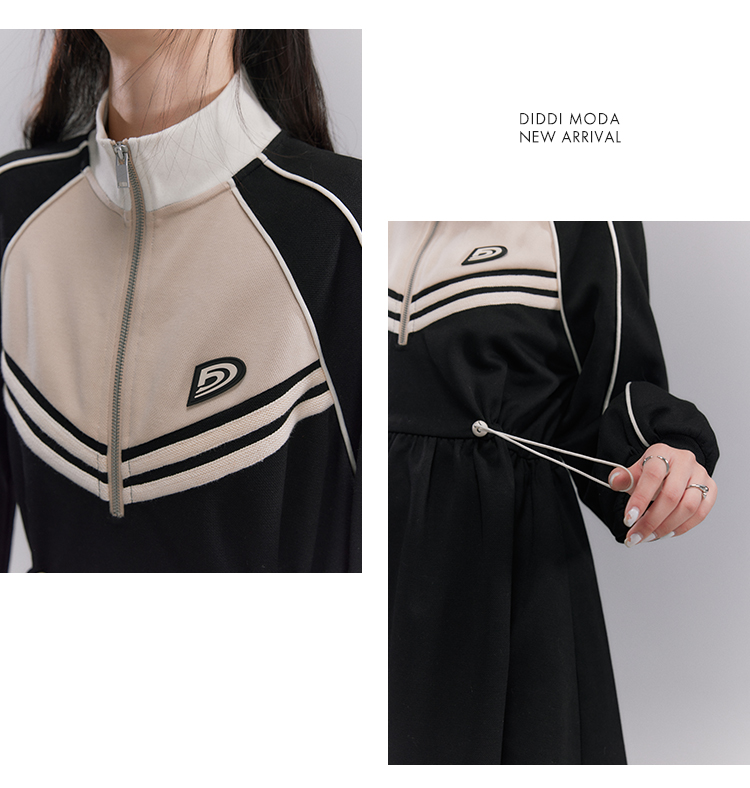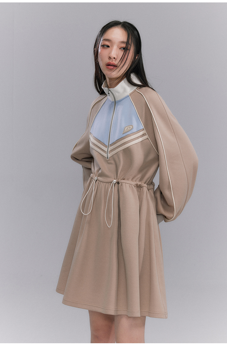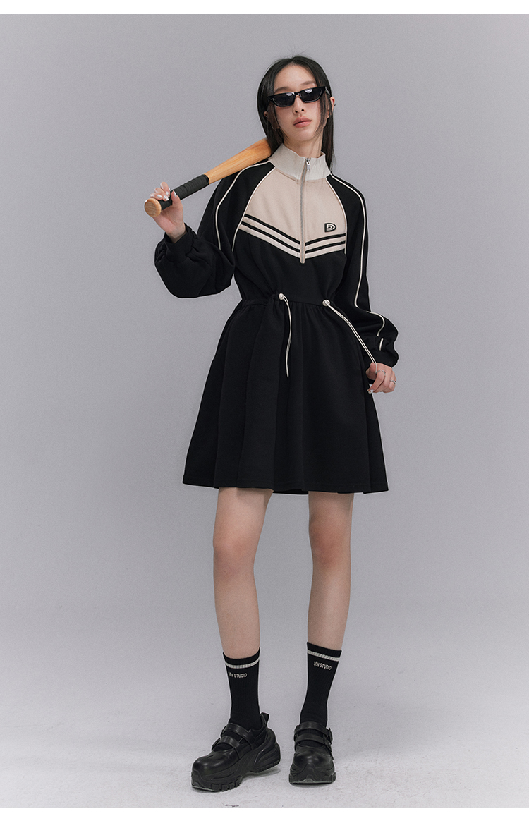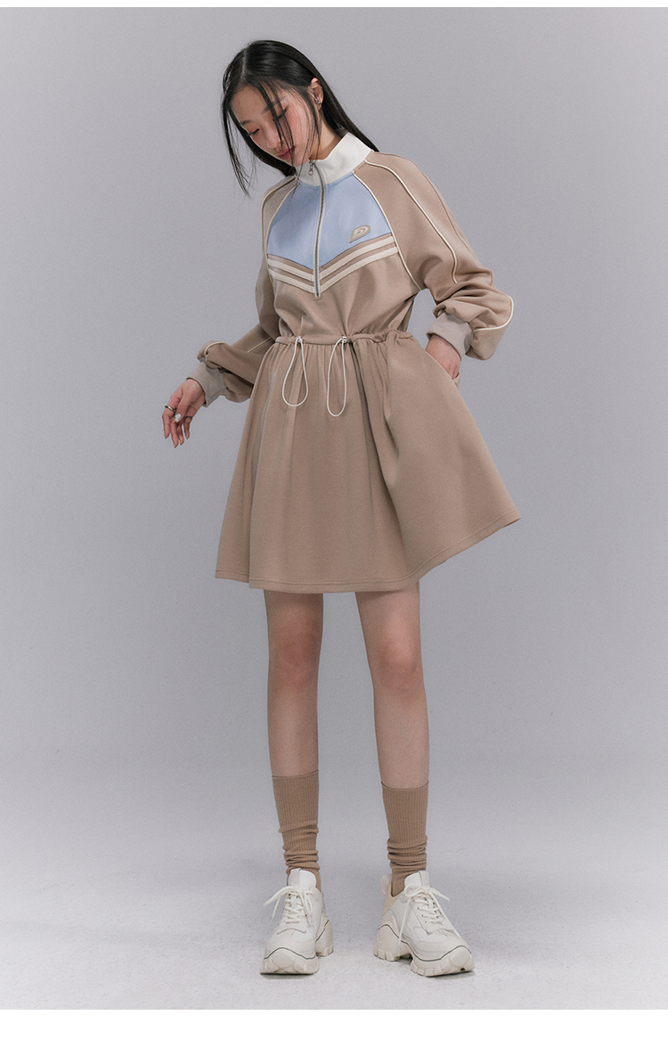 Embroidery Color Blocking Sporty Long Sleeve Jersey Dress NA5301