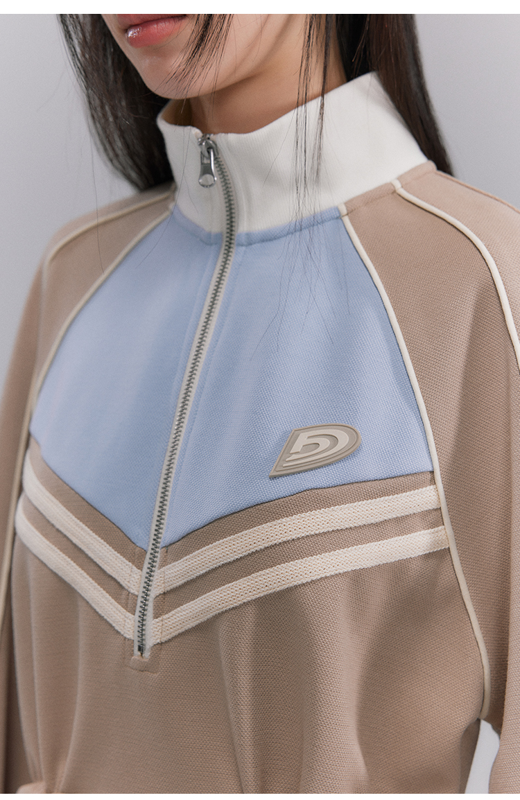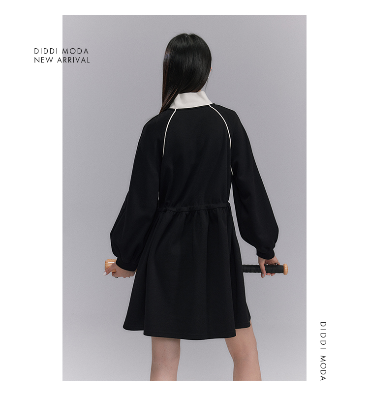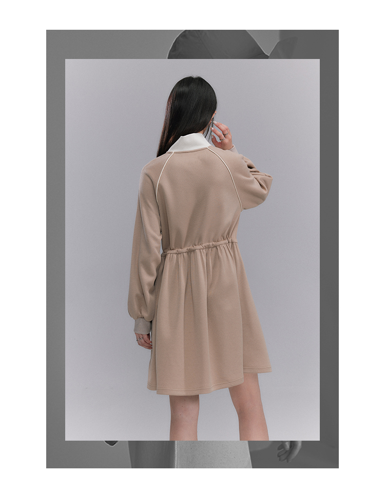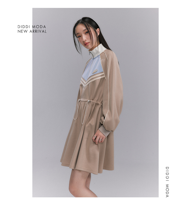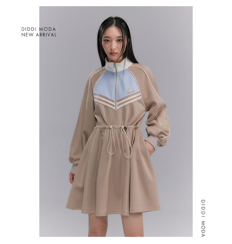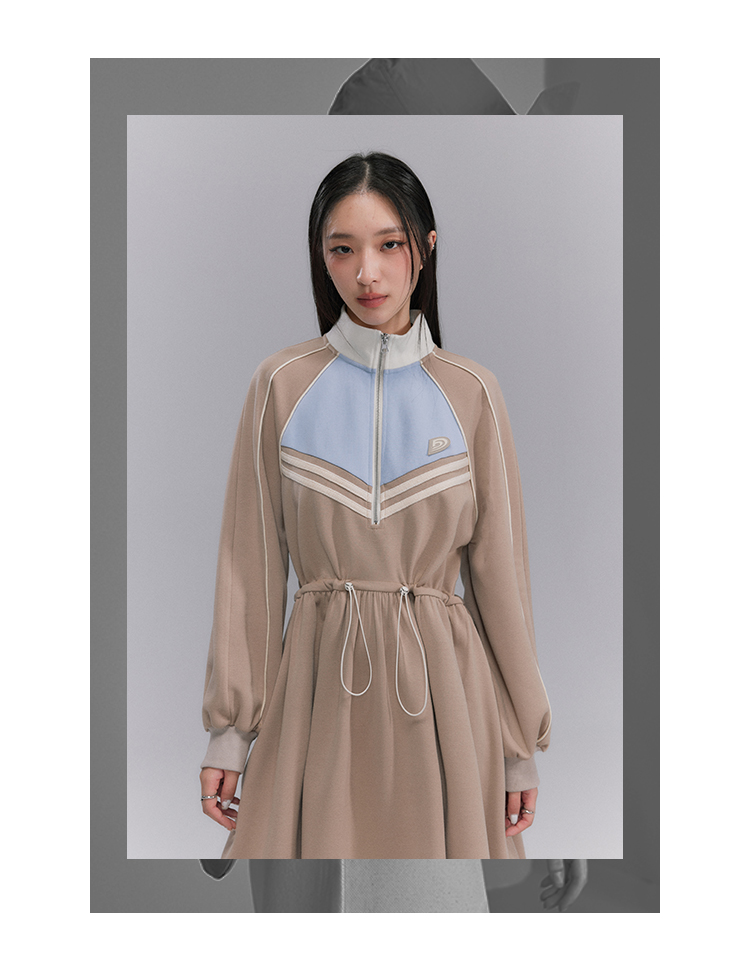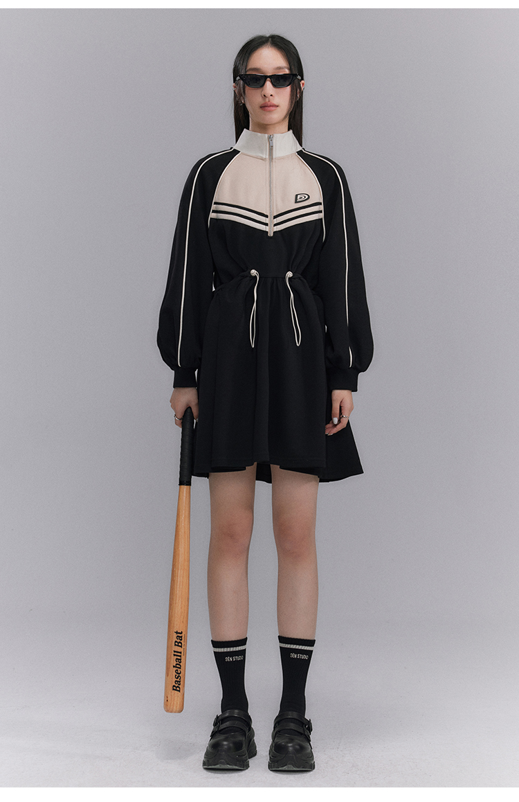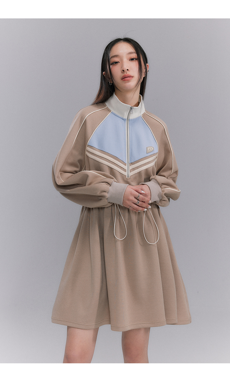 Embroidery Color Blocking Sporty Long Sleeve Jersey Dress NA5301