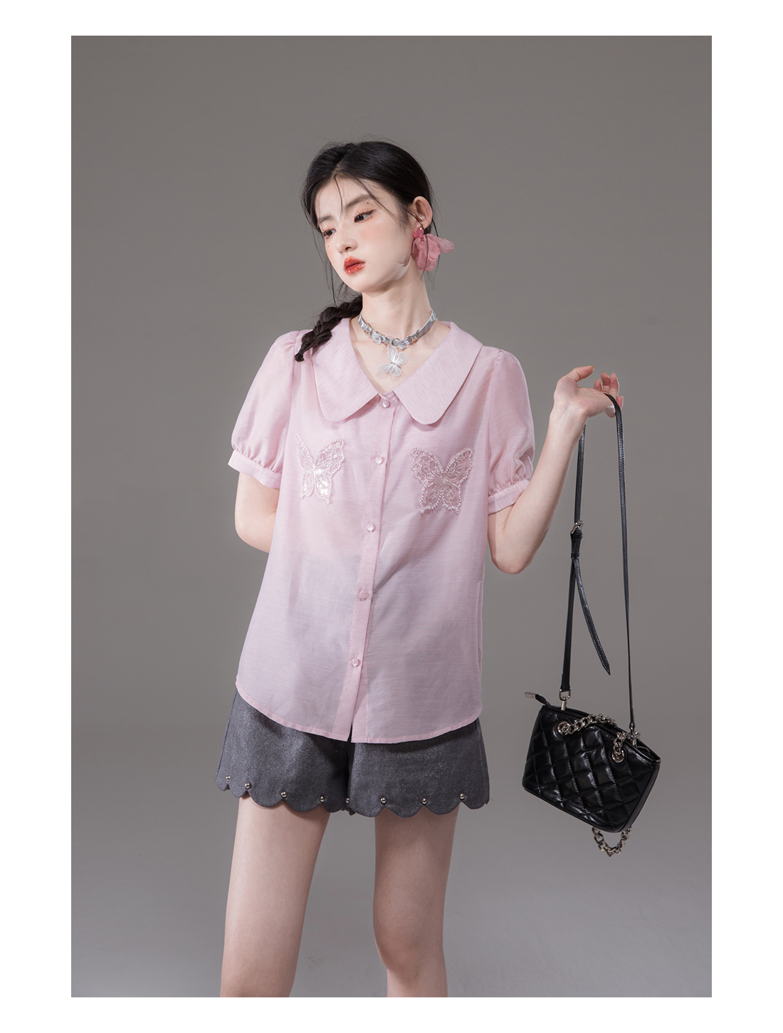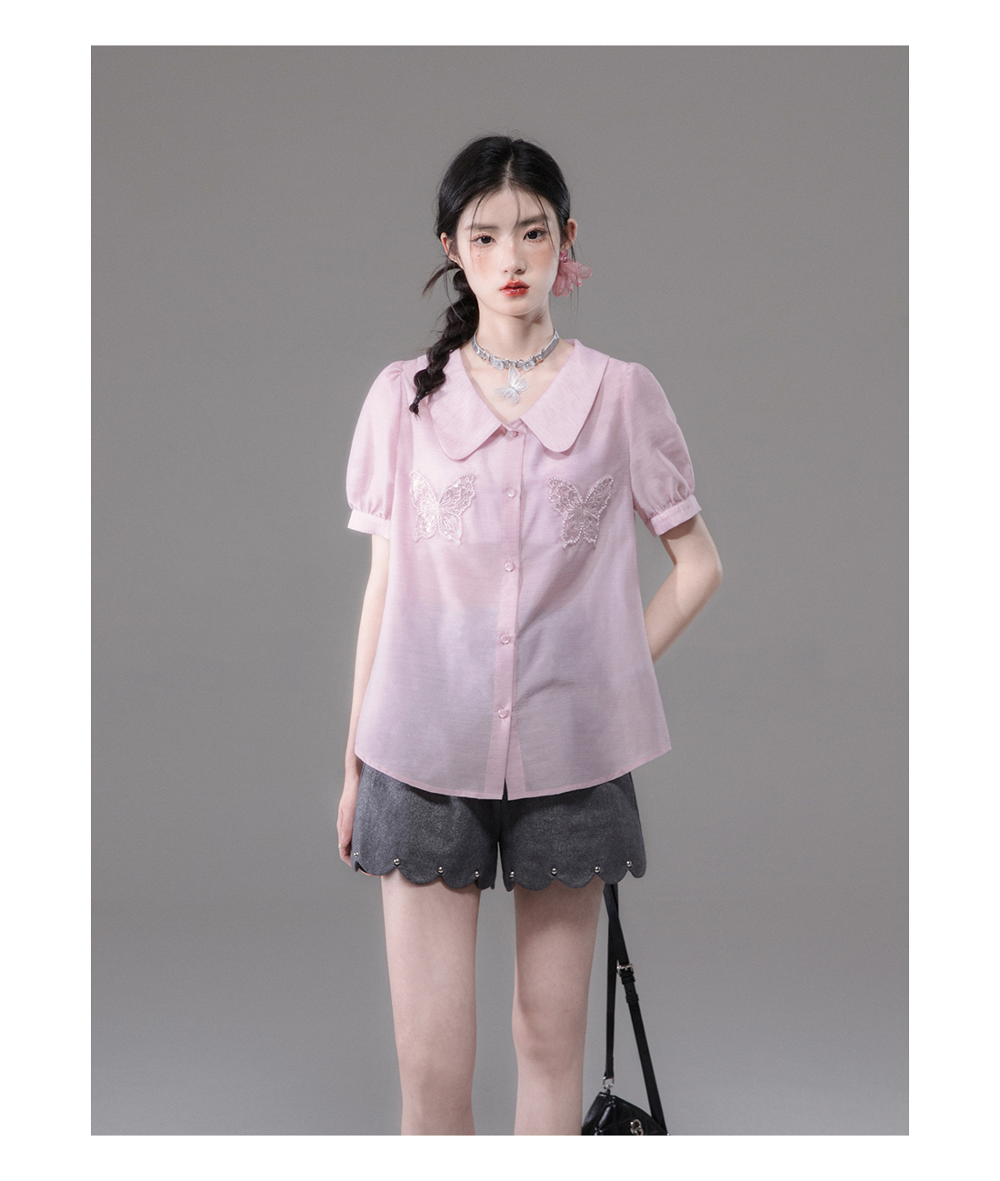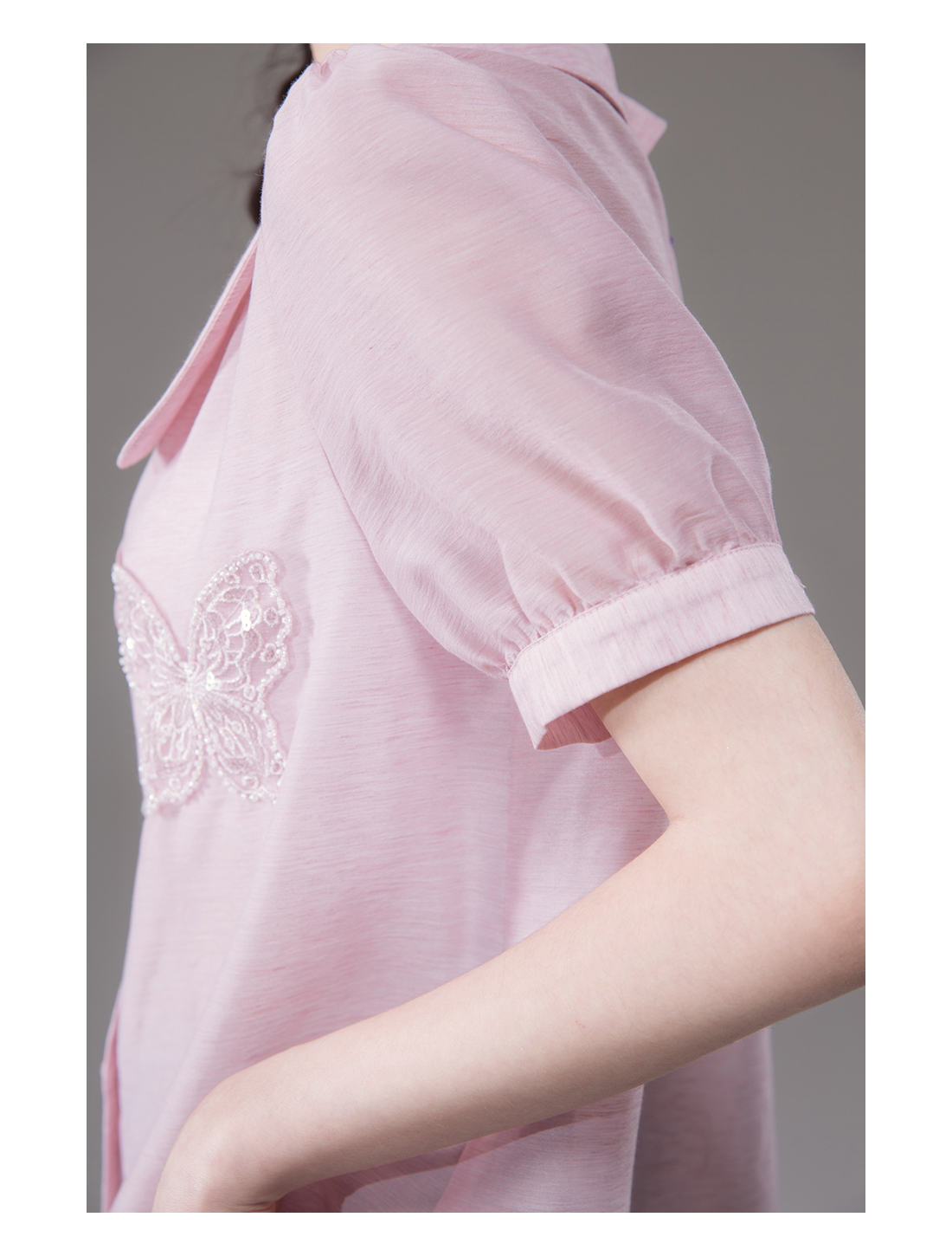 Bead Butterfly Embroidery Short Sleeve Shirt NA5521
