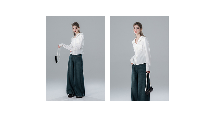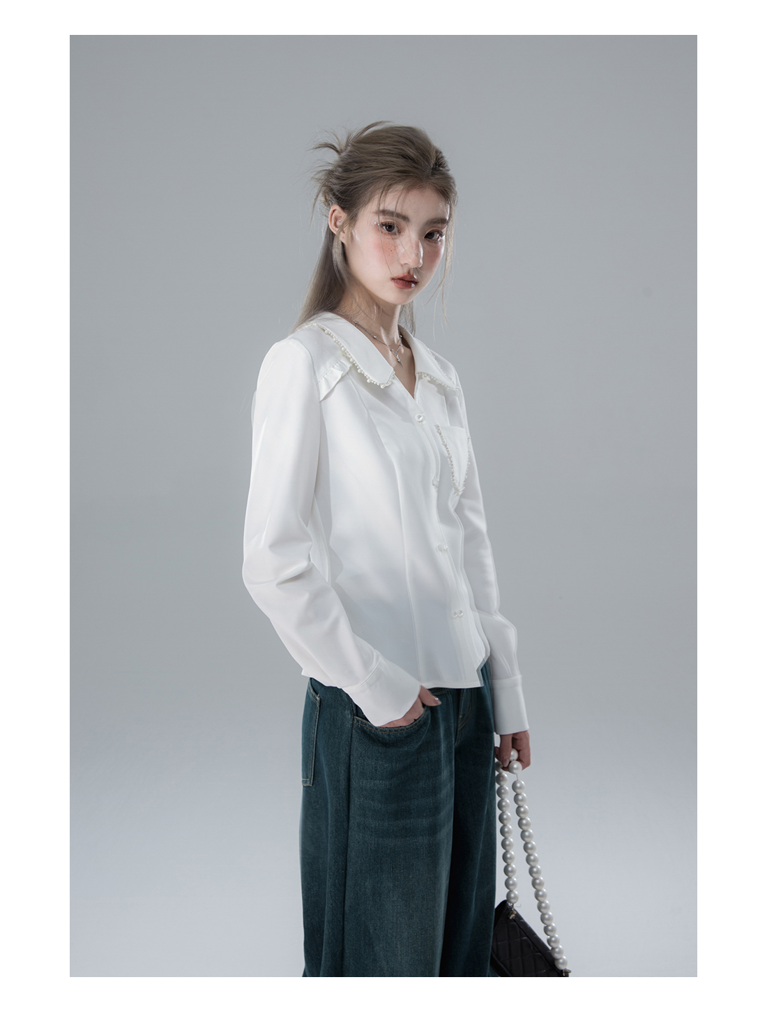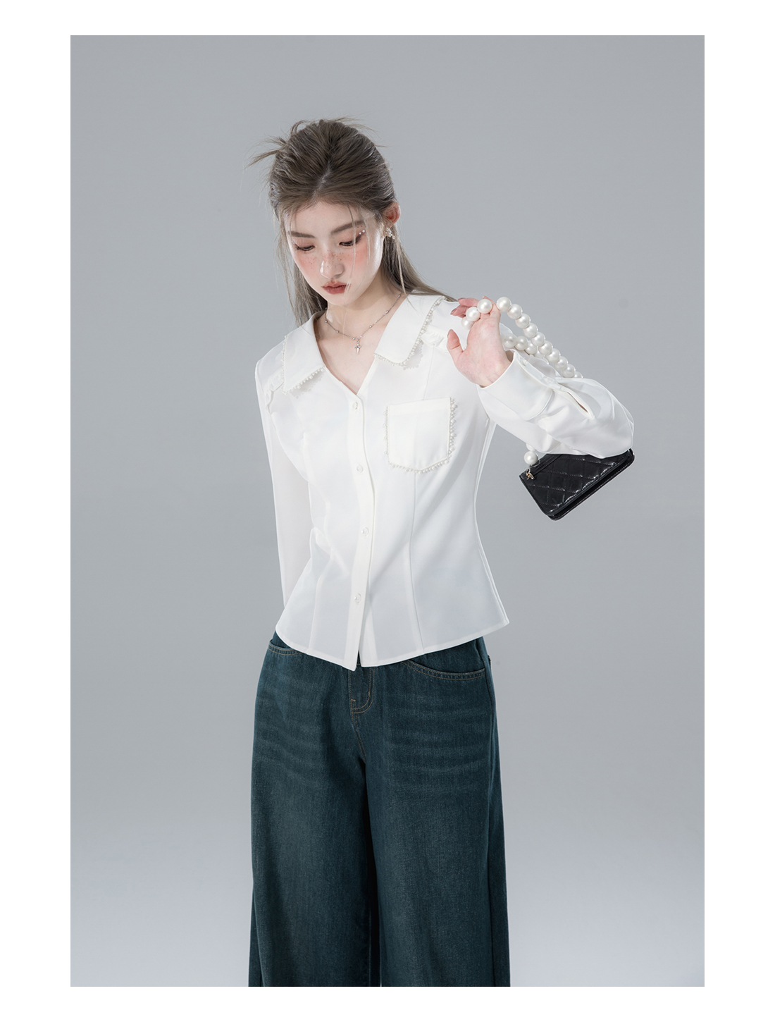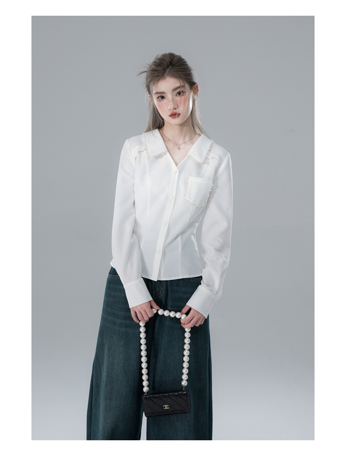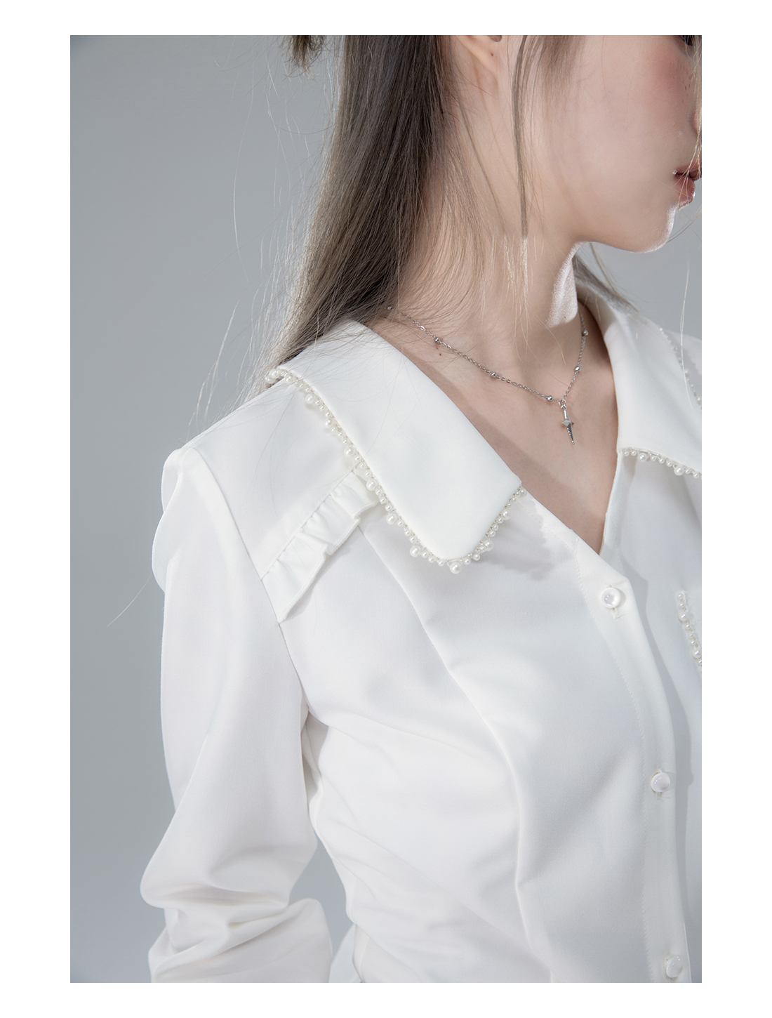 V-neck Pearl Long Sleeve Shirt NA5569
