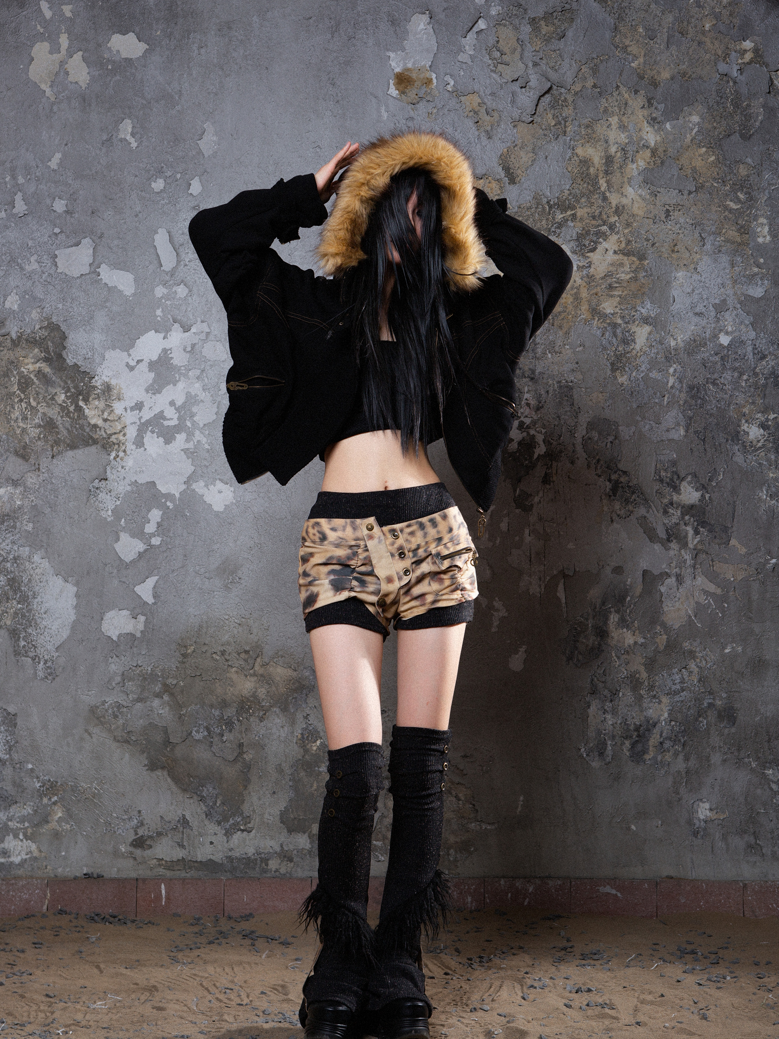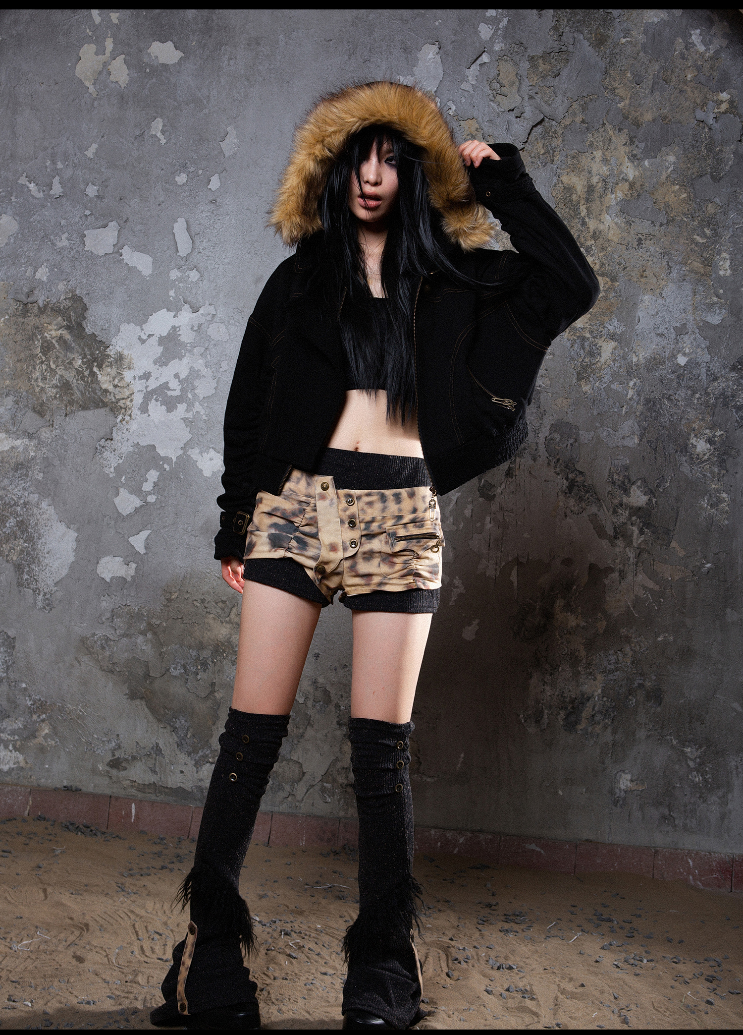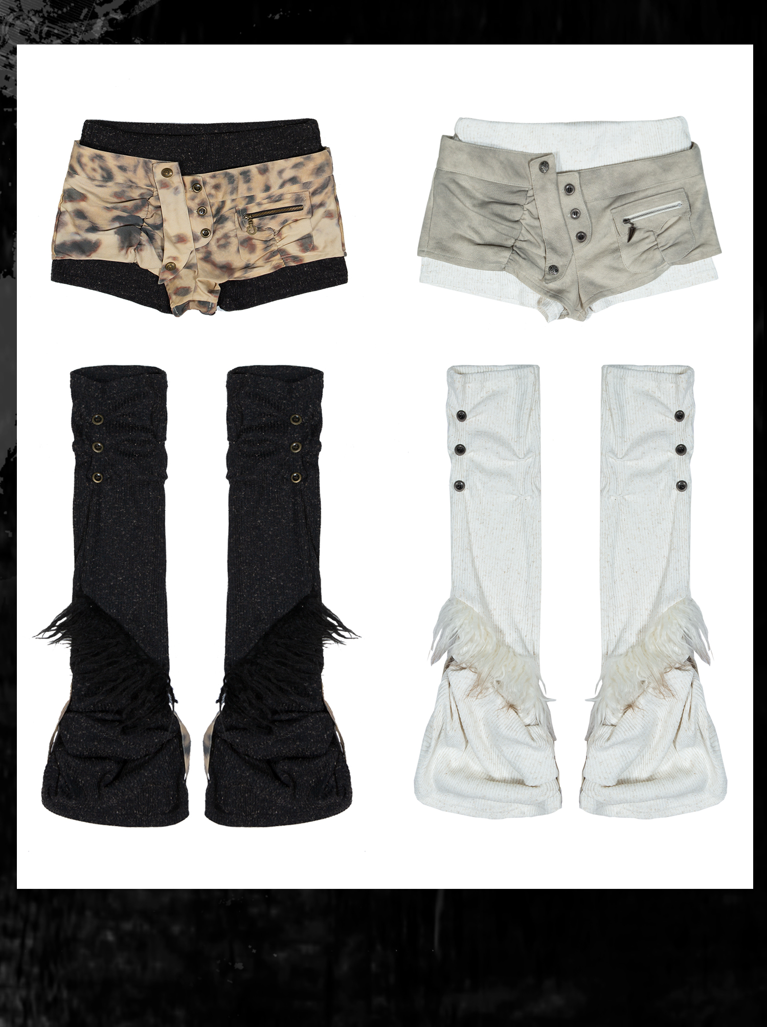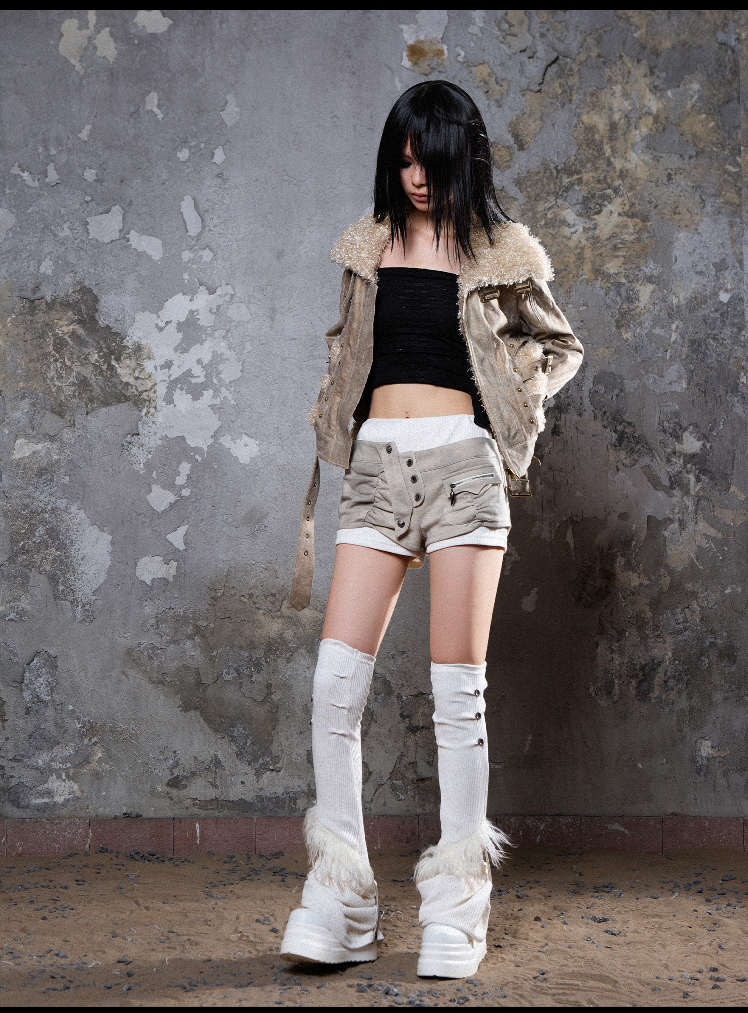 Fake Layered Low-Waist Contrast Shorts & Stacked Knit Leg Cover NA6190