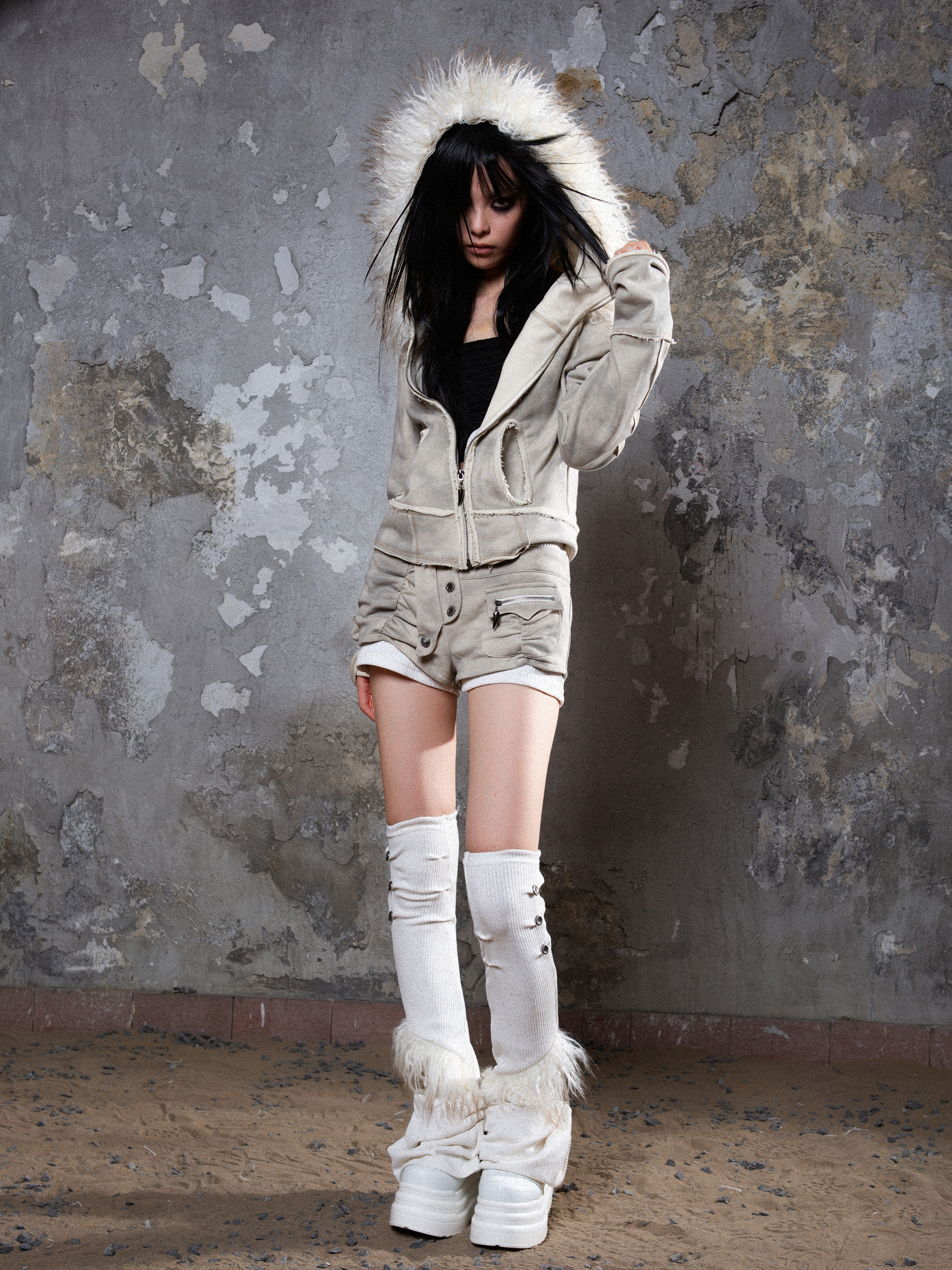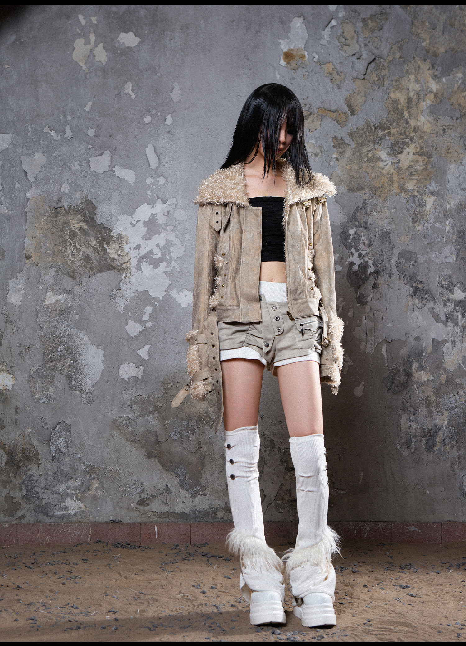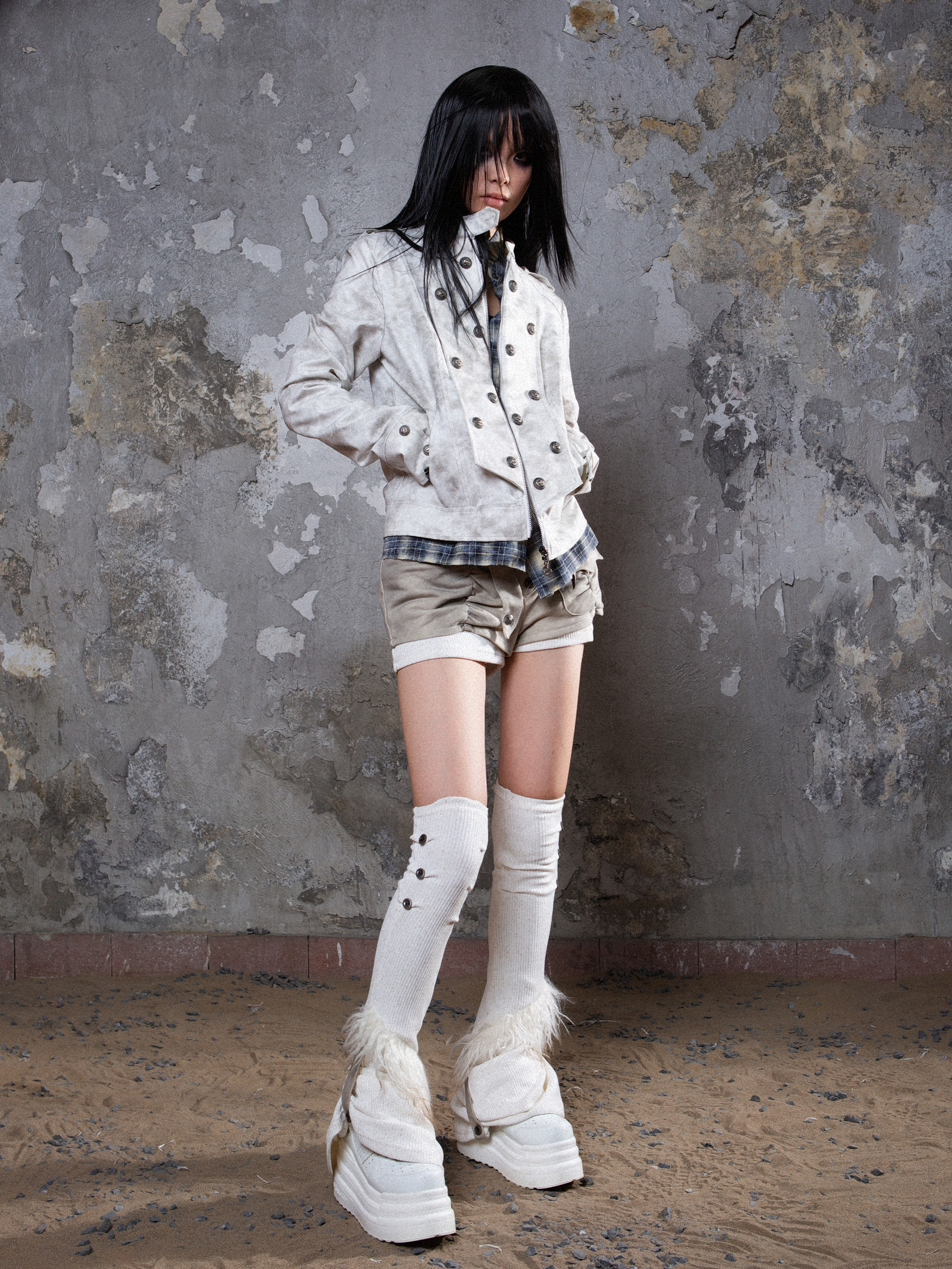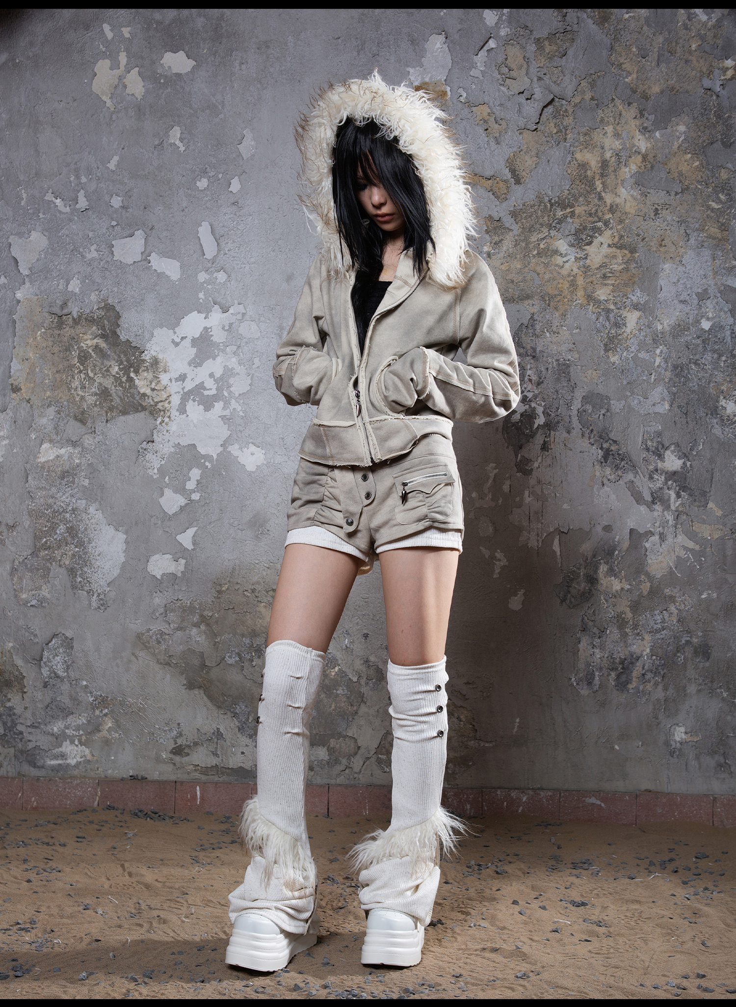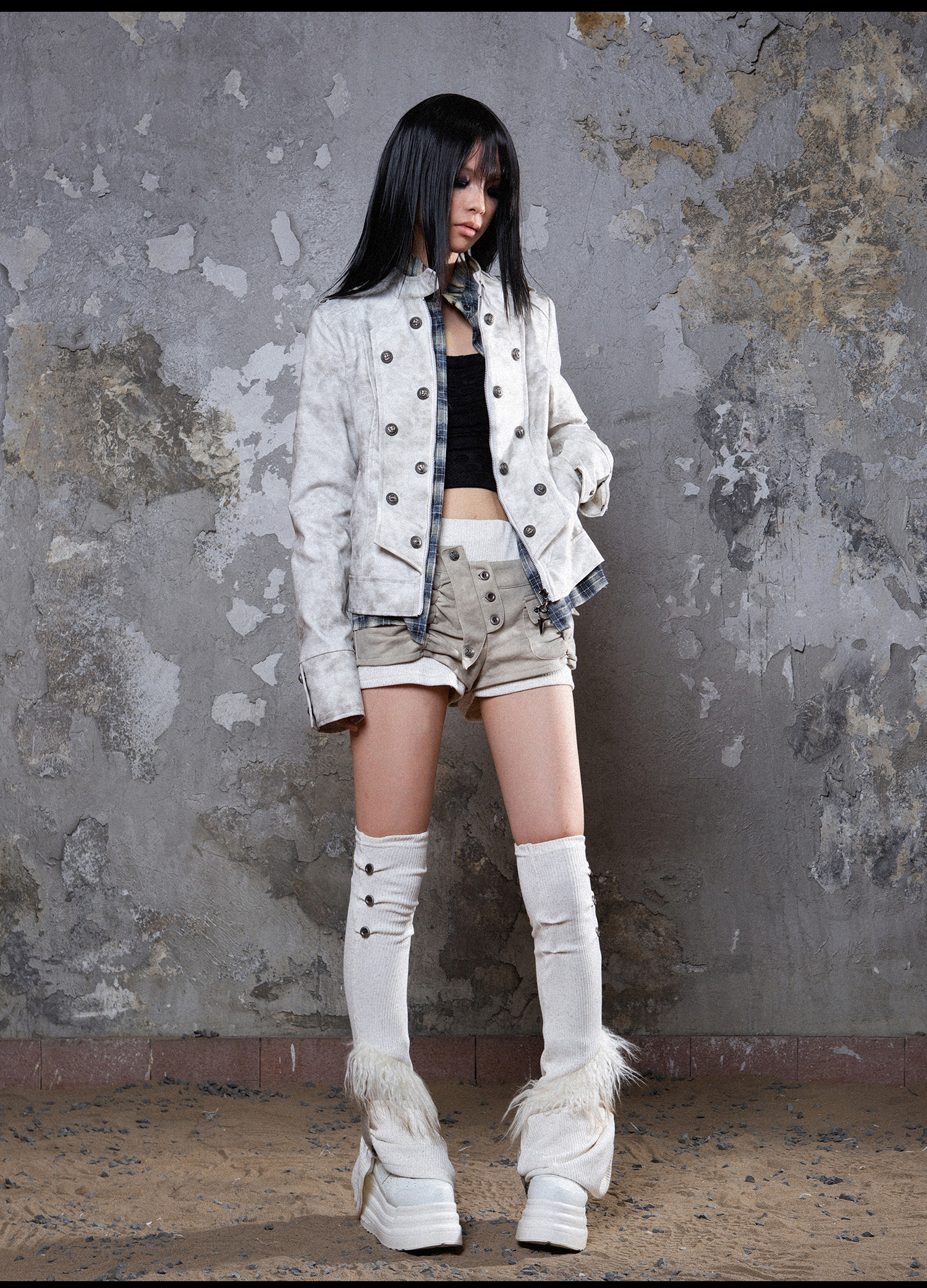 Fake Layered Low-Waist Contrast Shorts & Stacked Knit Leg Cover NA6190