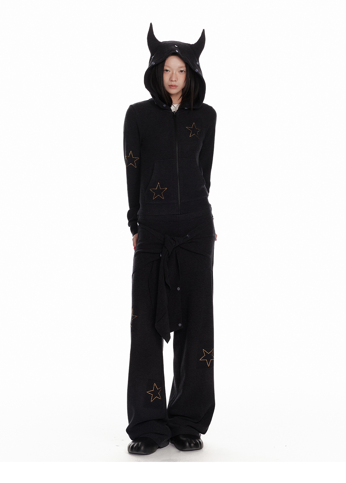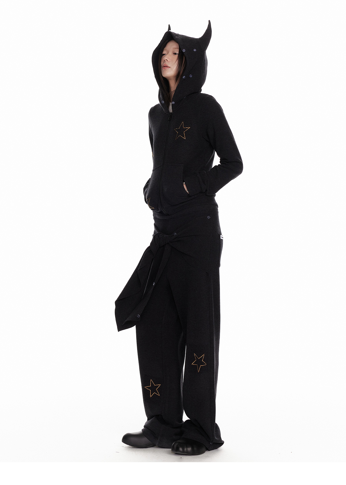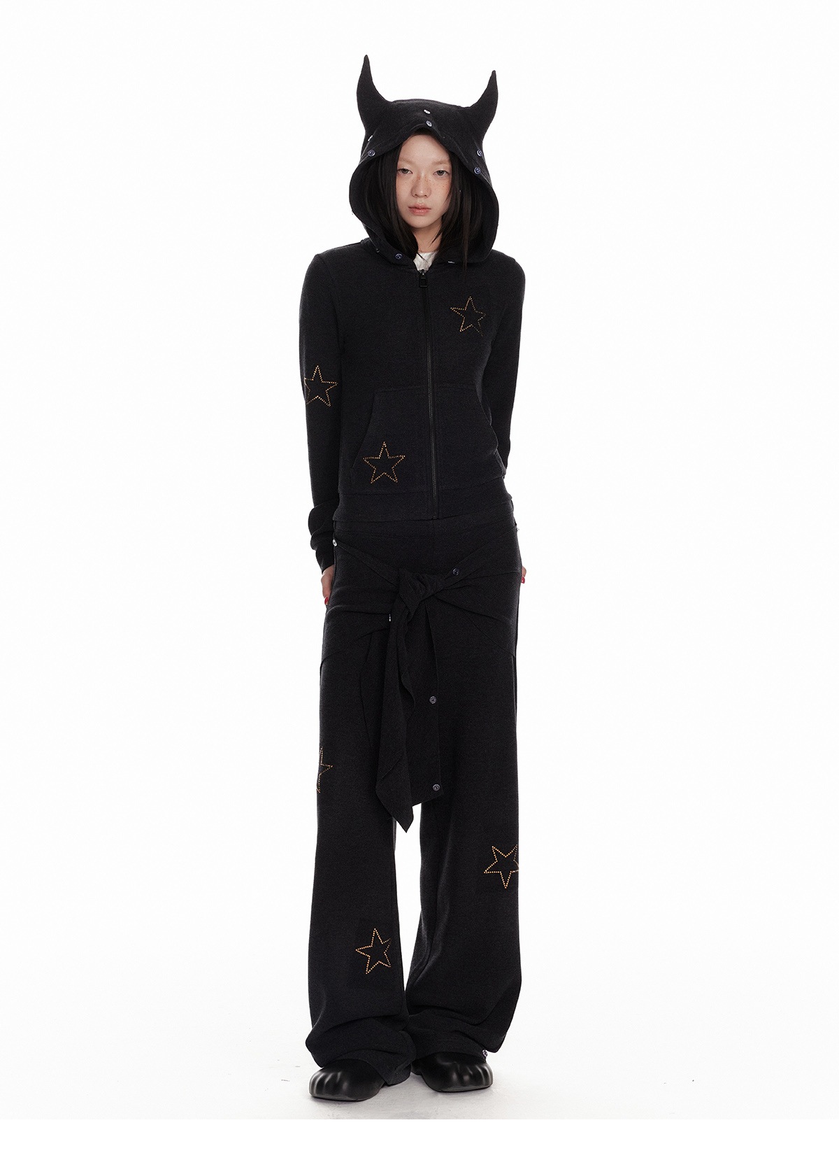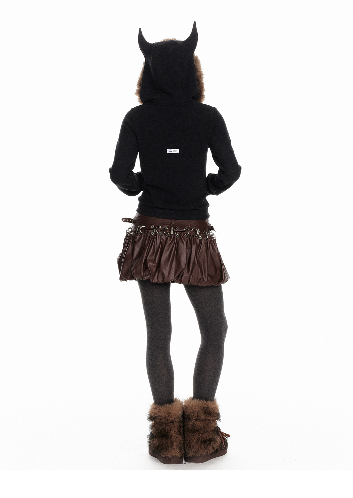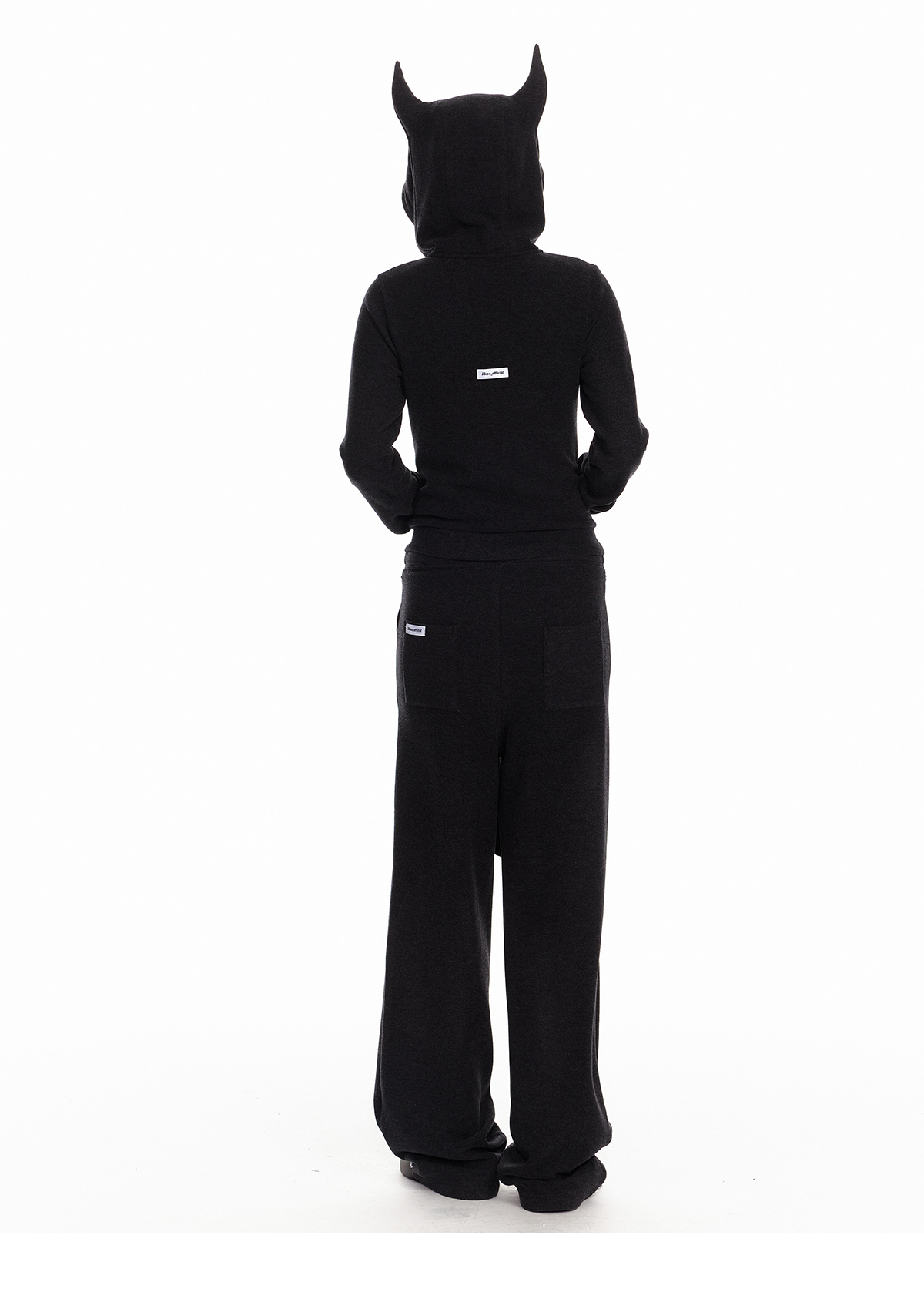 Horn Fur Collar Fuzzy Zipper Hoodie & Wide-Leg Pants Setup NA7102