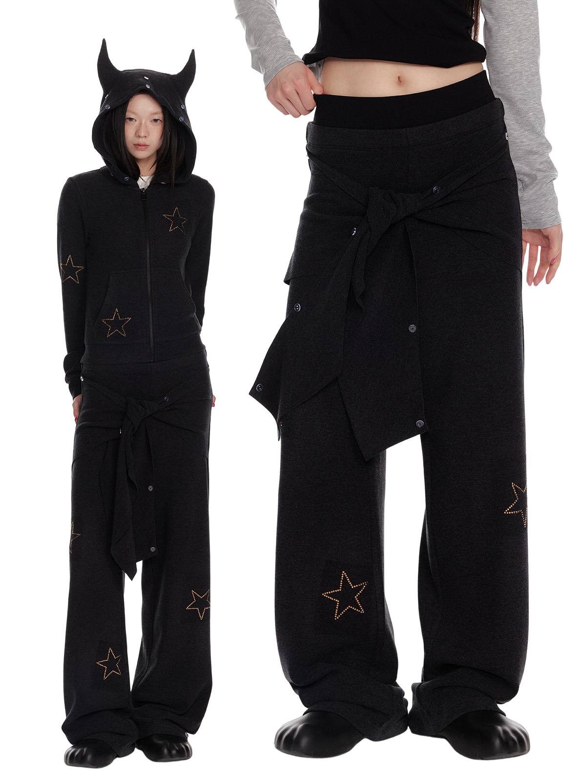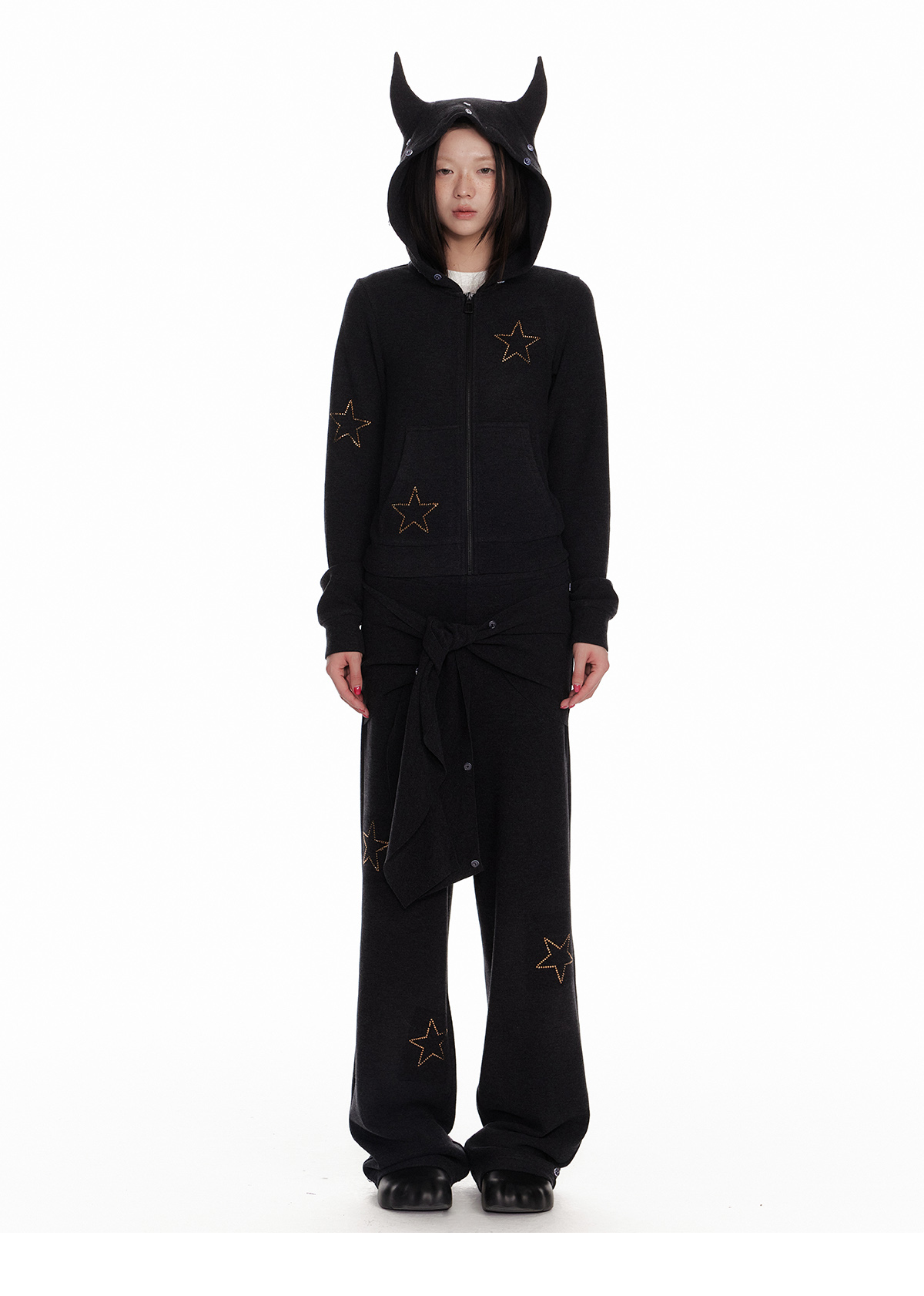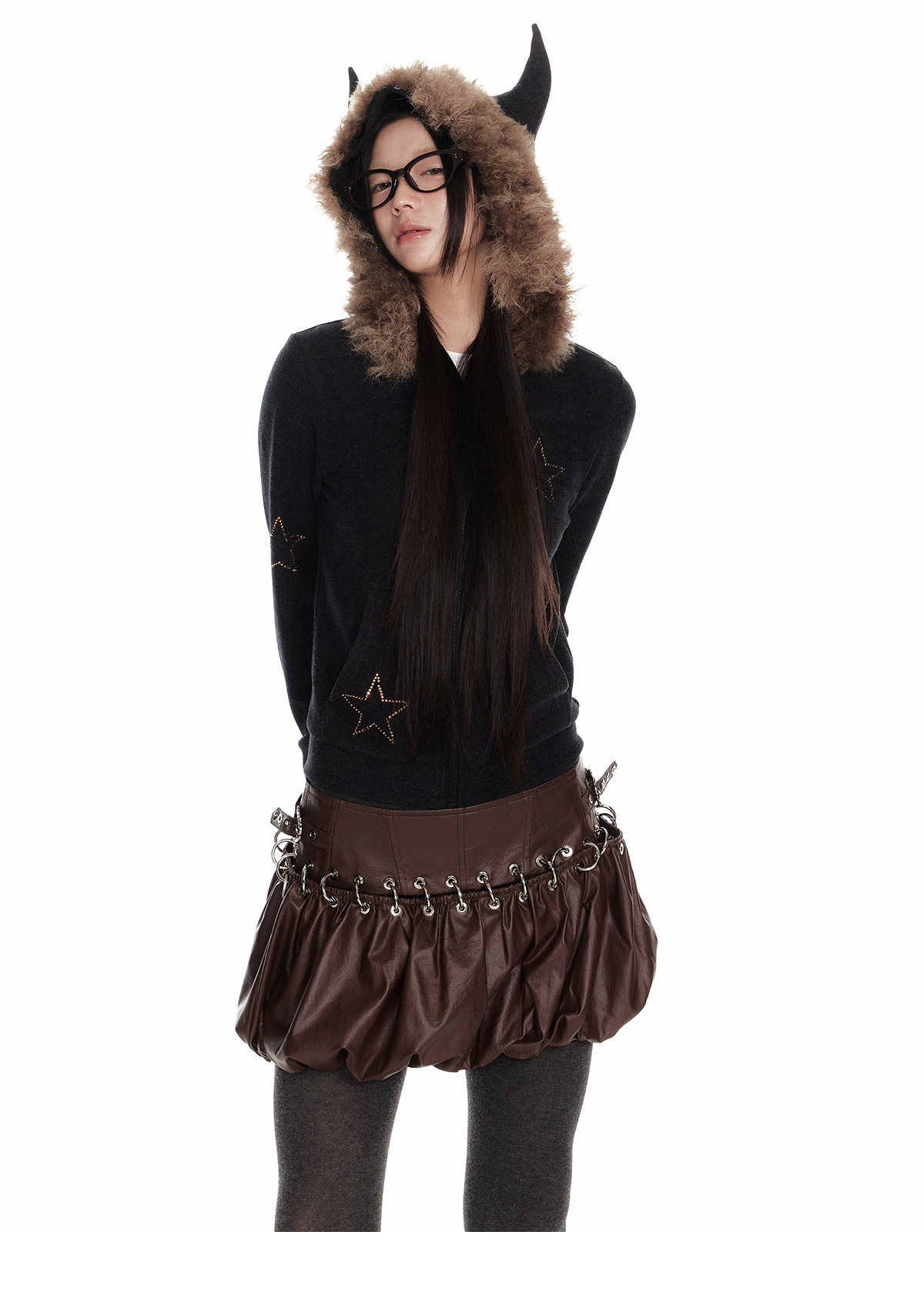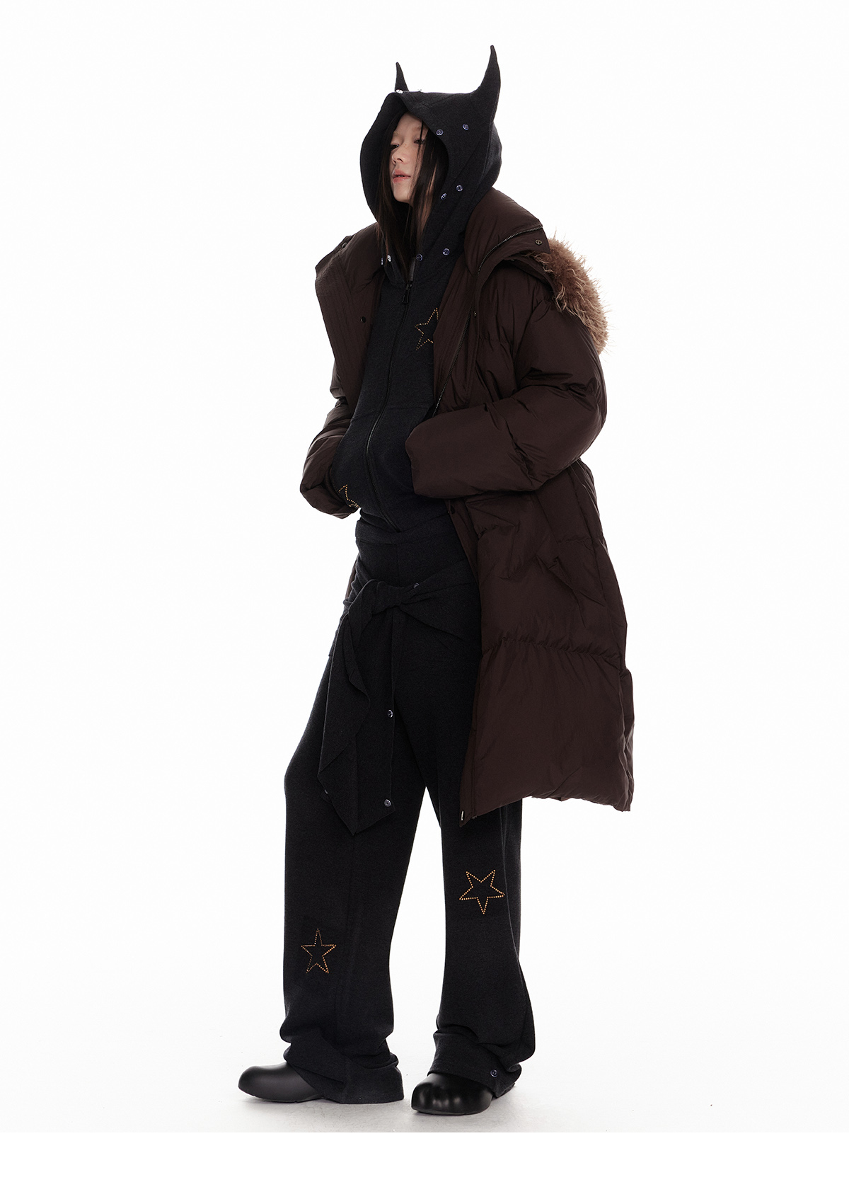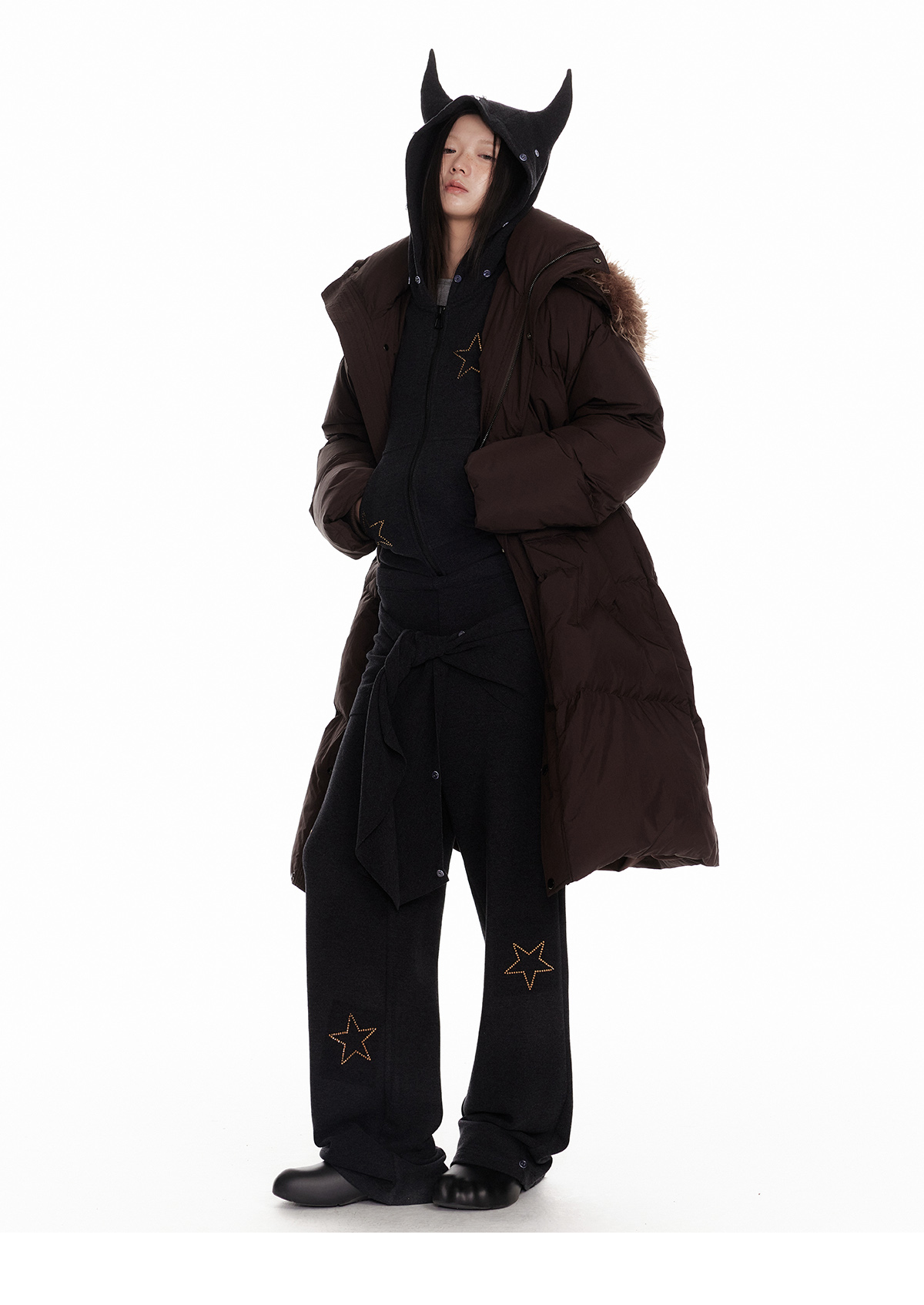 Horn Fur Collar Fuzzy Zipper Hoodie & Wide-Leg Pants Setup NA7102