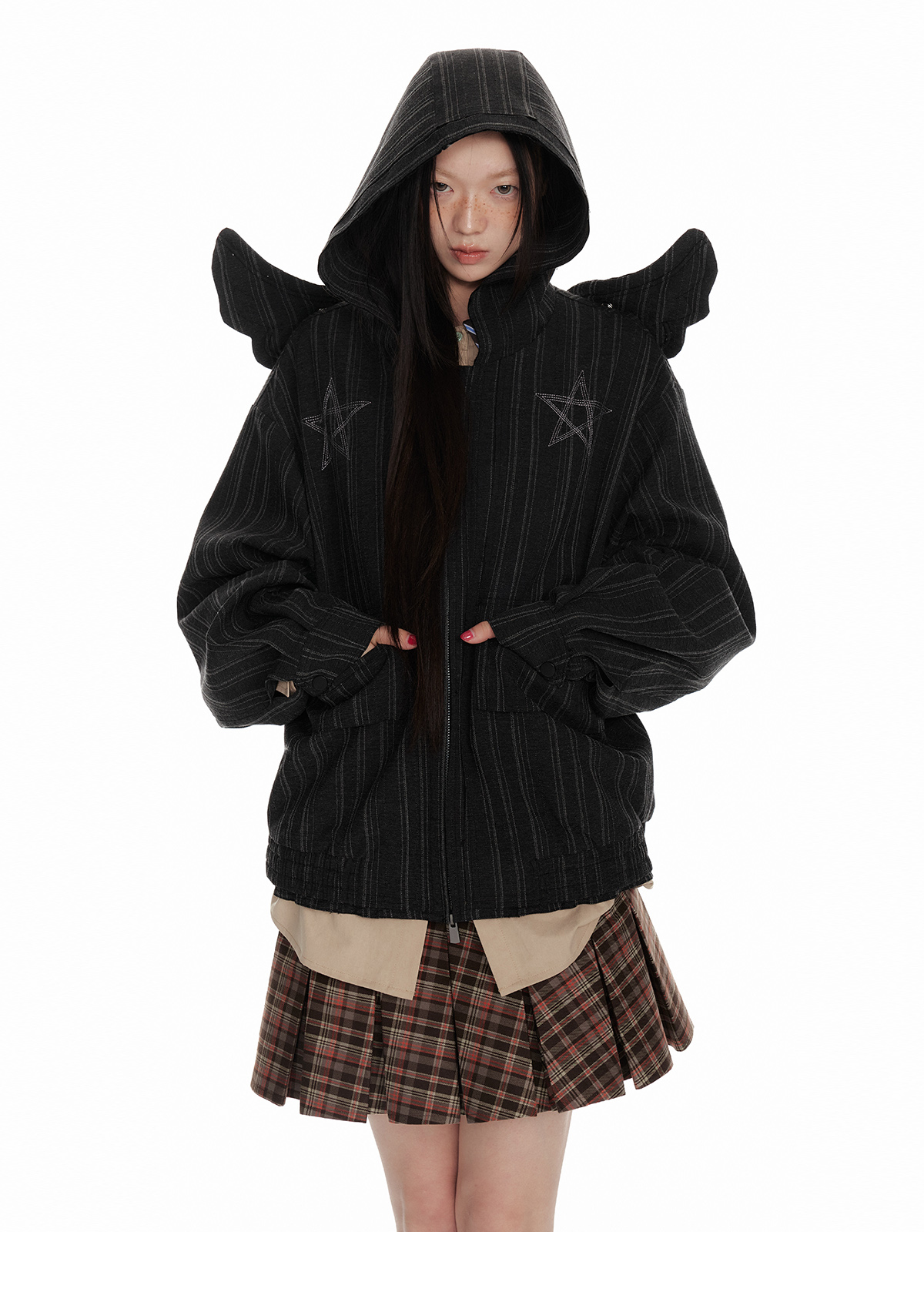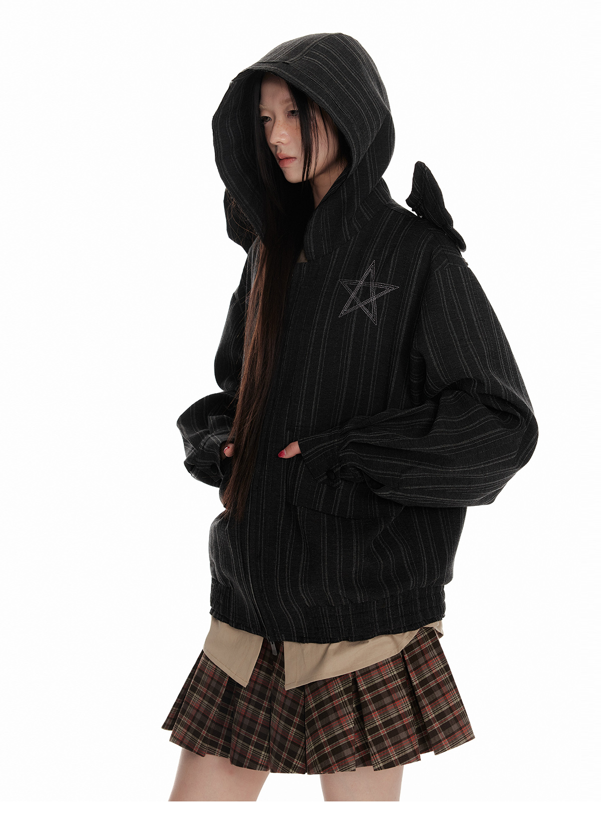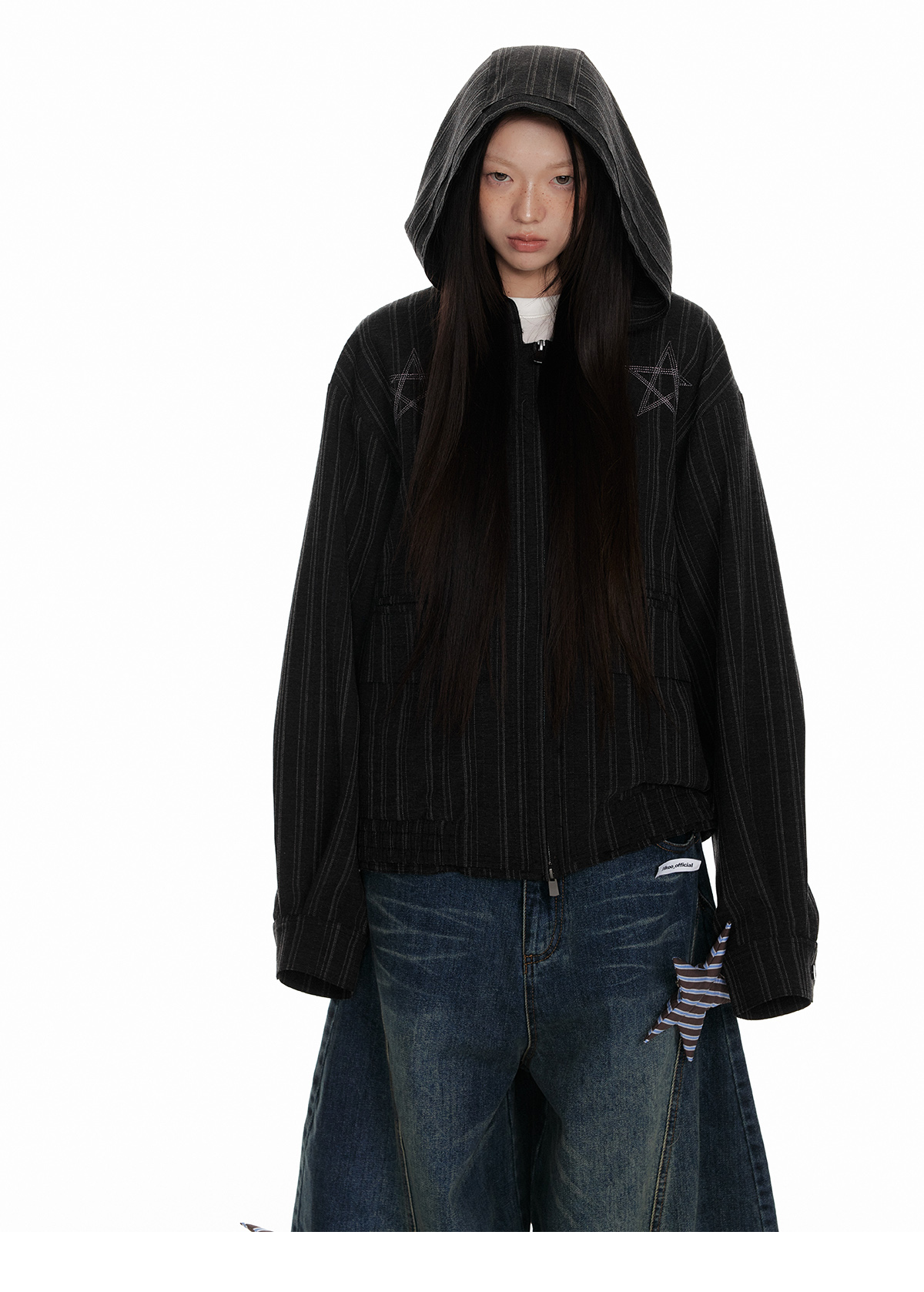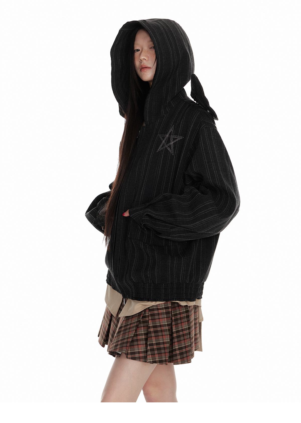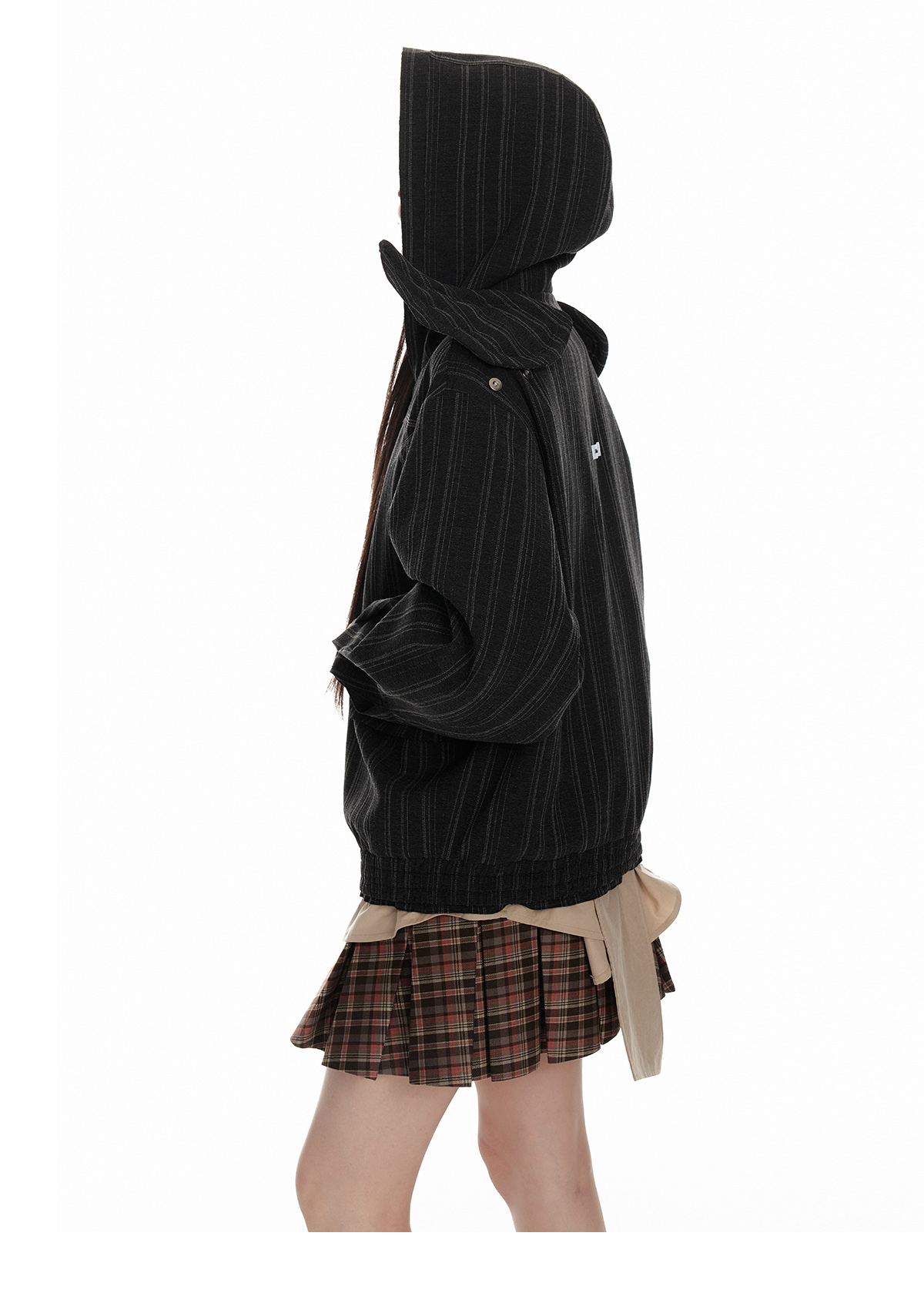 Textured Vertical Stripe Zipper Hoodie NA7110