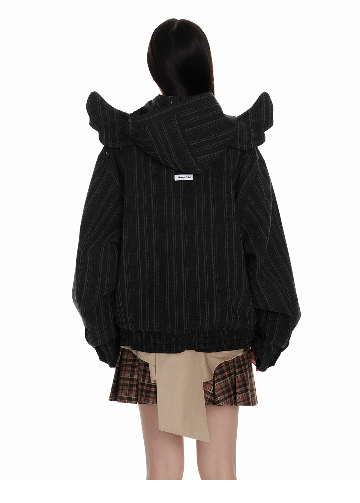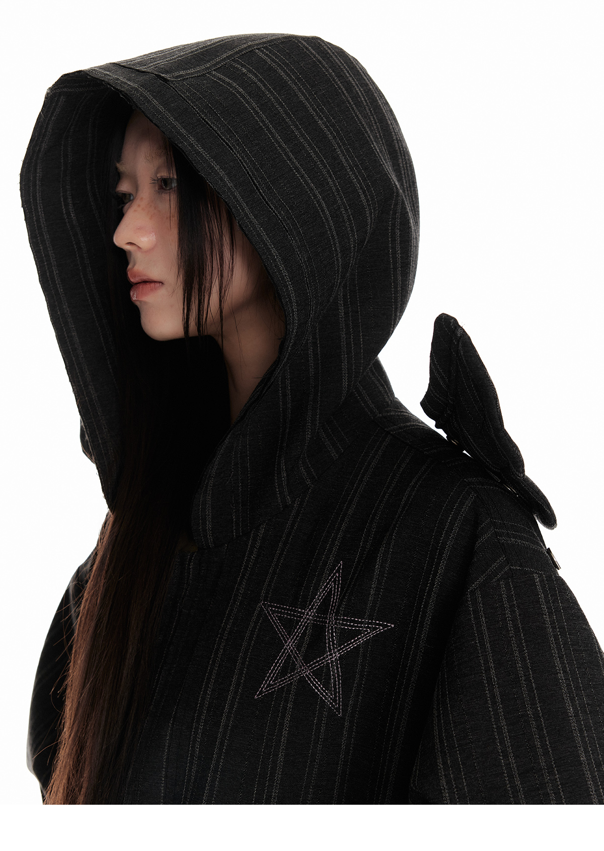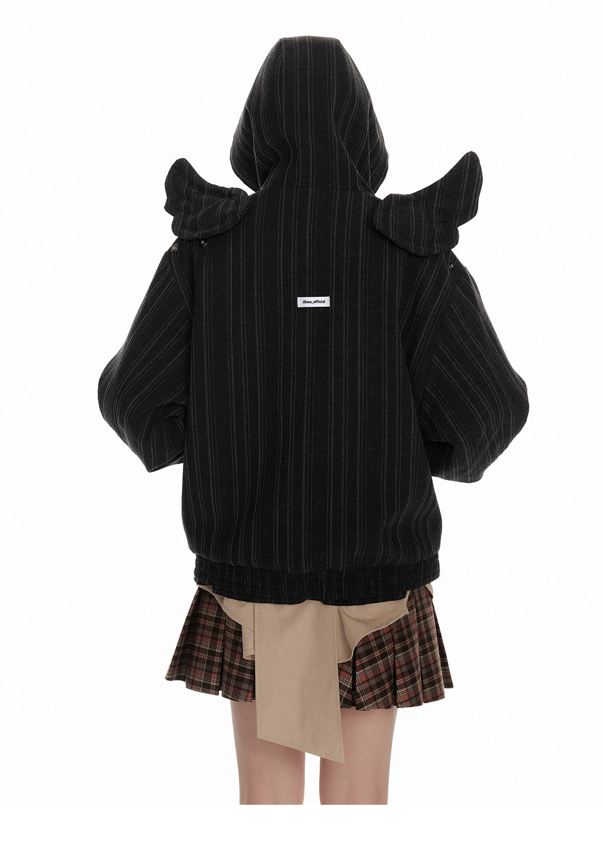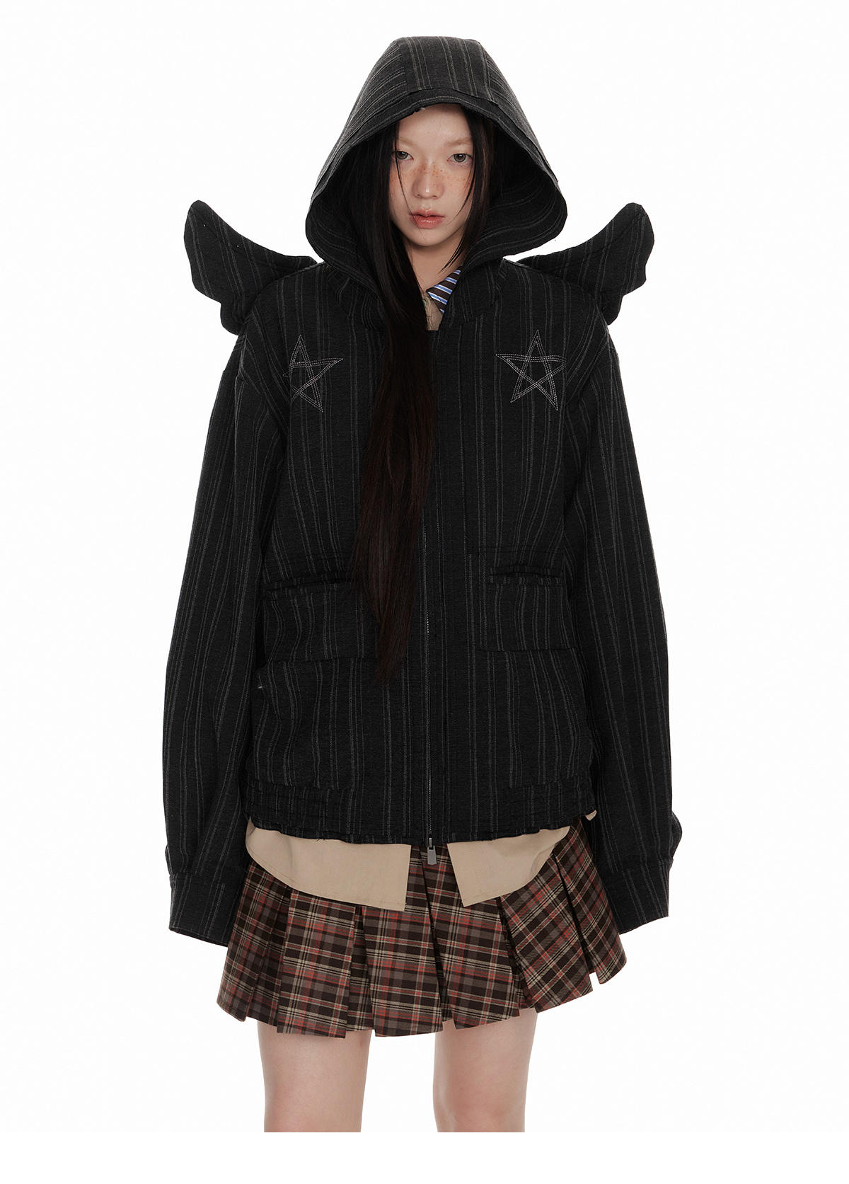 Textured Vertical Stripe Zipper Hoodie NA7110