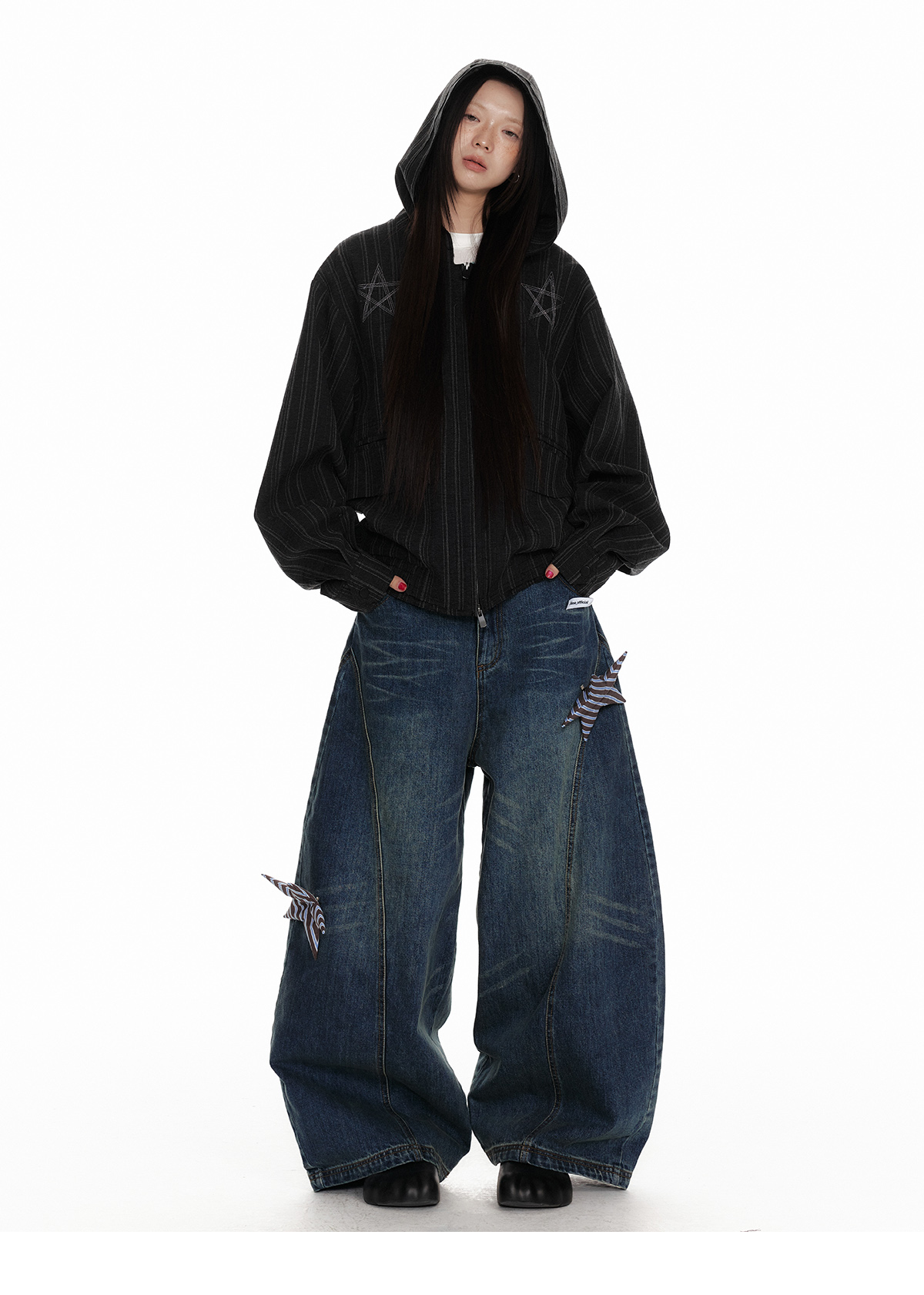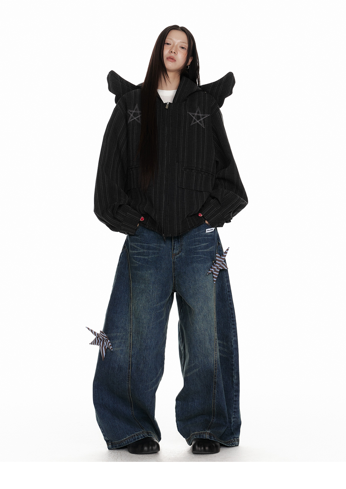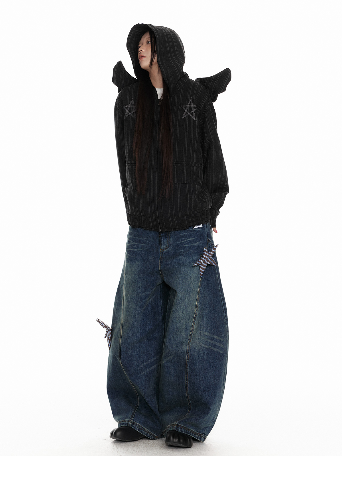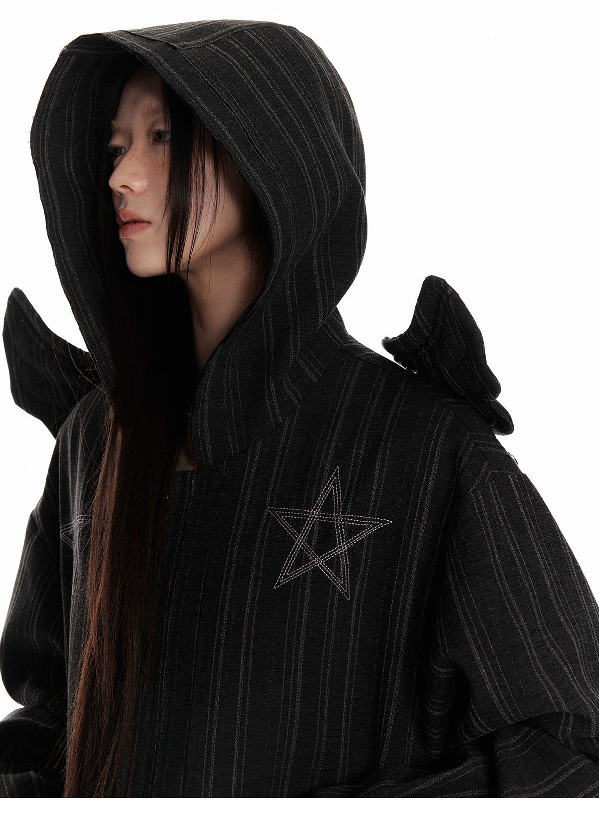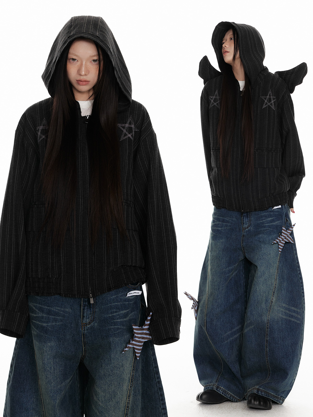 Textured Vertical Stripe Zipper Hoodie NA7110