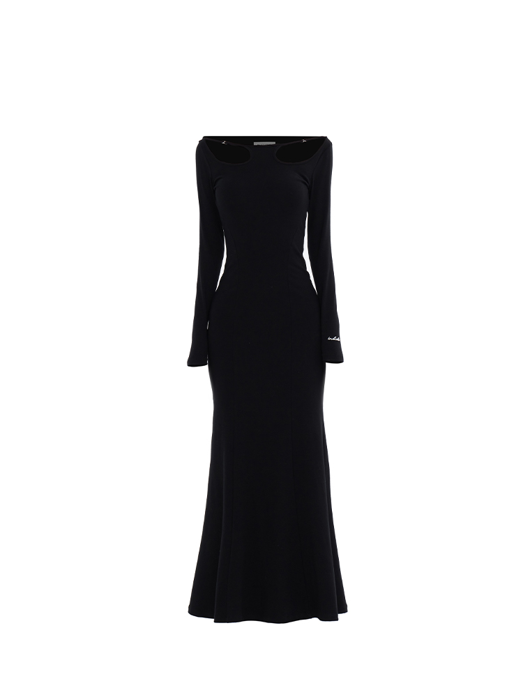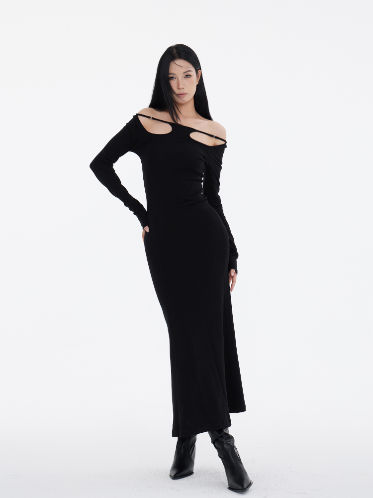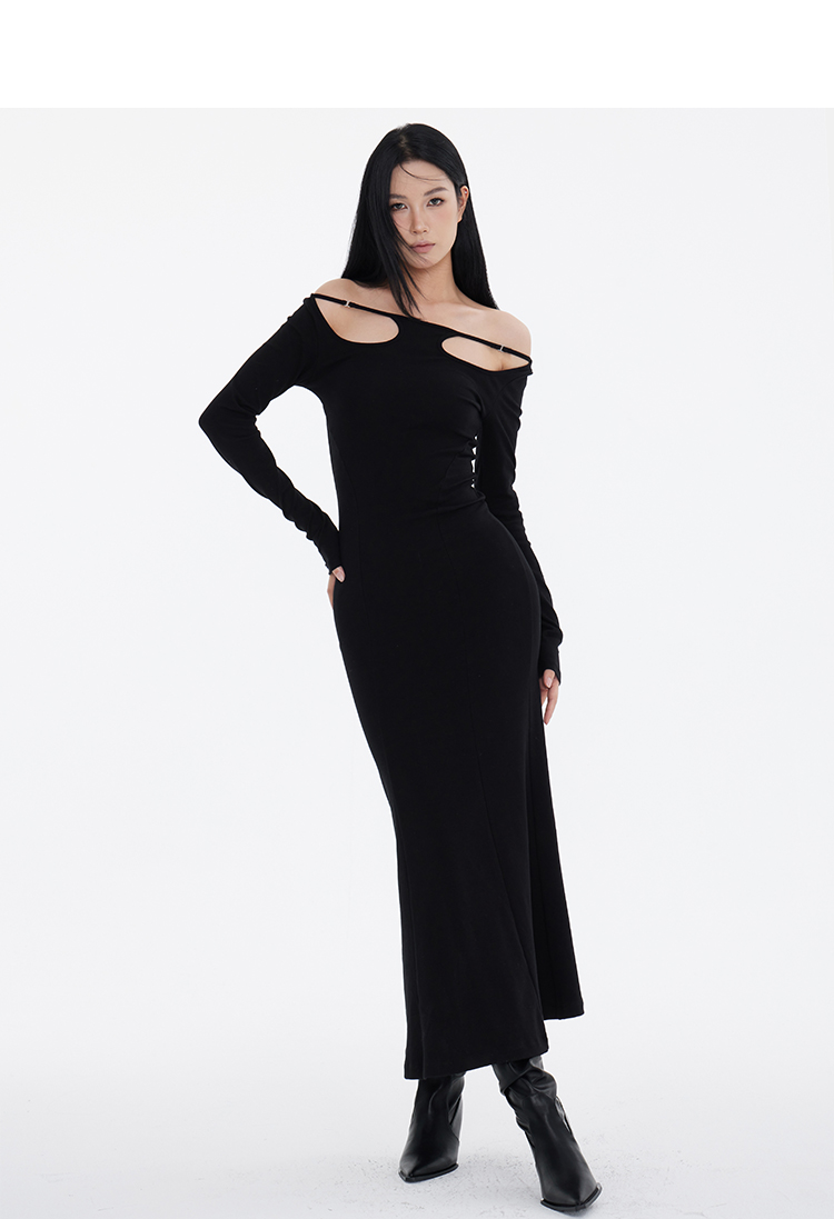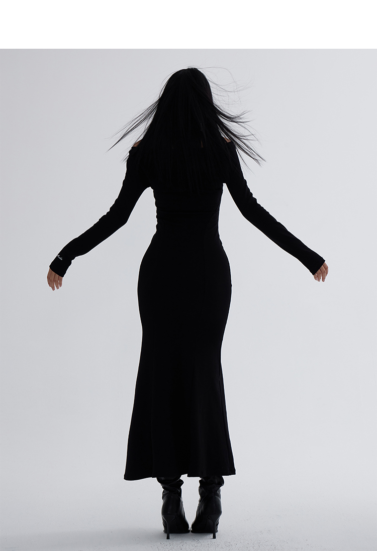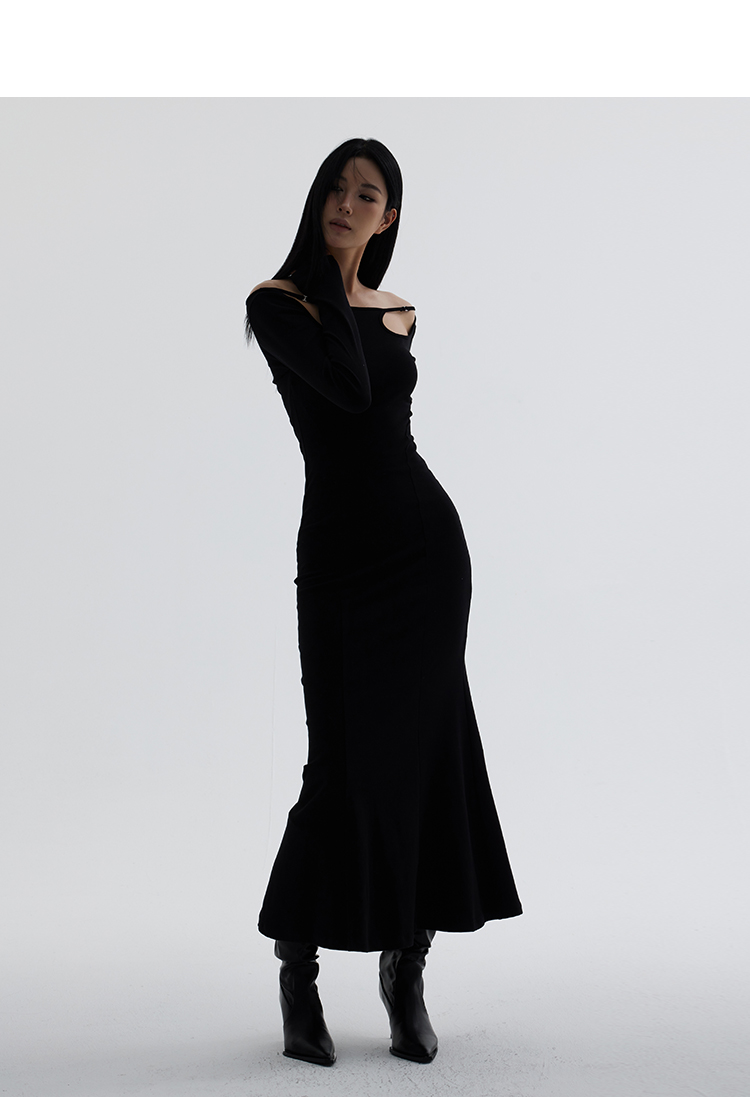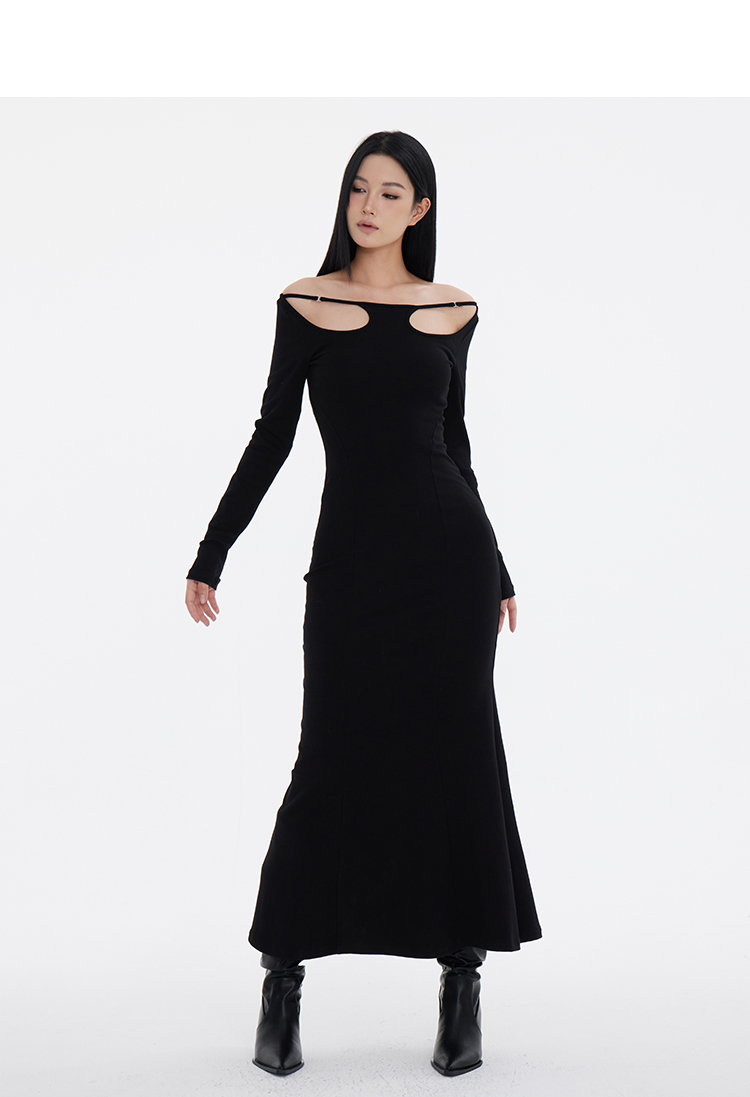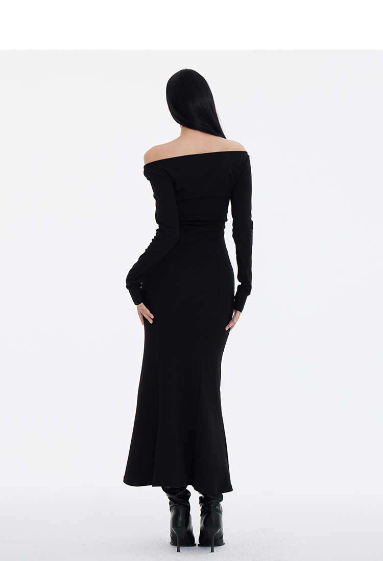 Off-Shoulder Slim Black Long Dress NA7291