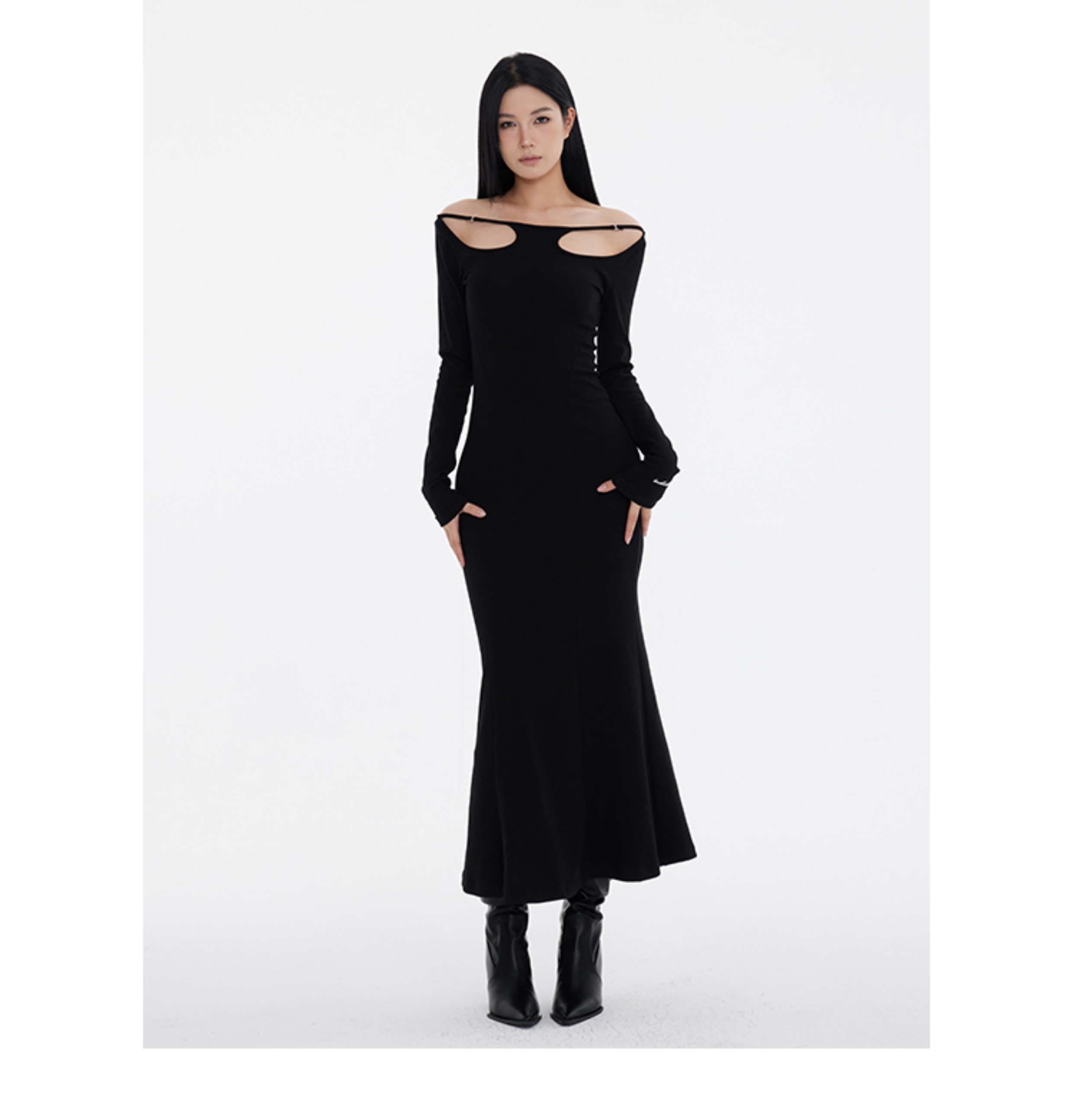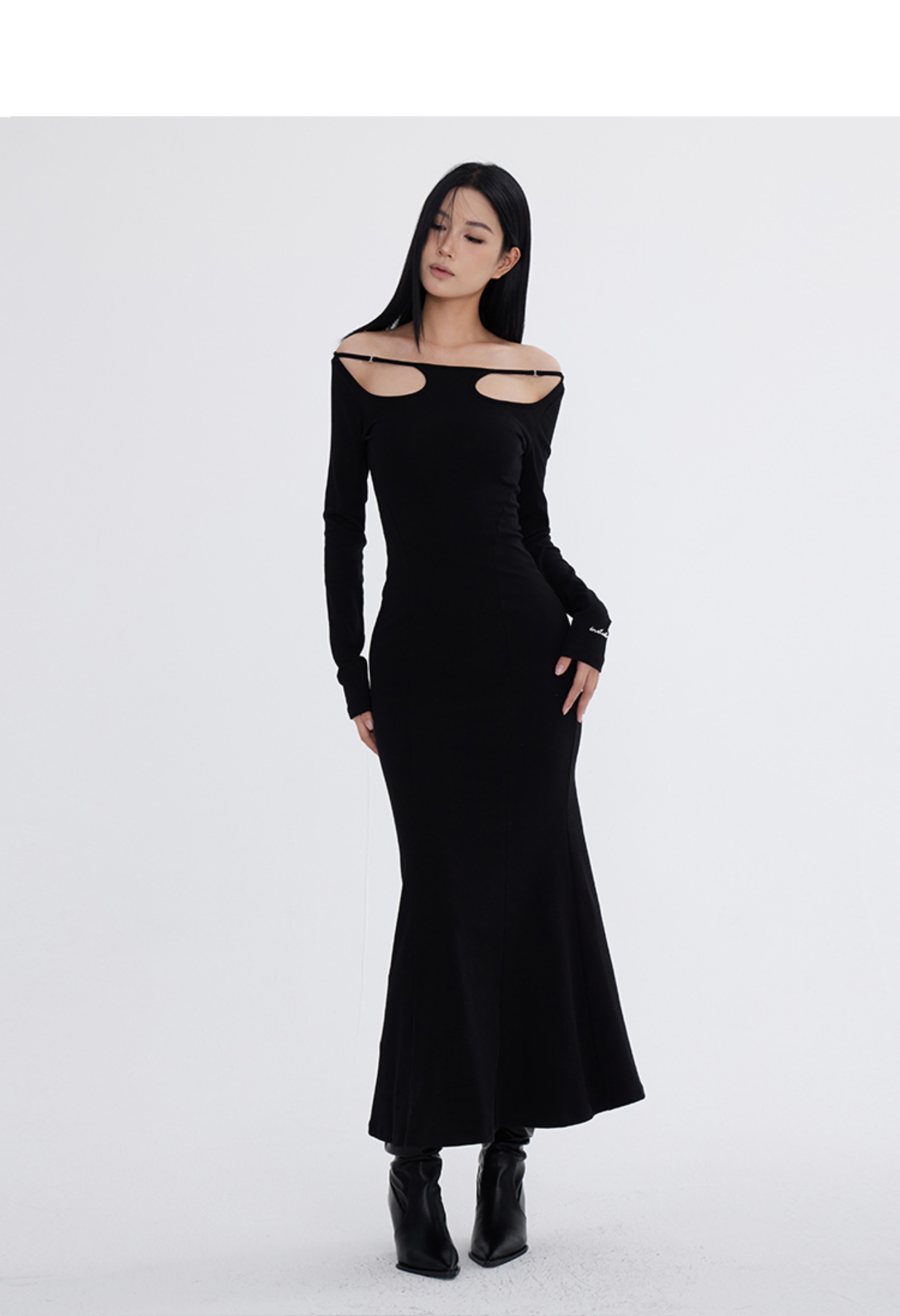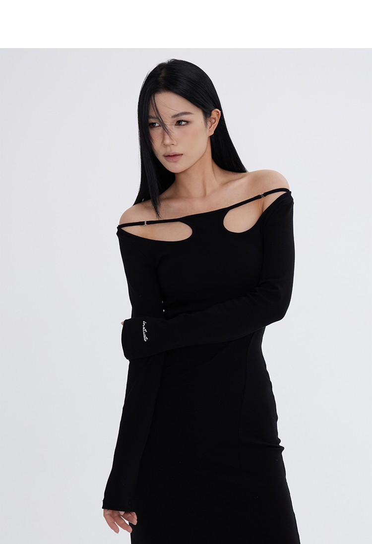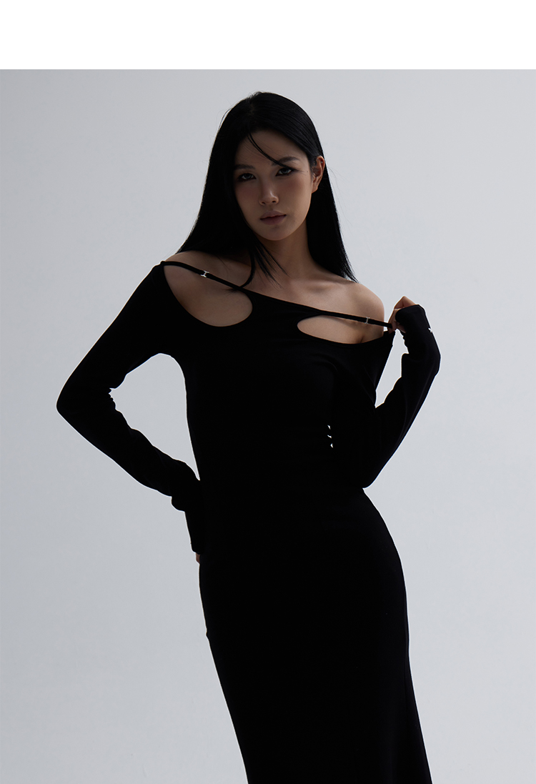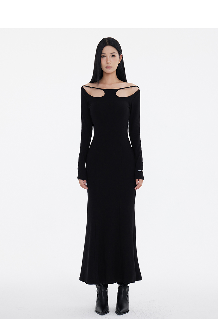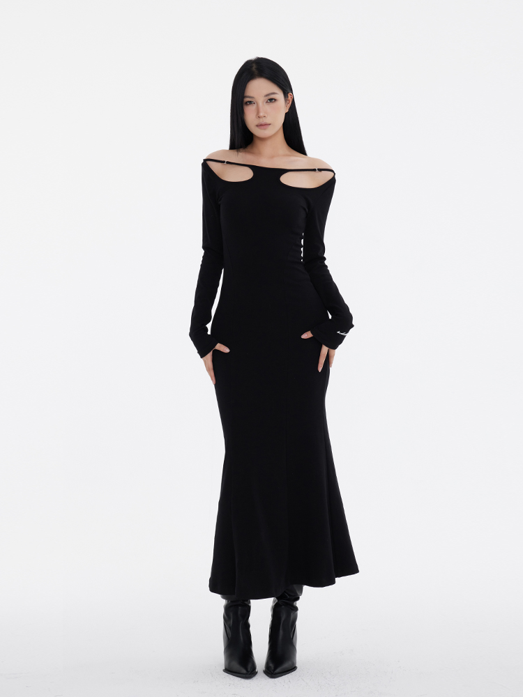 Off-Shoulder Slim Black Long Dress NA7291
