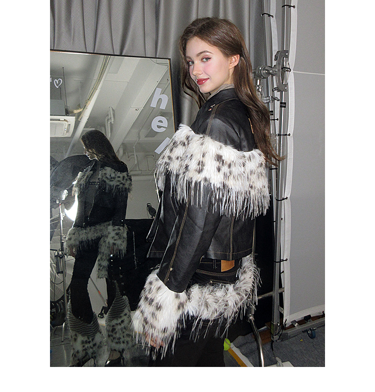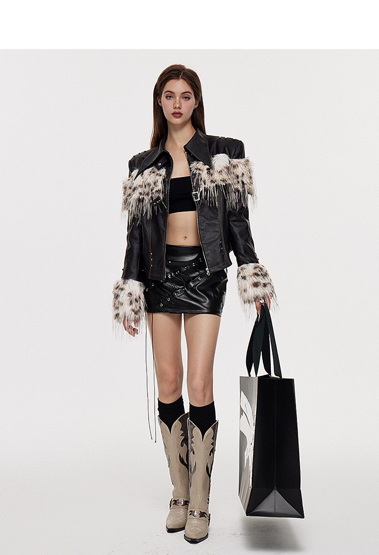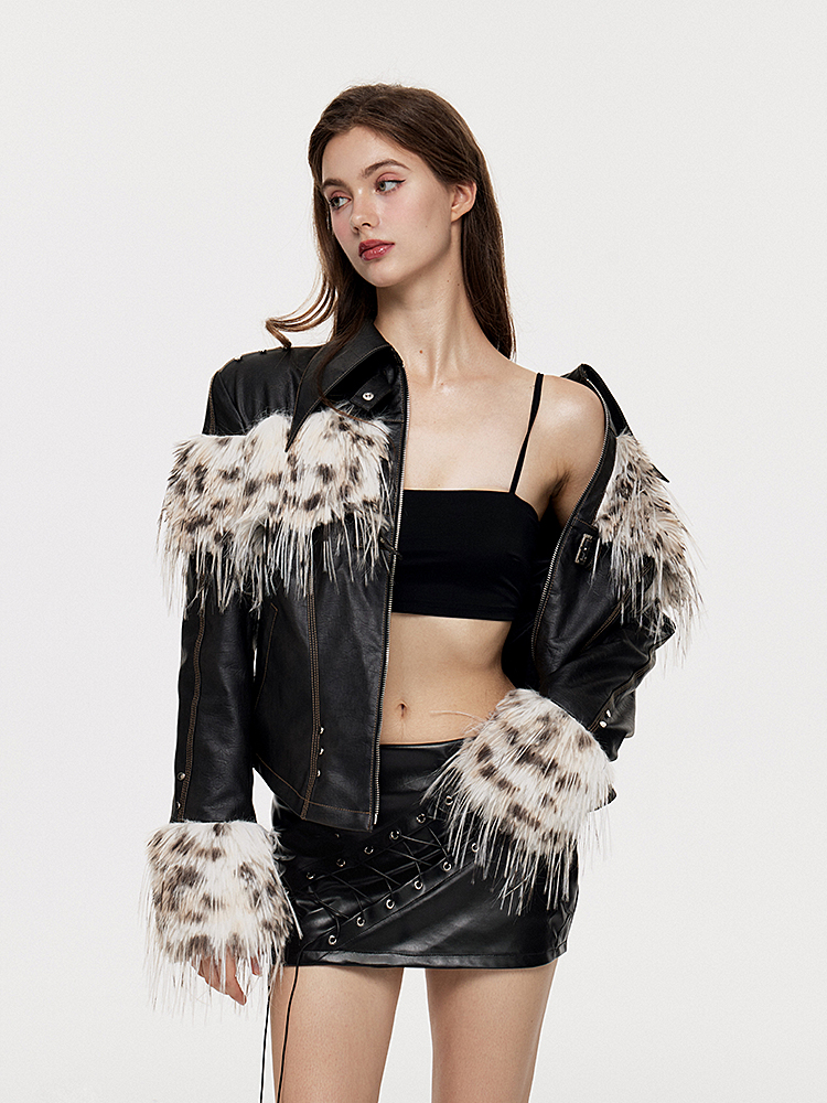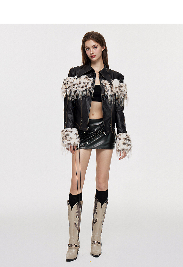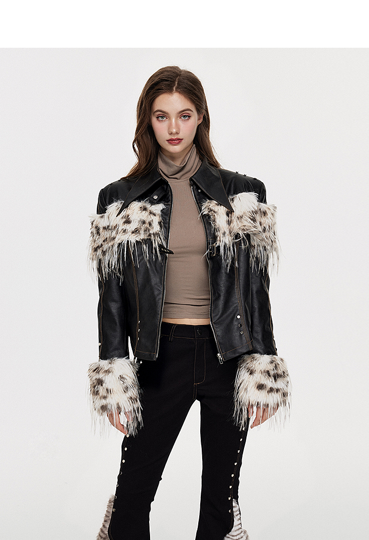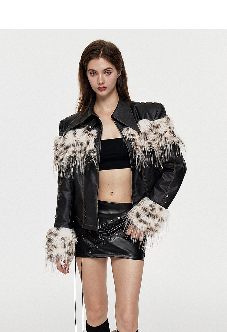 Fake Fur Patchwork Lined Thick PU Leather Jacket NA7309