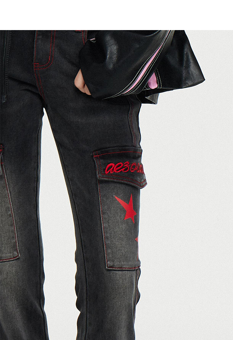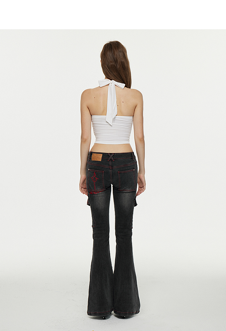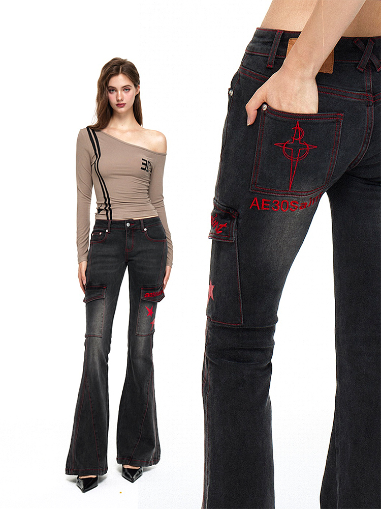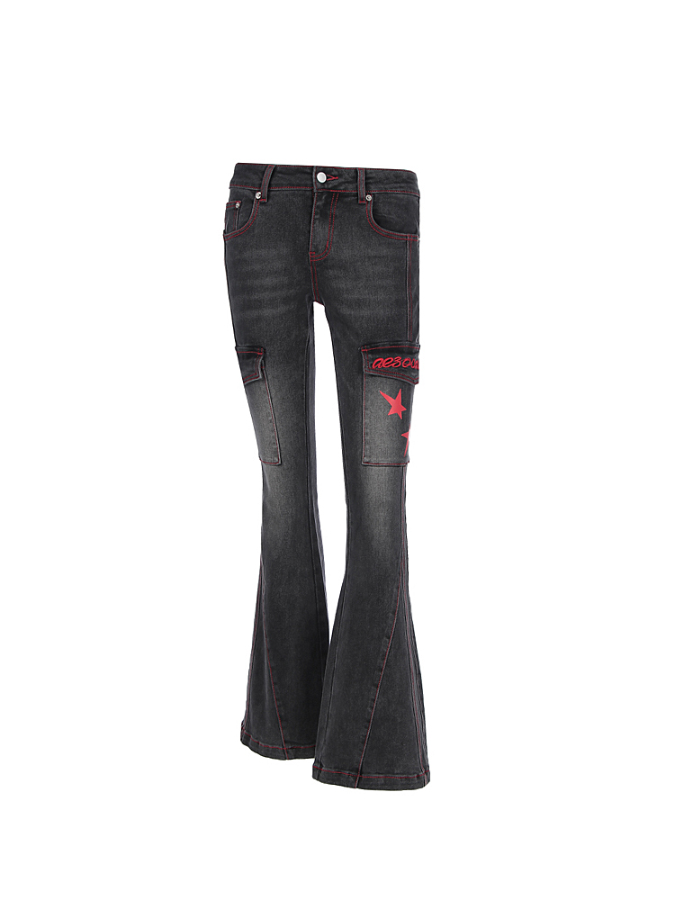 Washed Stretch Slim Flare Denim Jeans NA7310