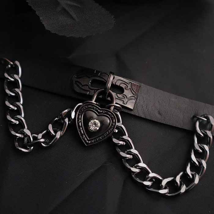 Dark Punk Heart Metal Hardware Leather Necklace NA7699