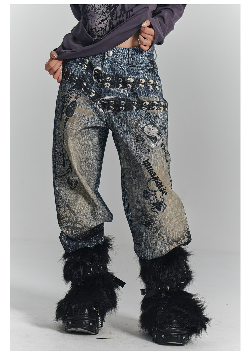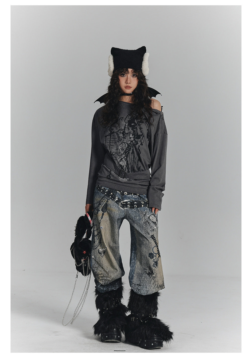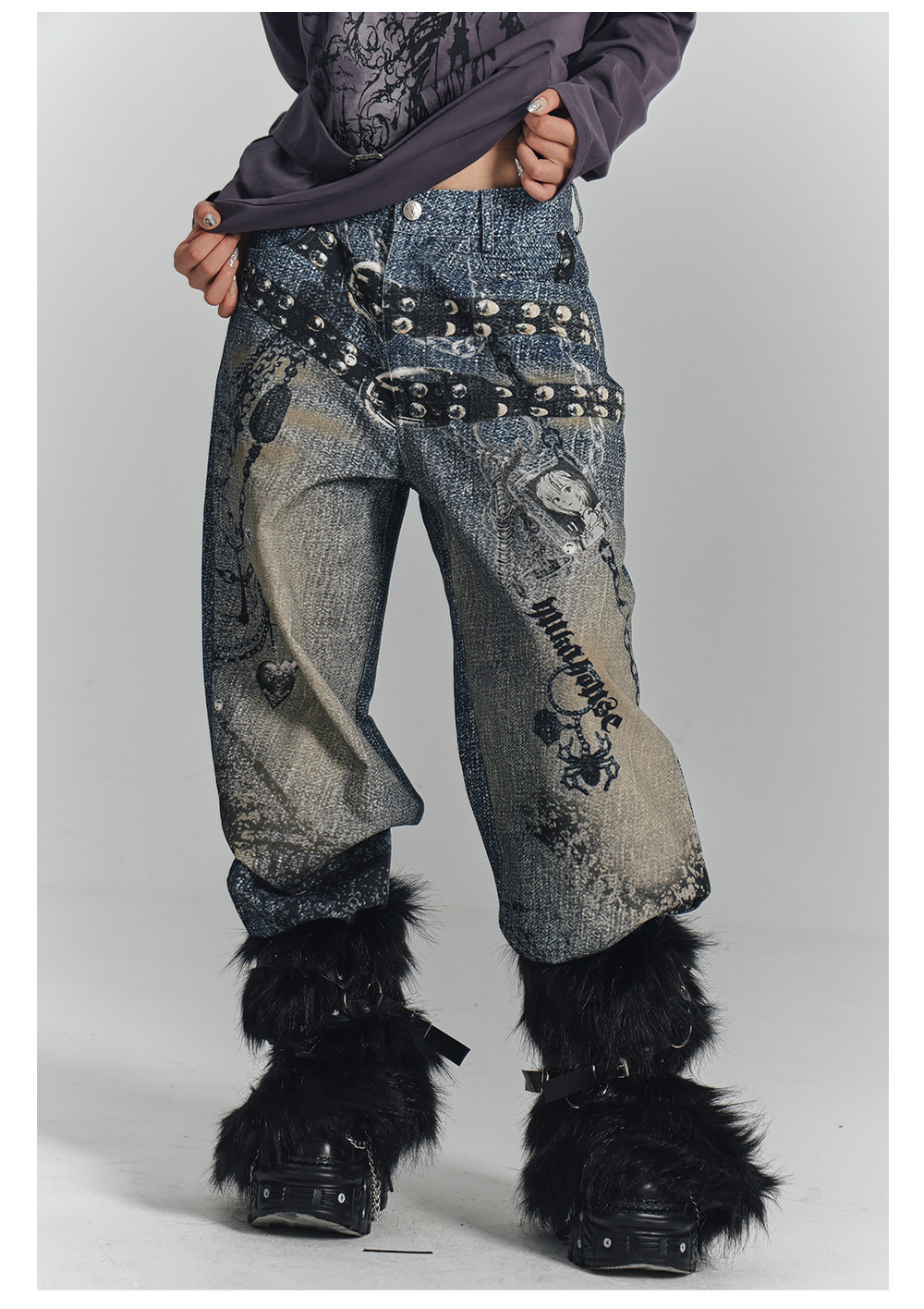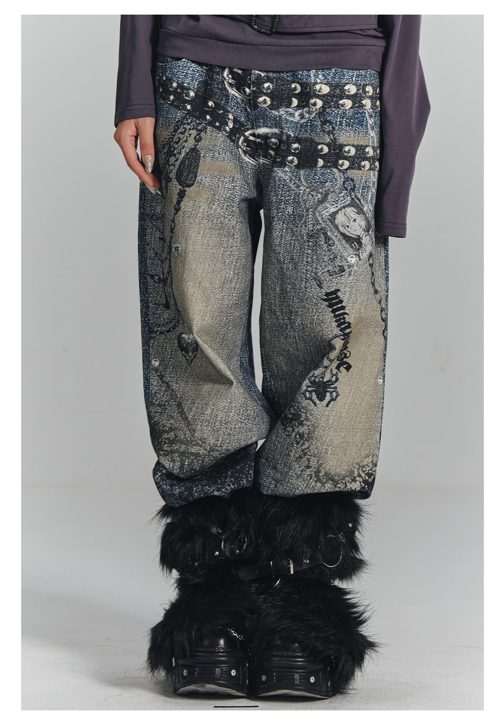 Chain Design Wide Leg Straight Denim Jeans NA8896