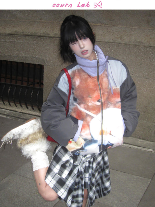 Dalmatian Print Contrast Patchwork Hooded Zipper Jacket NA8246