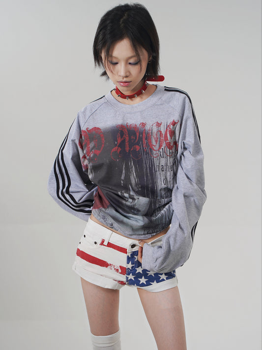 Punk Girl Graphic Gray Long Sleeve T-Shirt NA7632