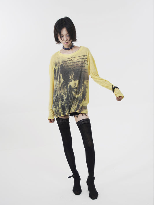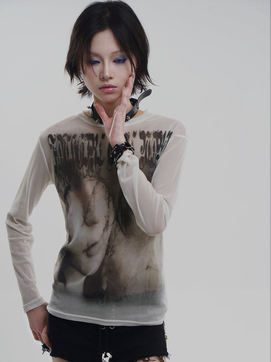 Goth Emo Artist Collaboration Mesh Long Sleeve T-Shirt NA7626