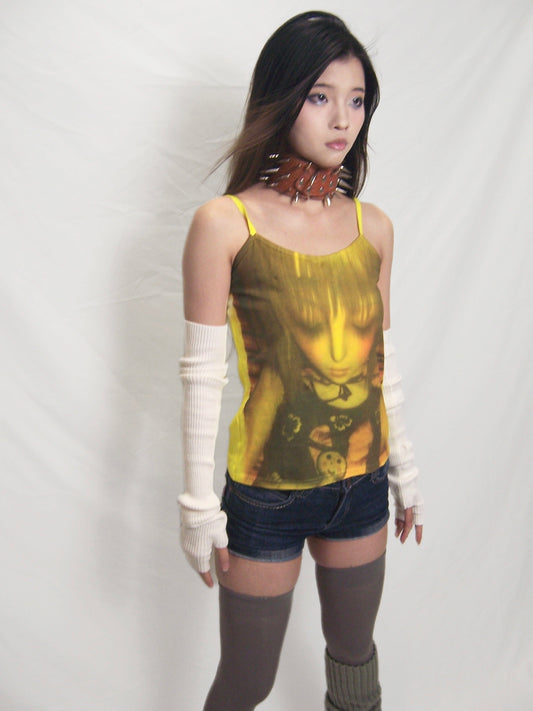 Rare Dreamcore Artist Original "Green Doll" Print Camisole NA7630