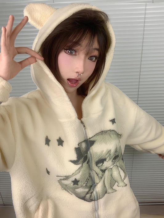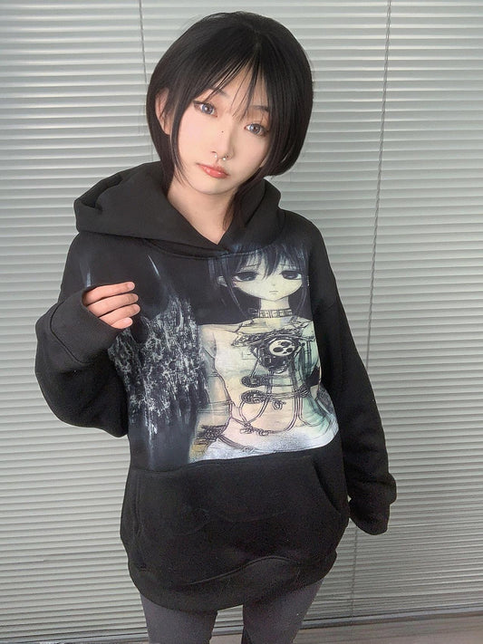 Acid Metal Girl Print Heavyweight Fleece-Lined Hoodie NA7629