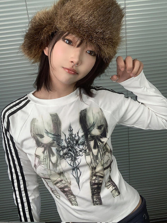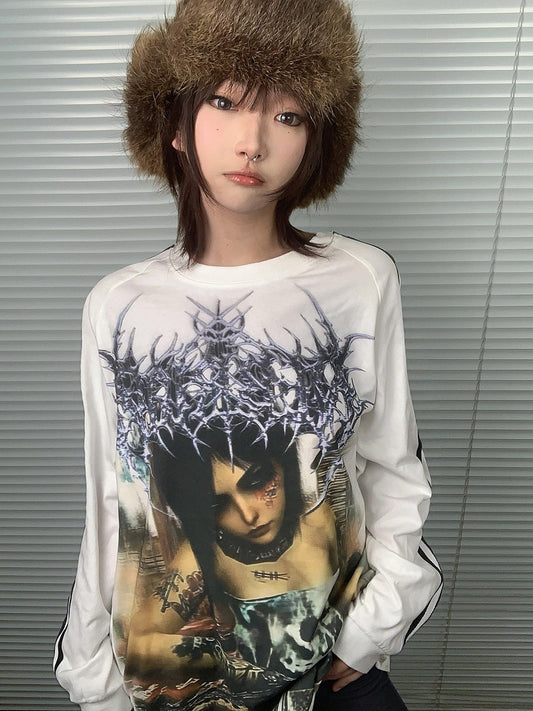Y2K Liquid Acid Metal 3D Girl Oversize Long Sleeve T-Shirt NA7636