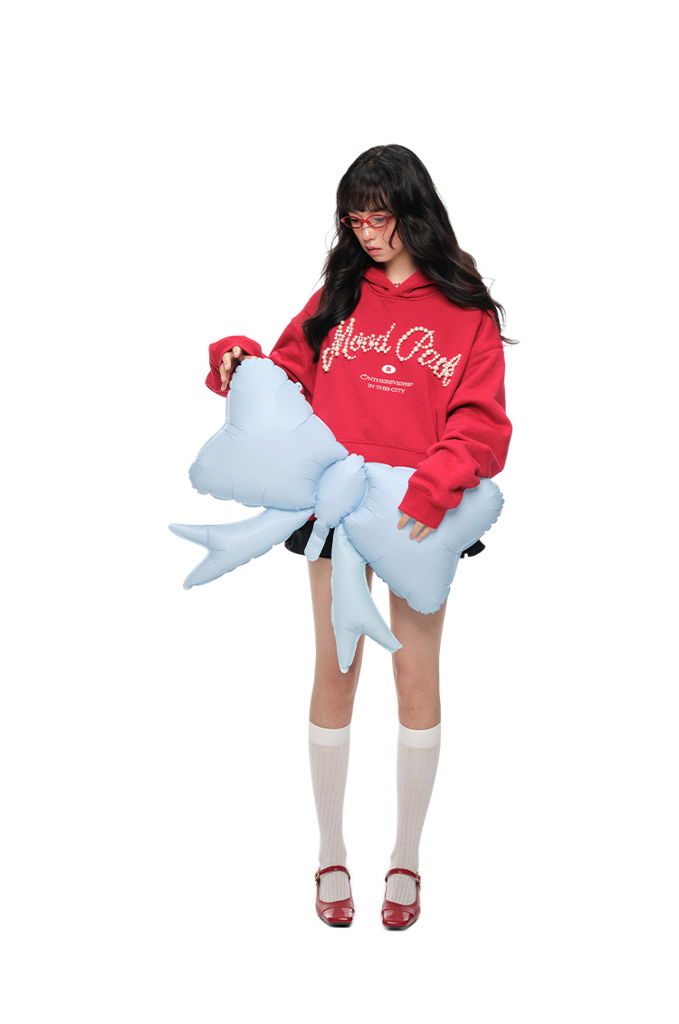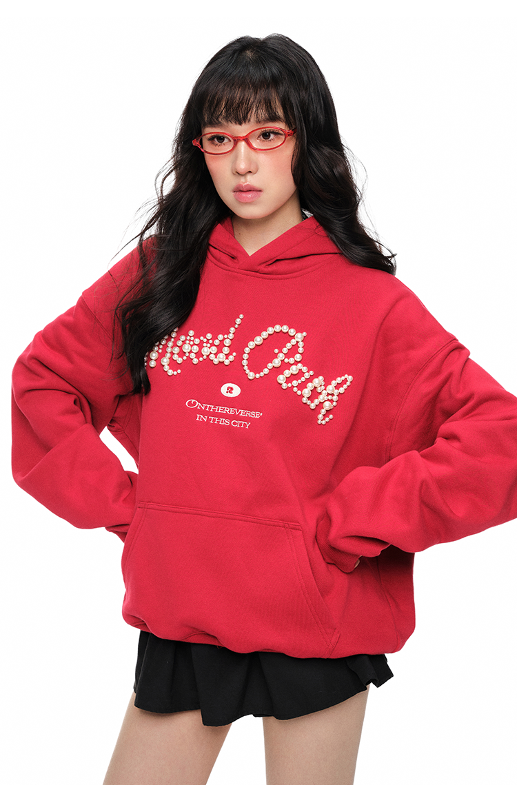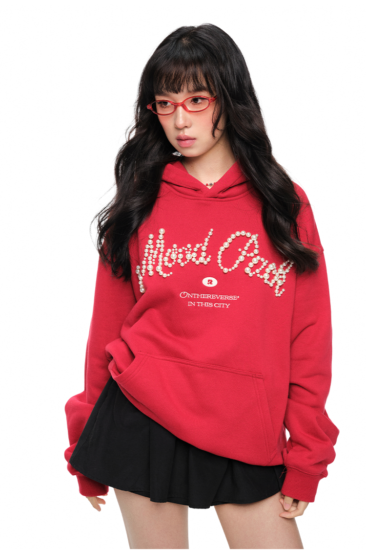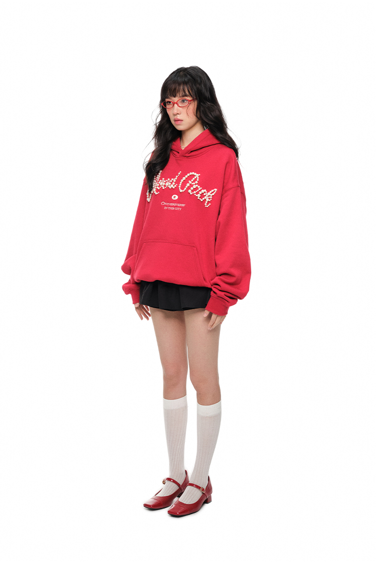 Pearl Letter Print Oversize Hoodie NA6054