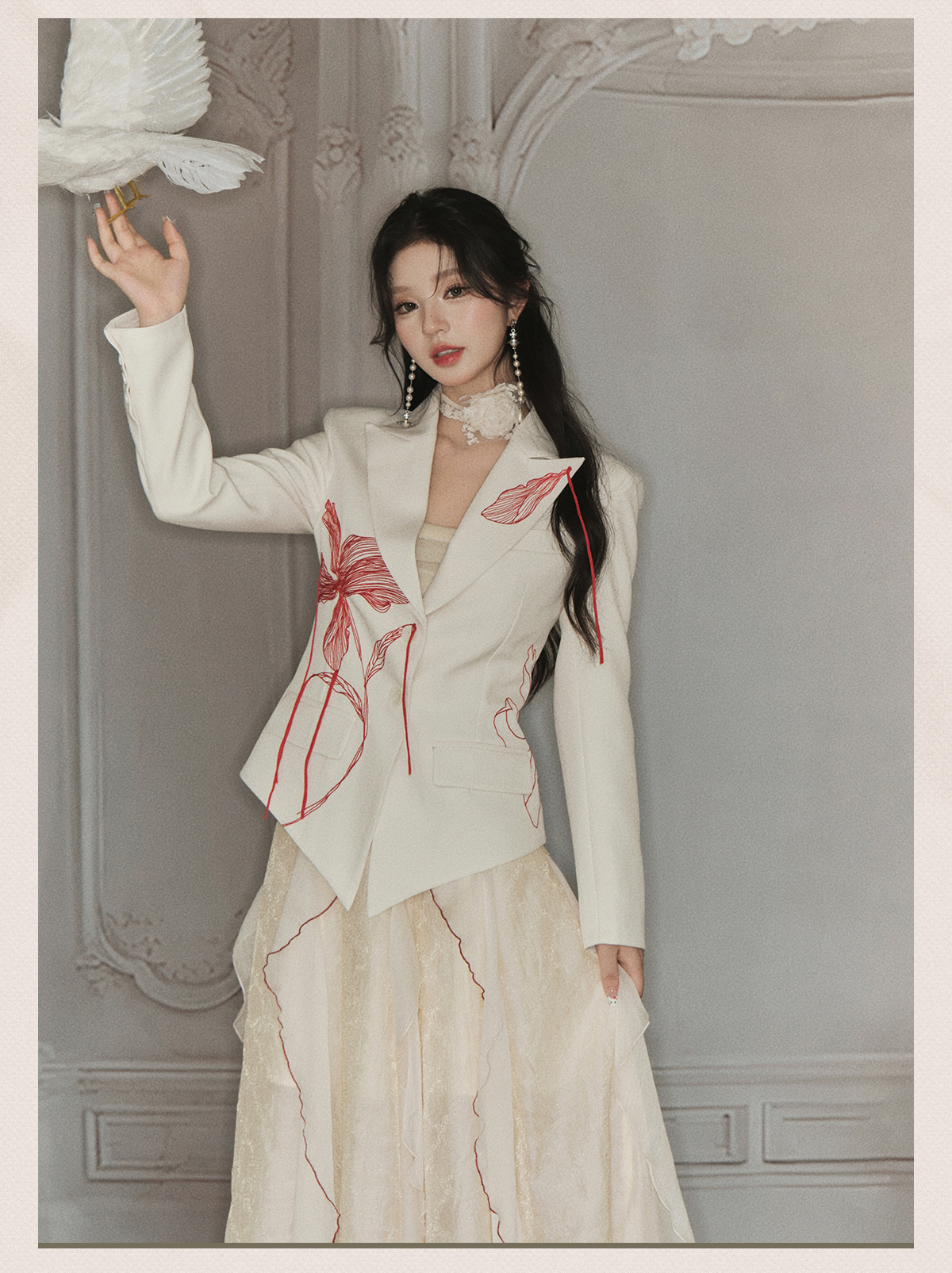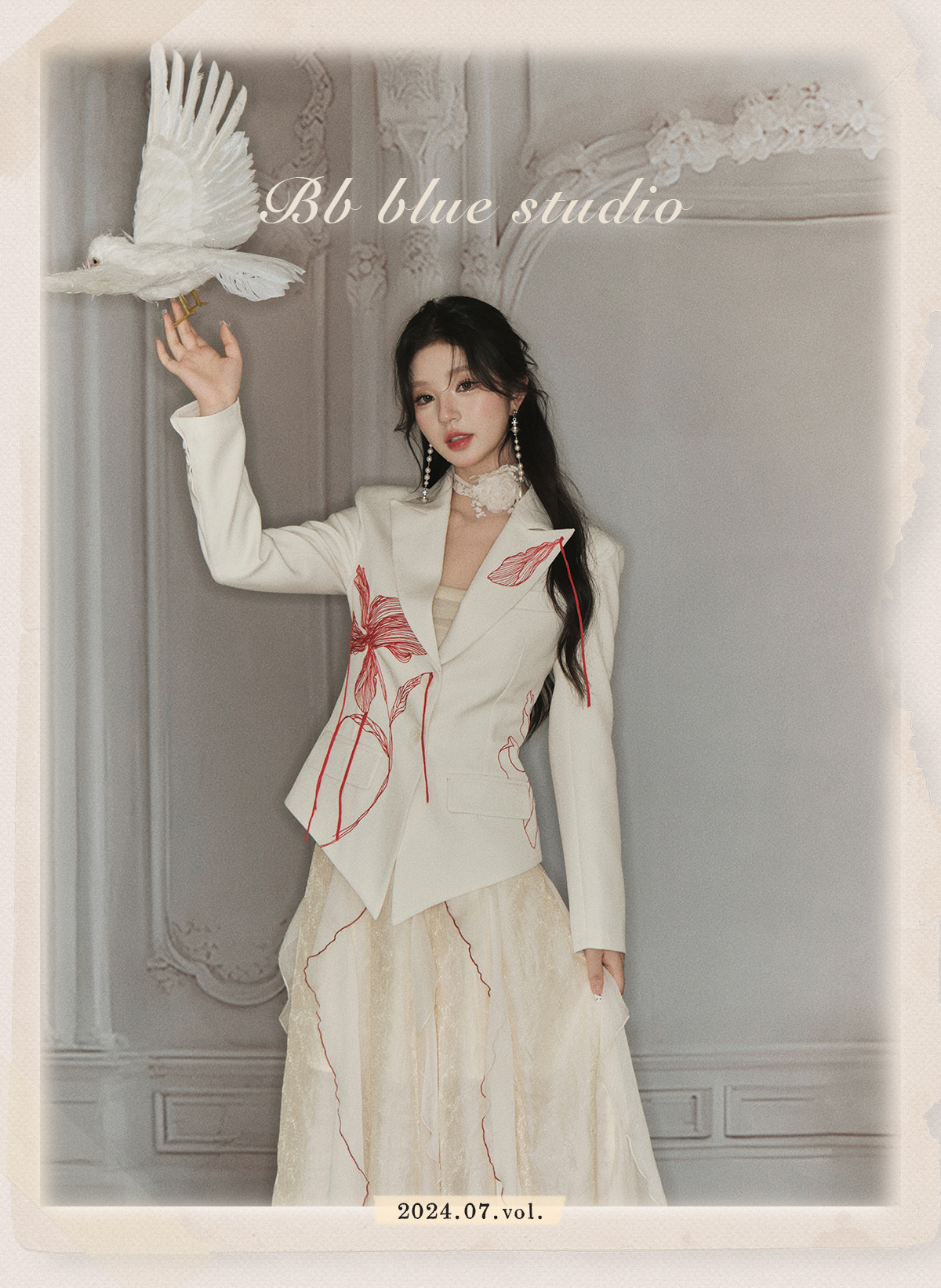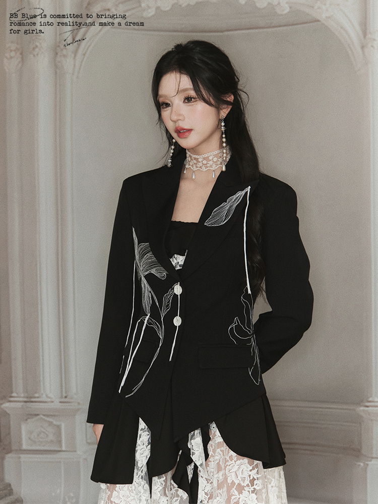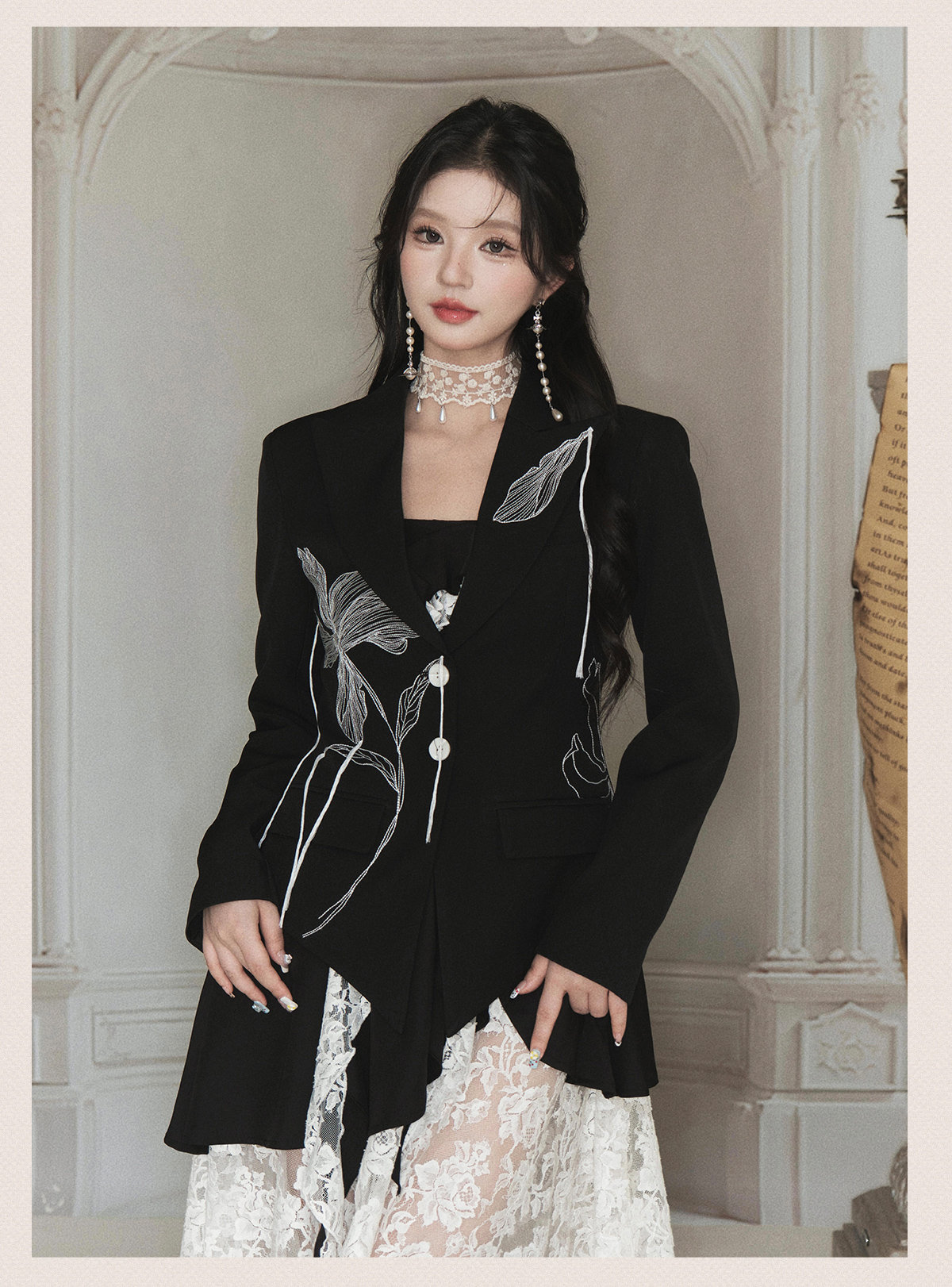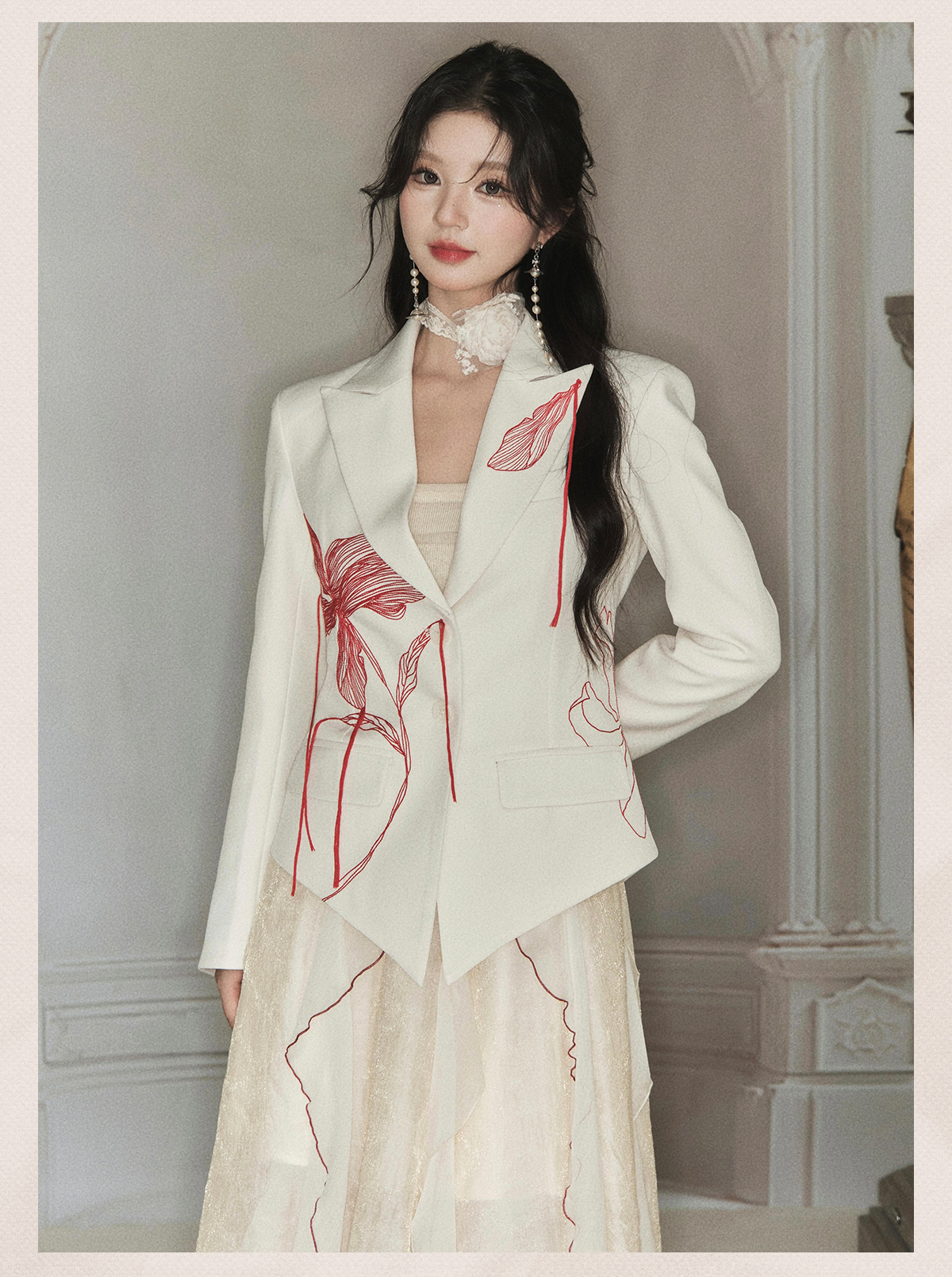 Shoulder-Pad Embroidery Iris Tailored Jacket NA7517