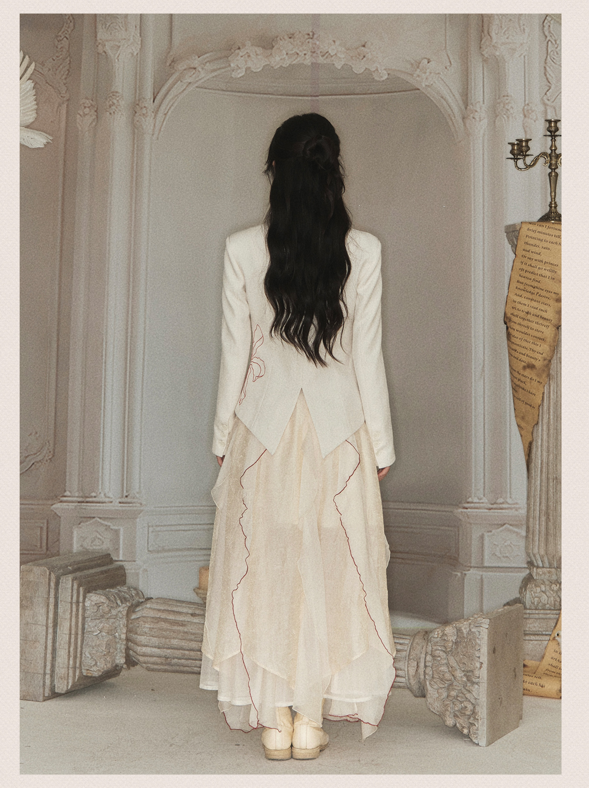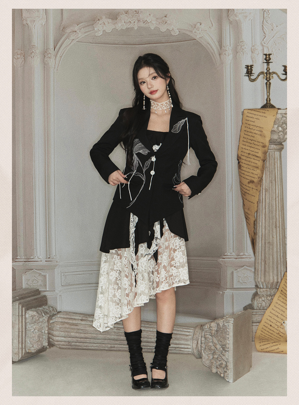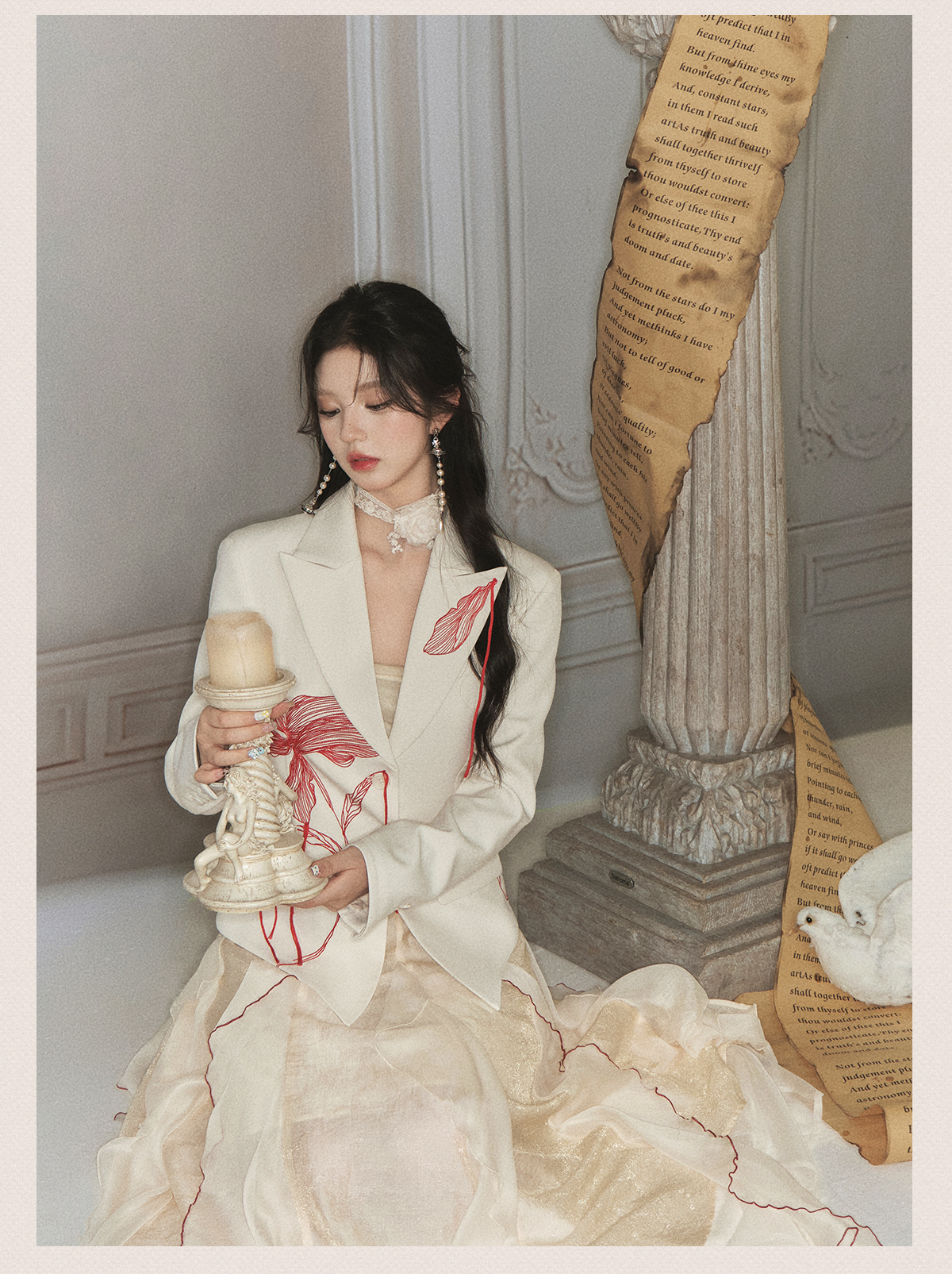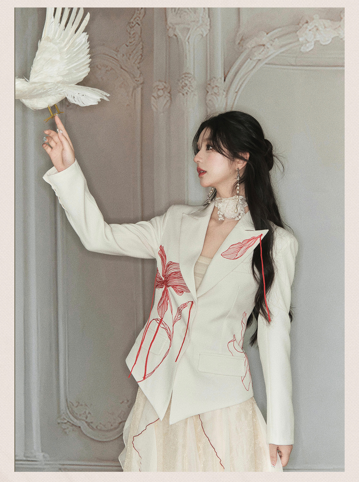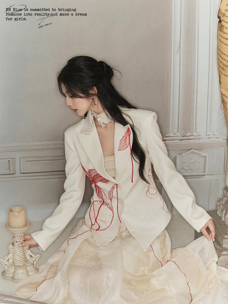 Shoulder-Pad Embroidery Iris Tailored Jacket NA7517