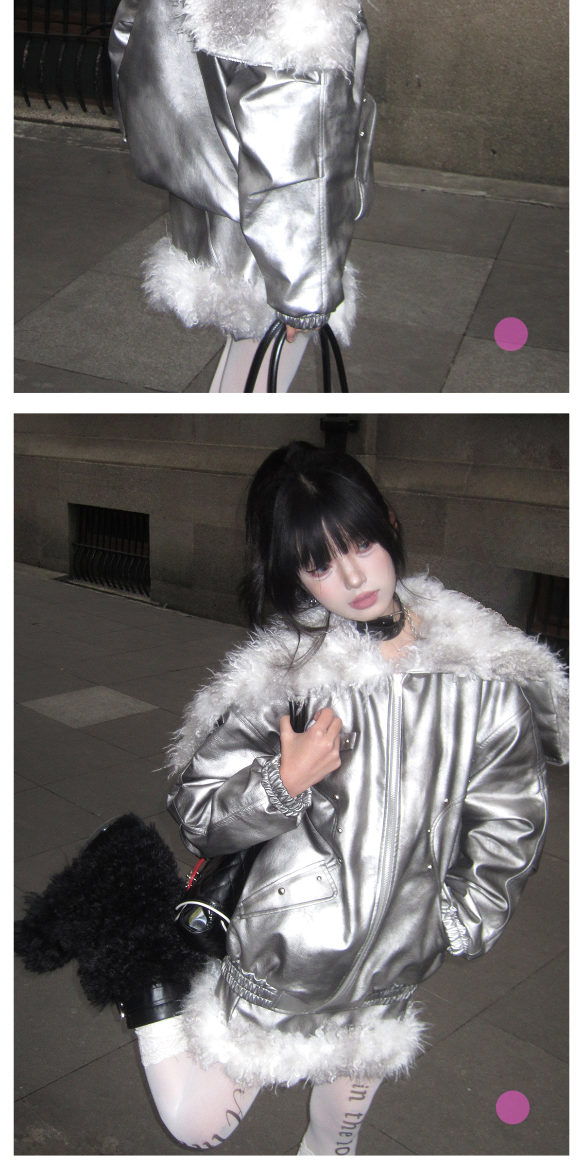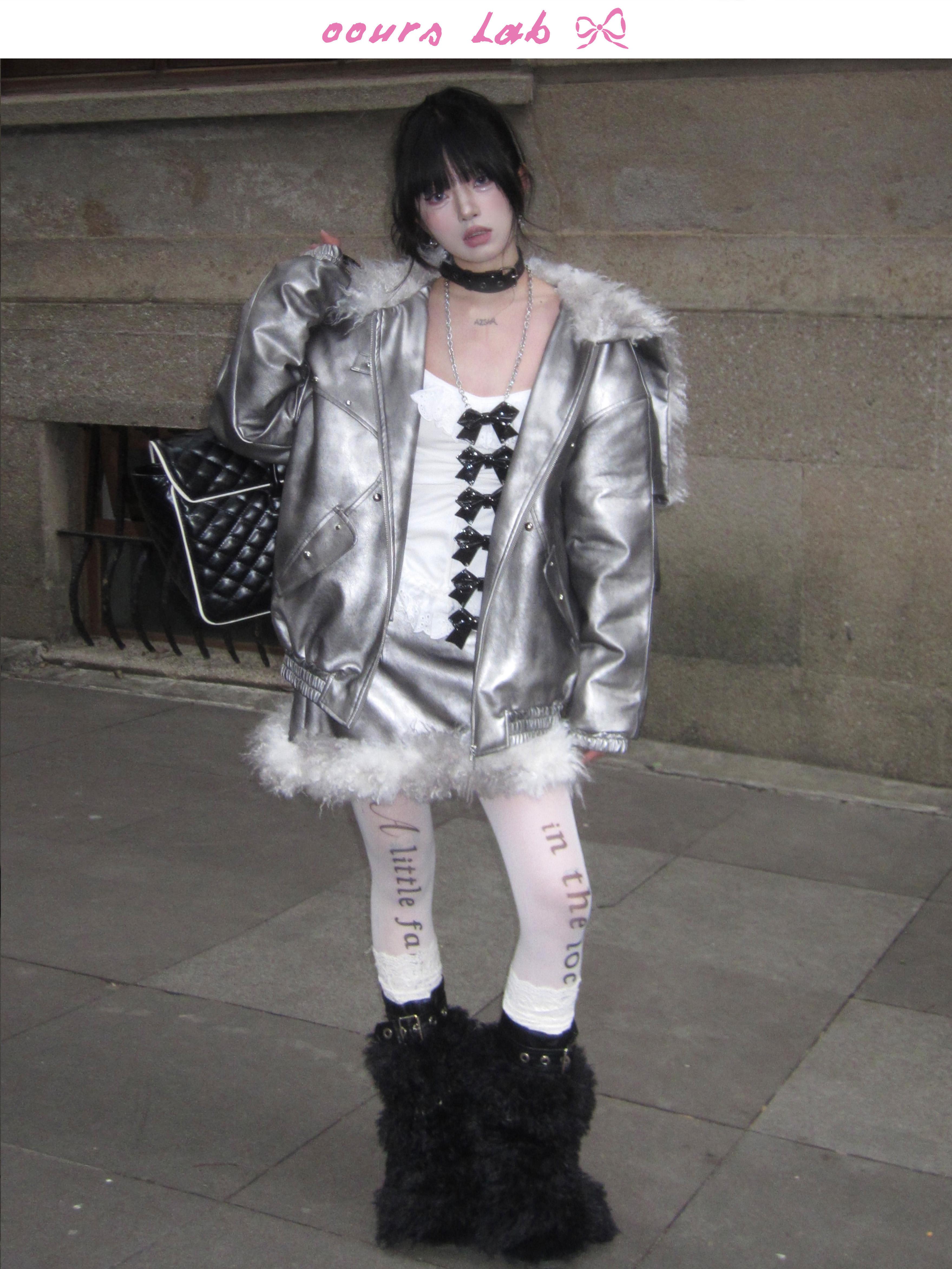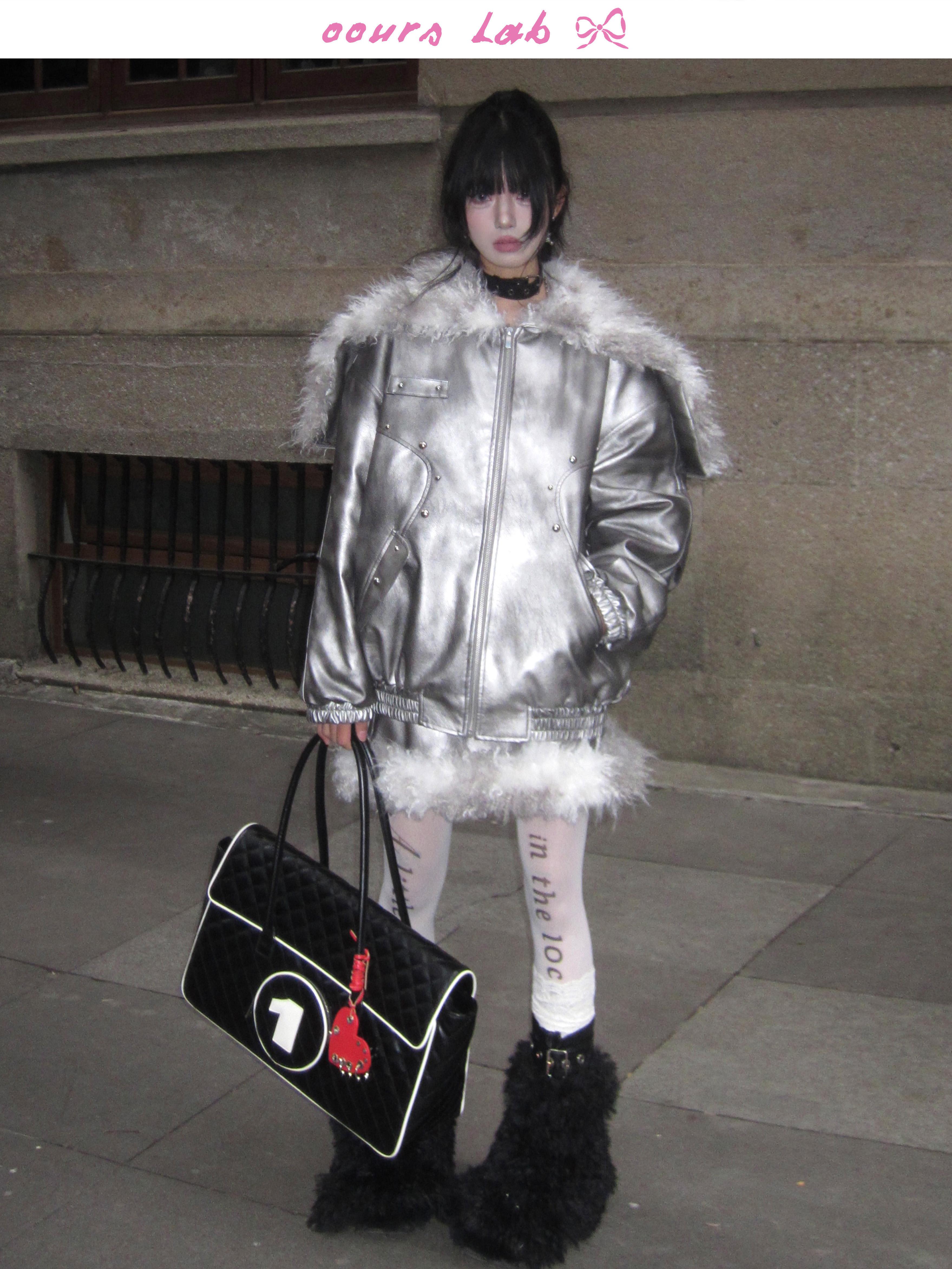 Silver PU Puffer Jacket & A-Line PU Skirt Setup NA8200