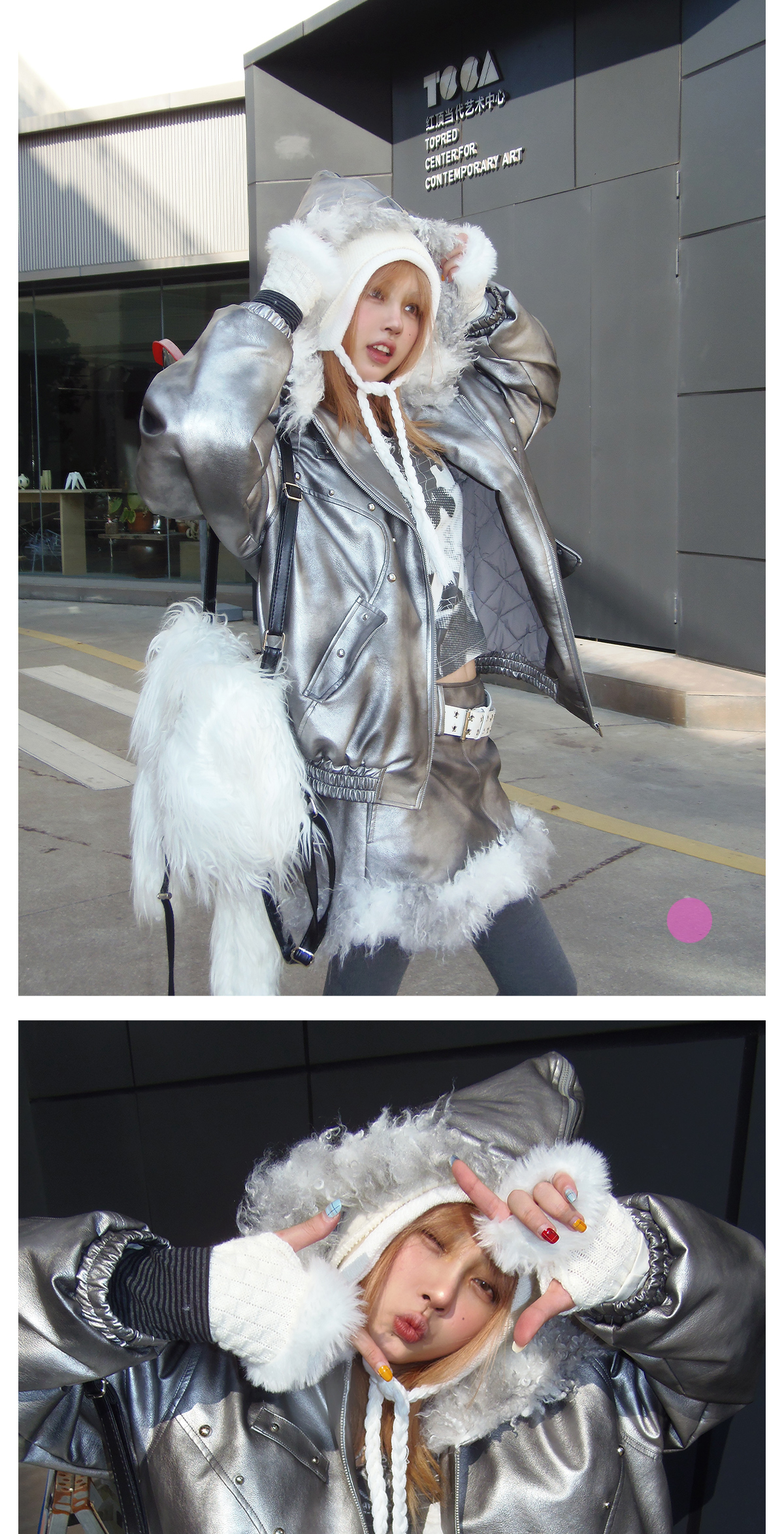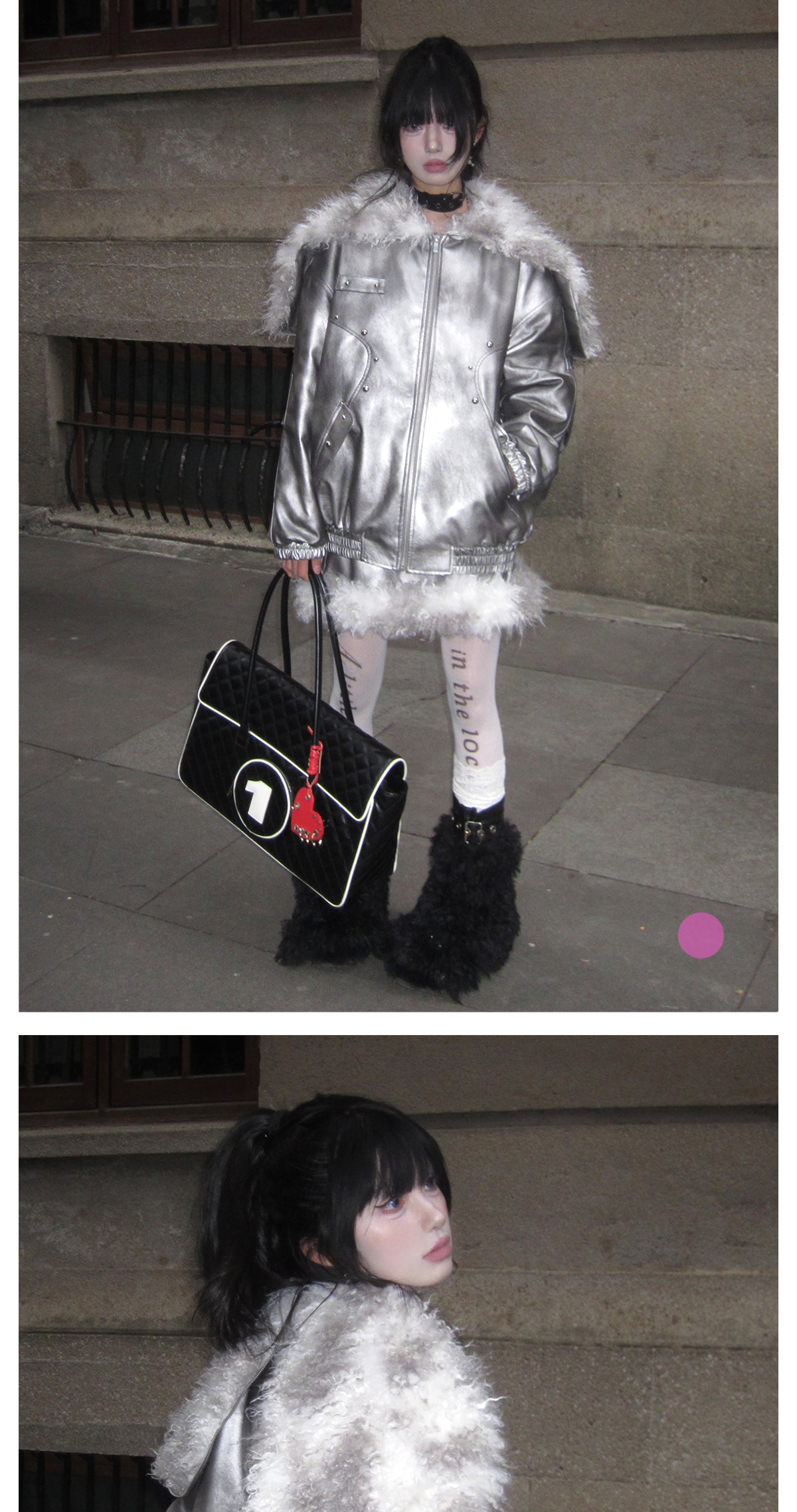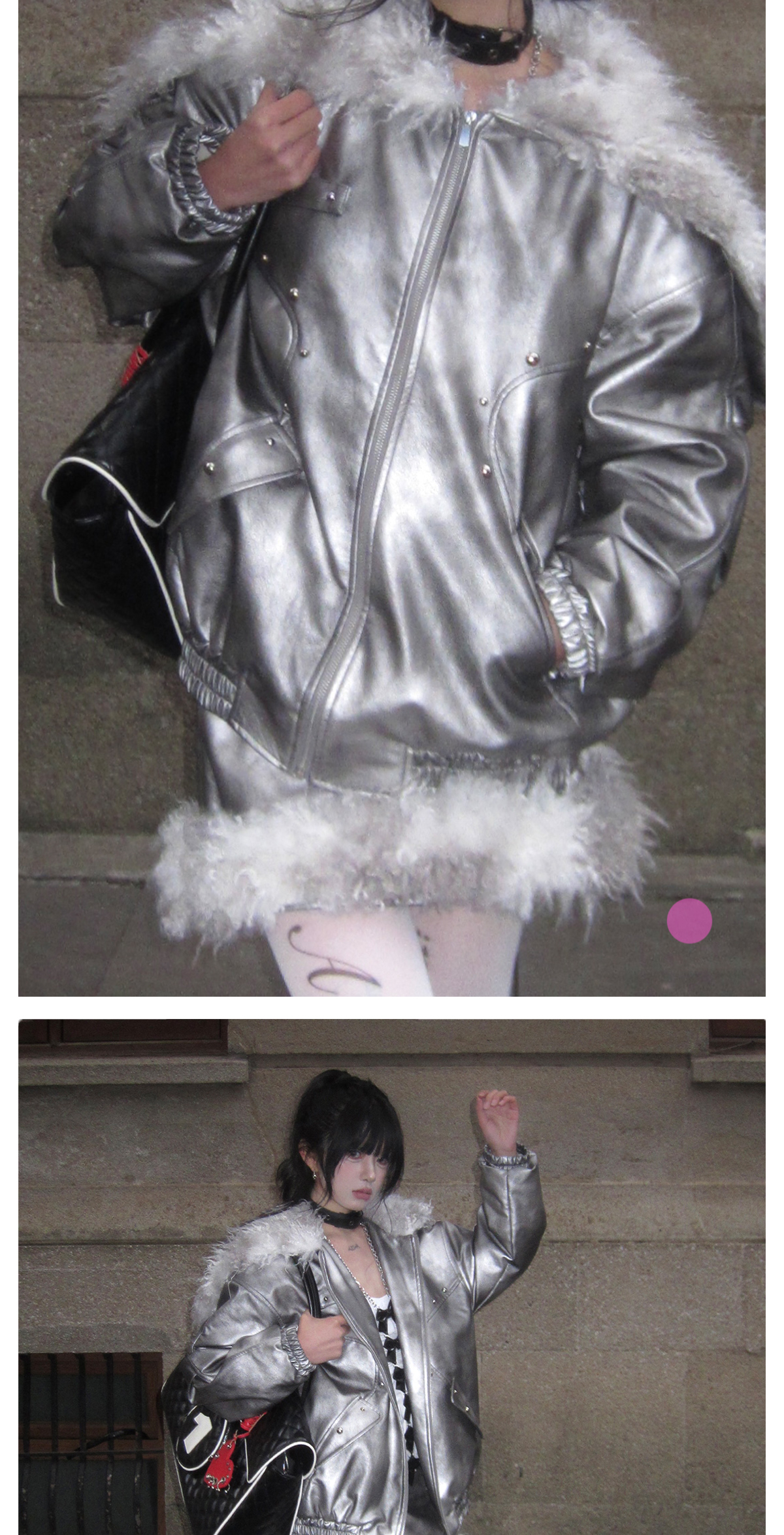 Silver PU Puffer Jacket & A-Line PU Skirt Setup NA8200