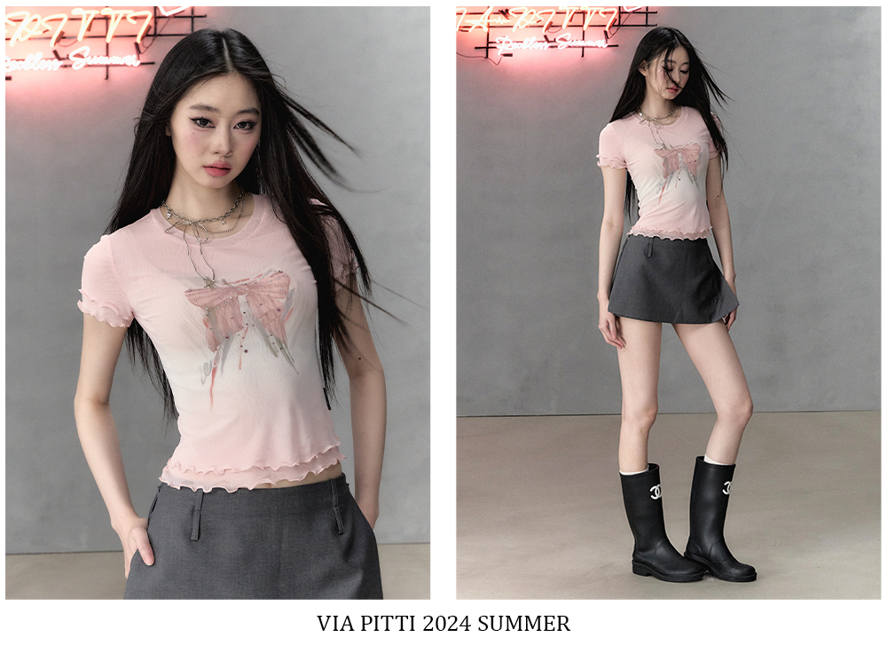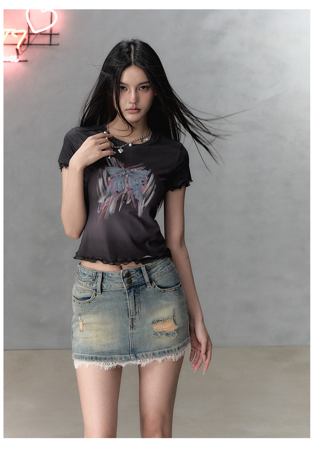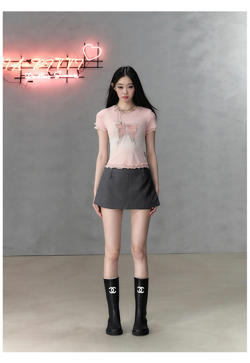 Bow Print Round Neck Short Sleeve T-shirt NA4763