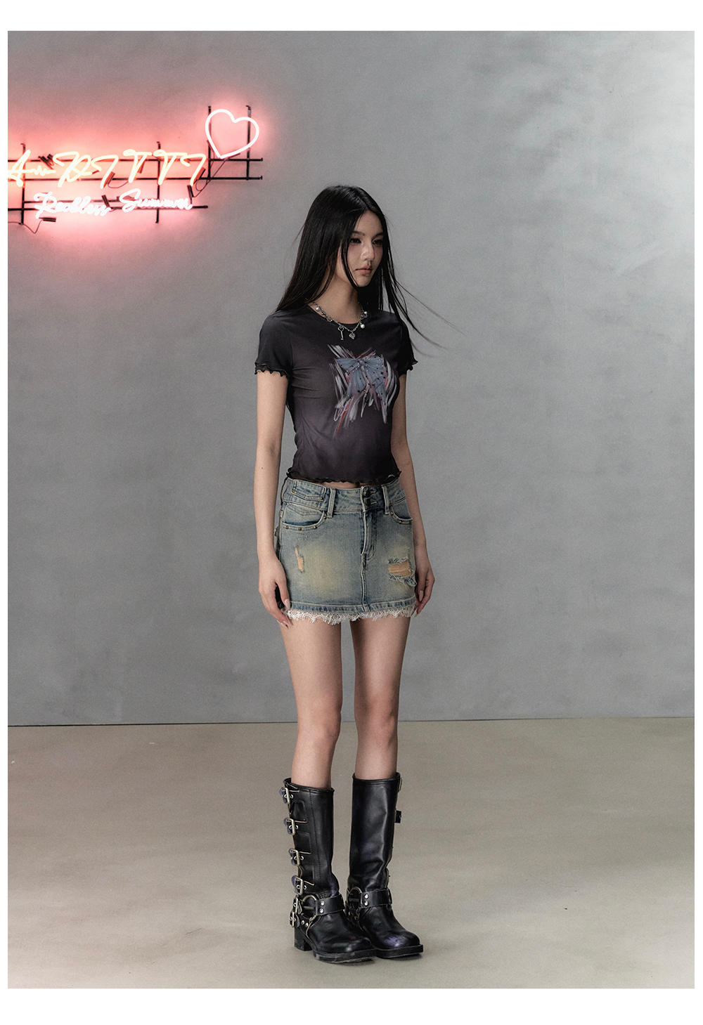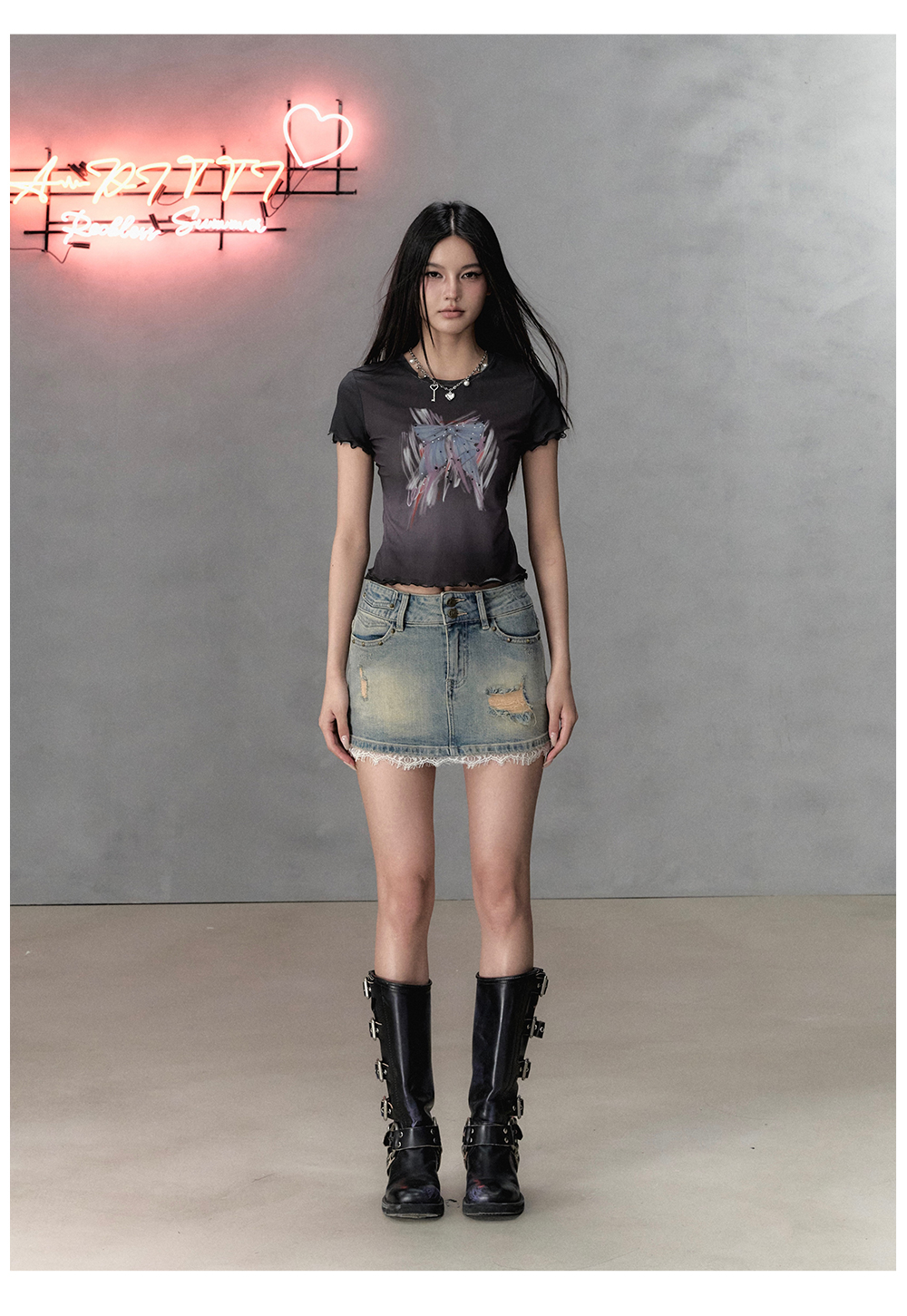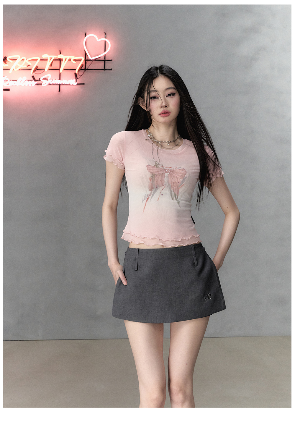 Bow Print Round Neck Short Sleeve T-shirt NA4763