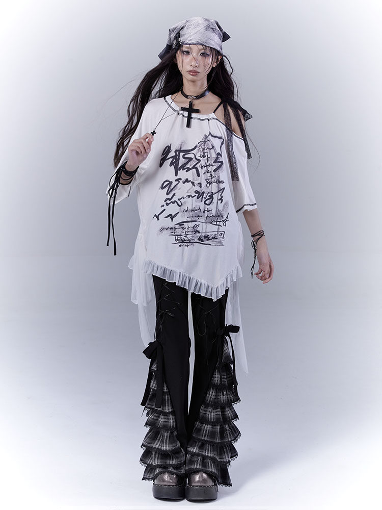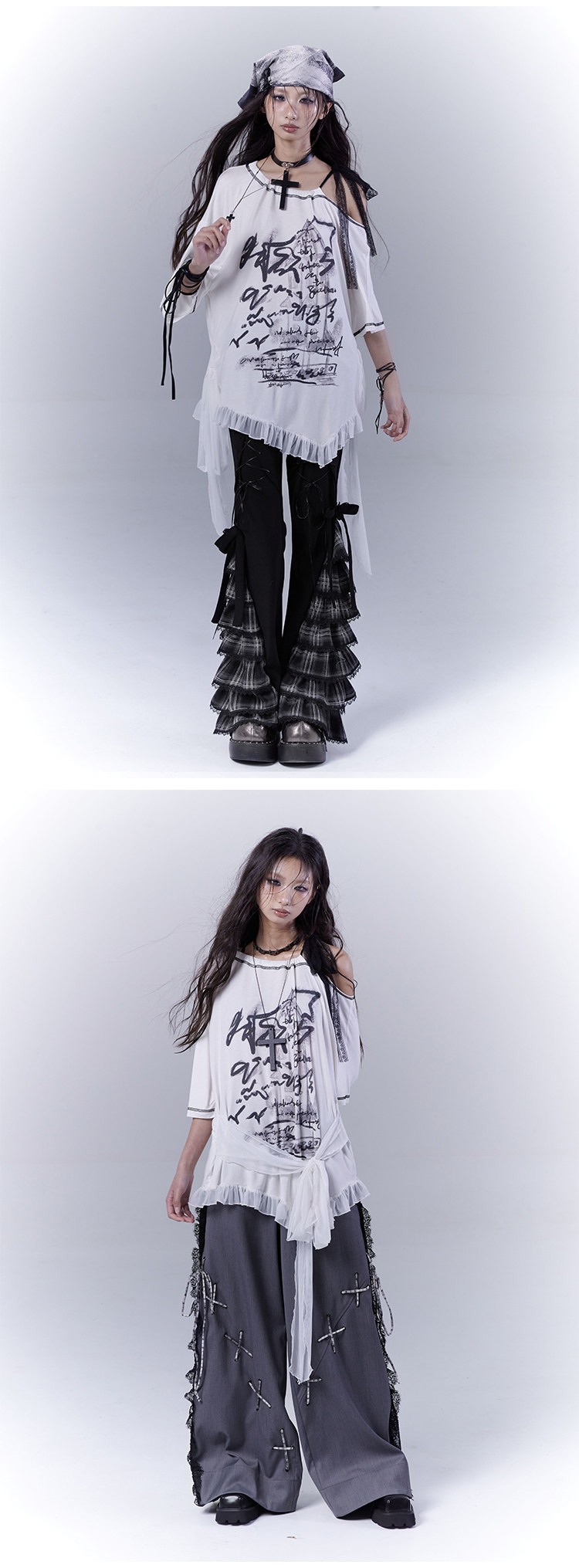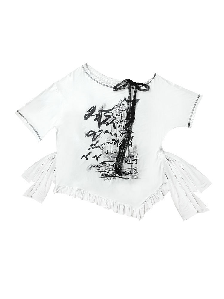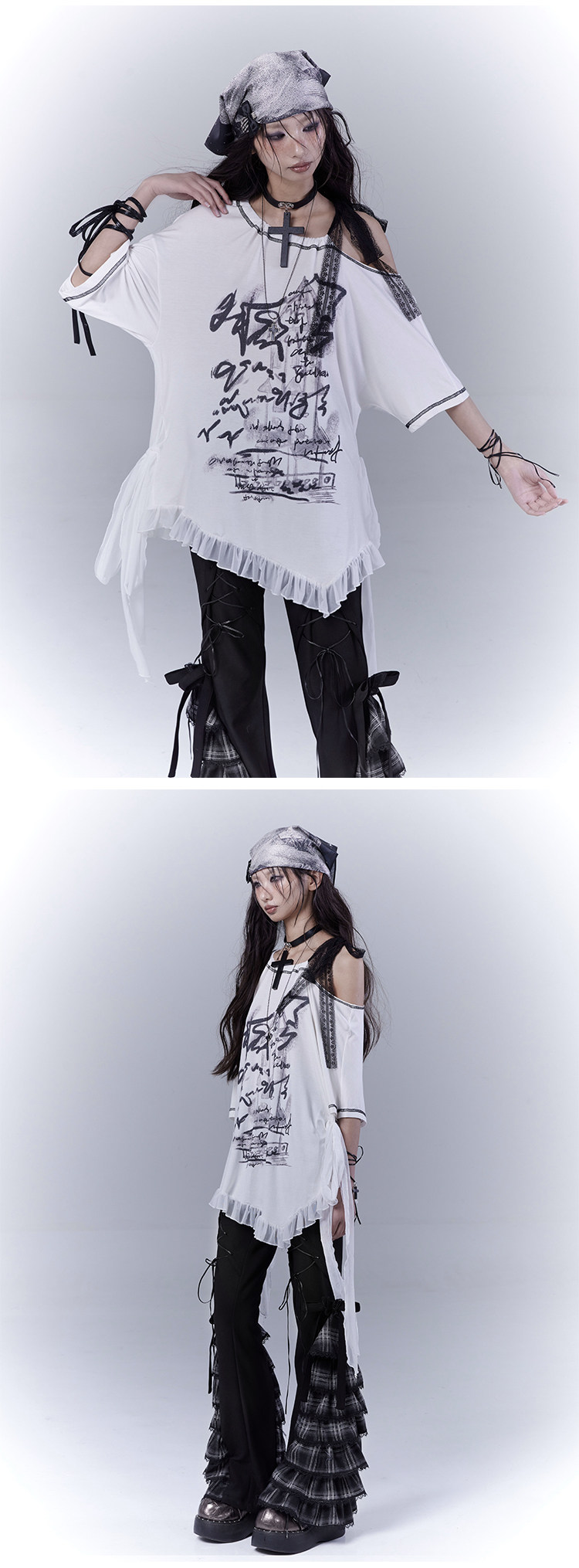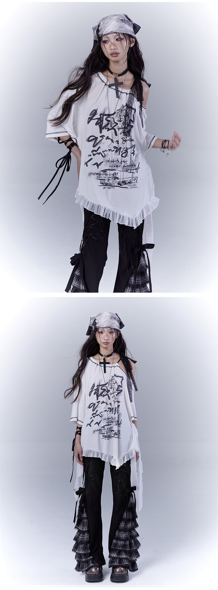 Design Print Sheer Oversize Short Sleeve T-Shirt NA8536