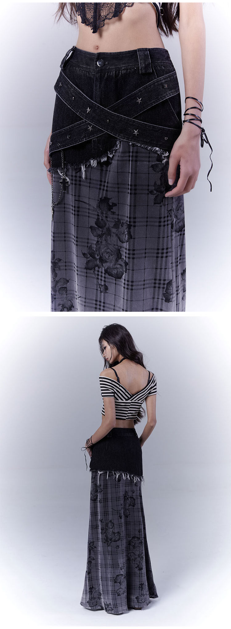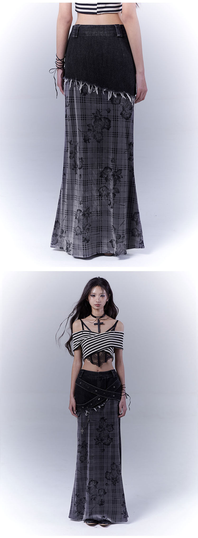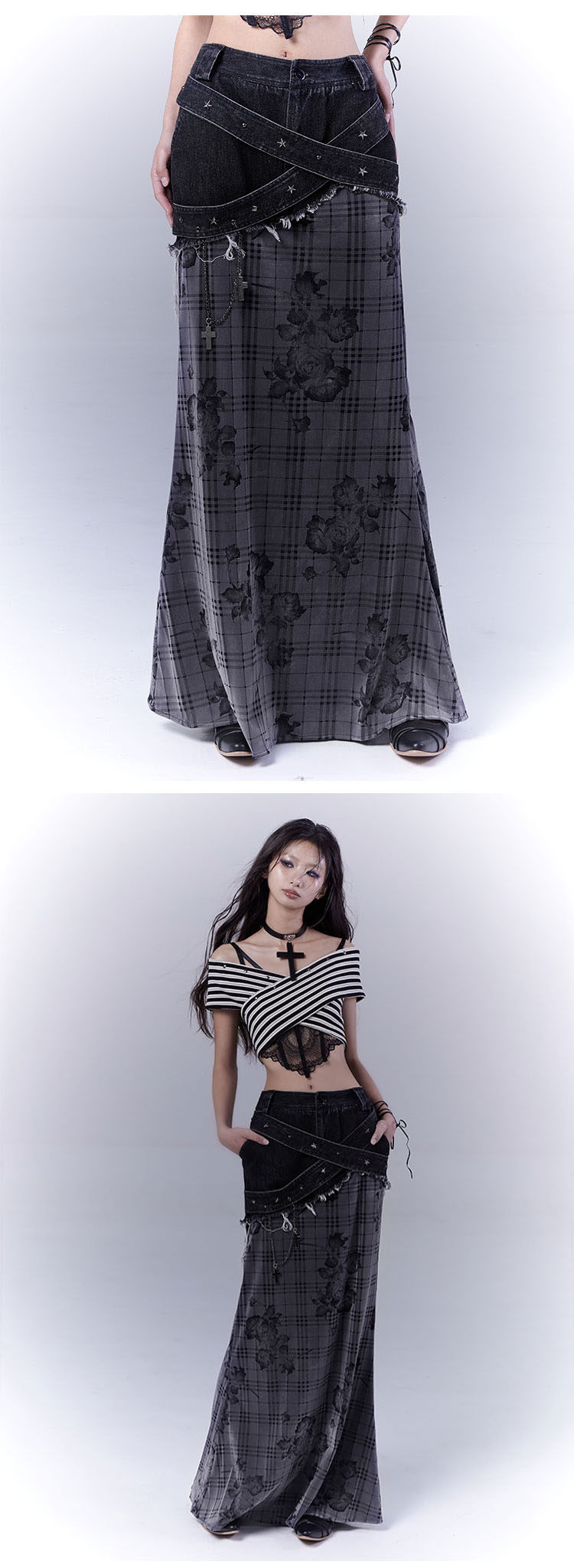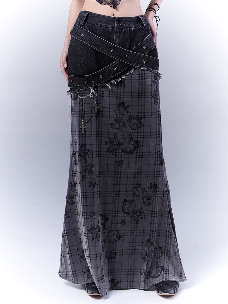 Plaid Rose Low Saturation Denim Skirt NA8544
