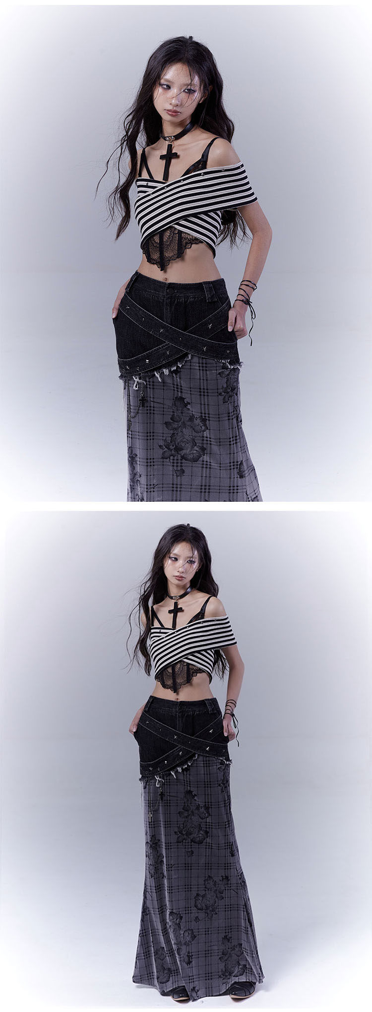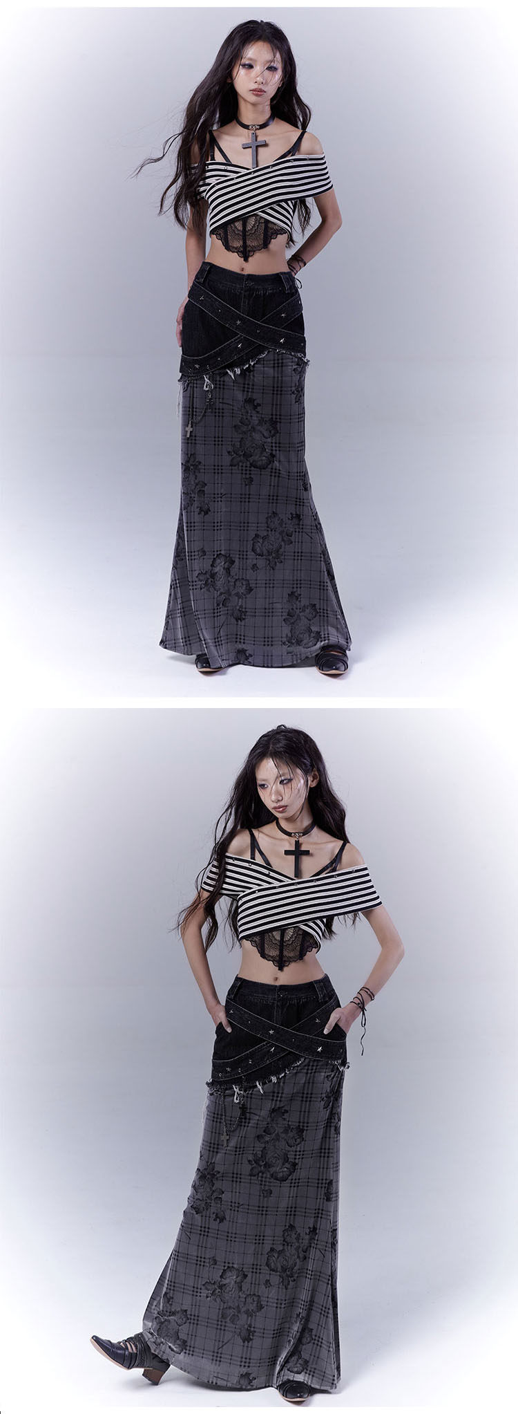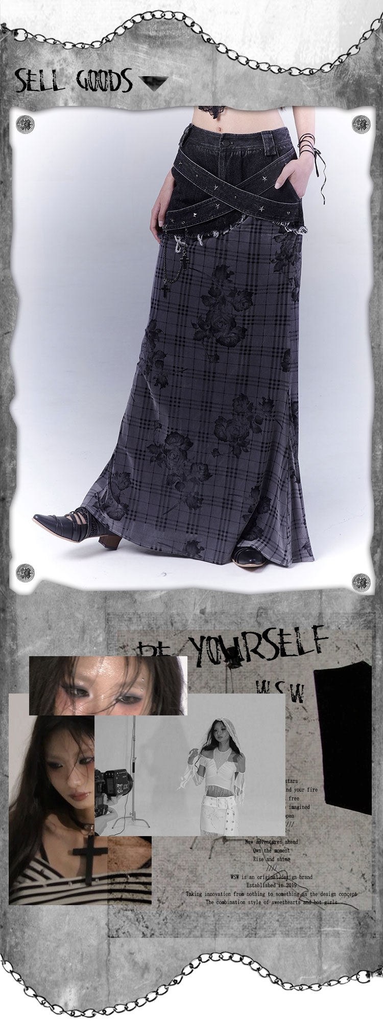 Plaid Rose Low Saturation Denim Skirt NA8544