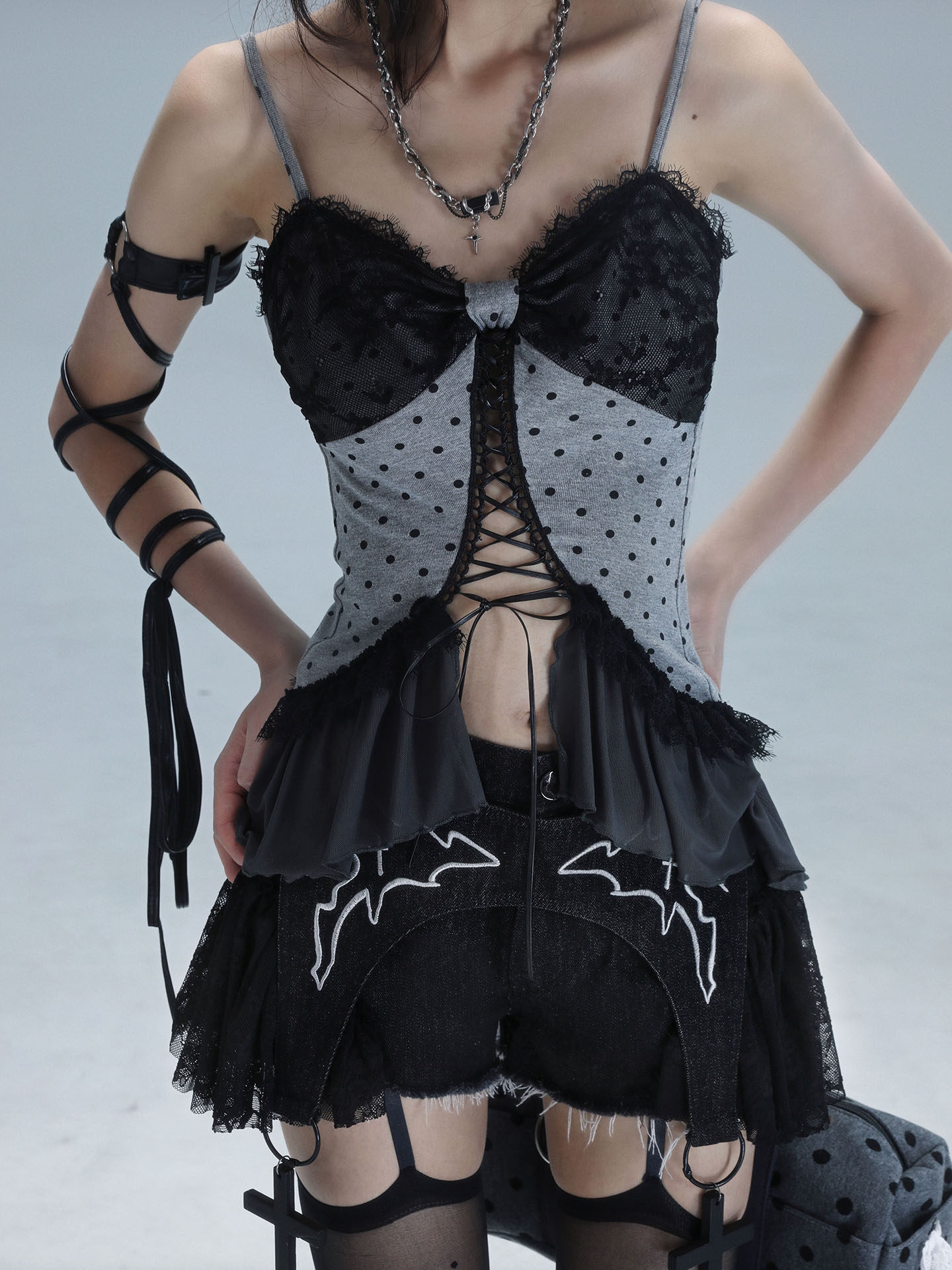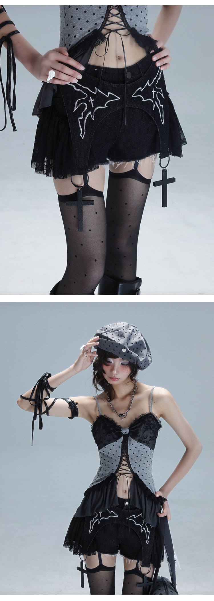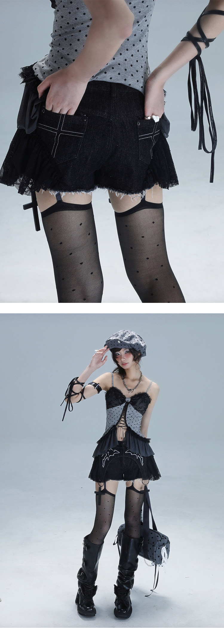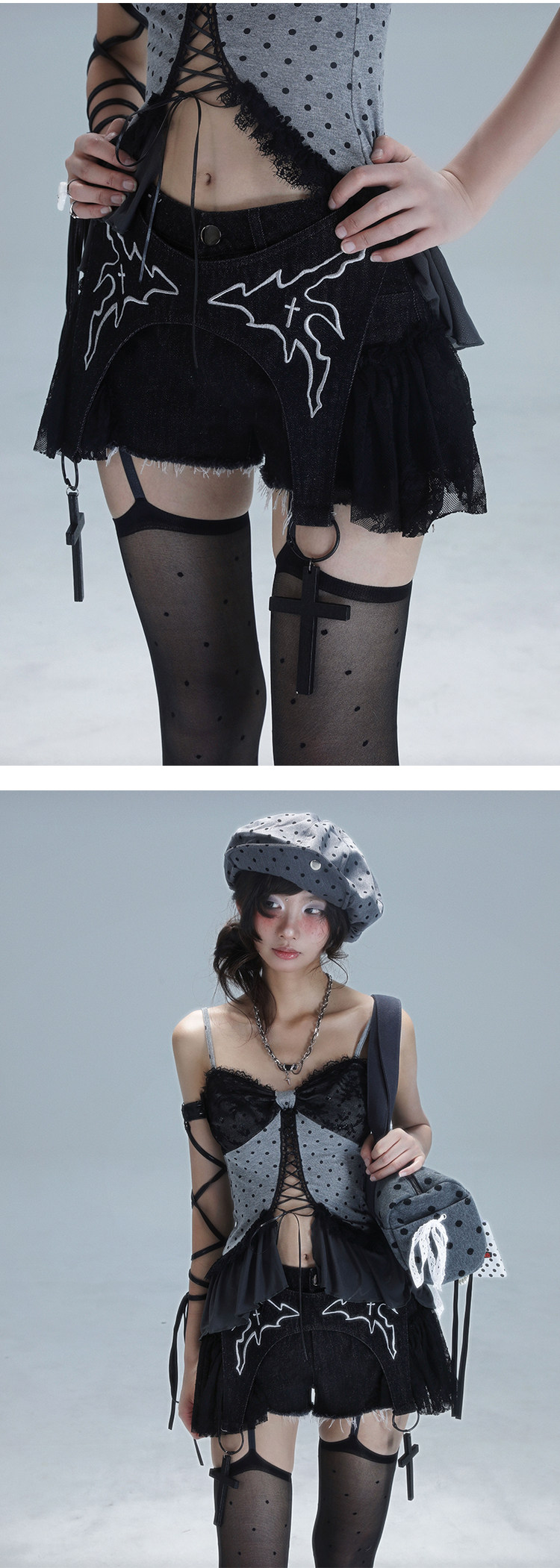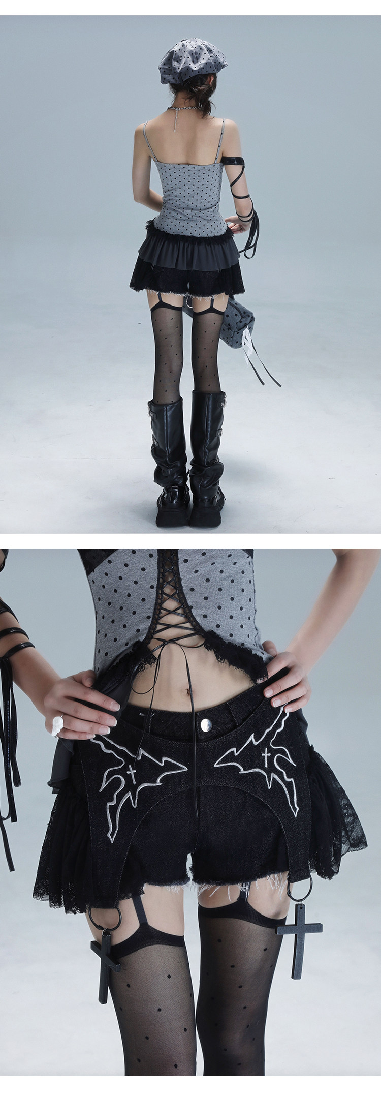 Original Lace Patchwork Washed Embroidery Denim Short Pants NA8549