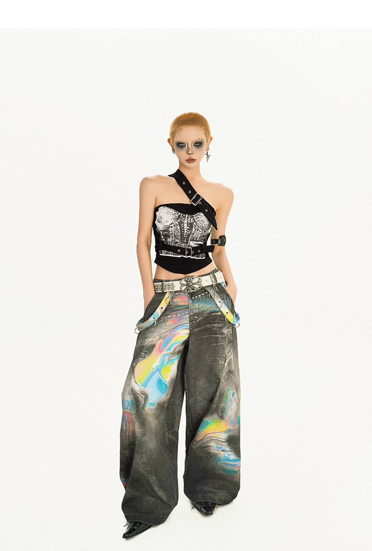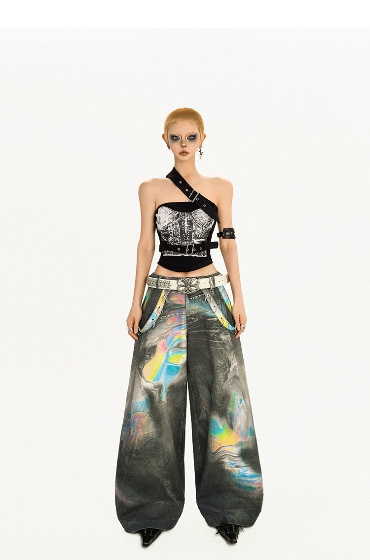 Tie-Dye Wide Leg Color Blended Design Denim Jeans NA8575