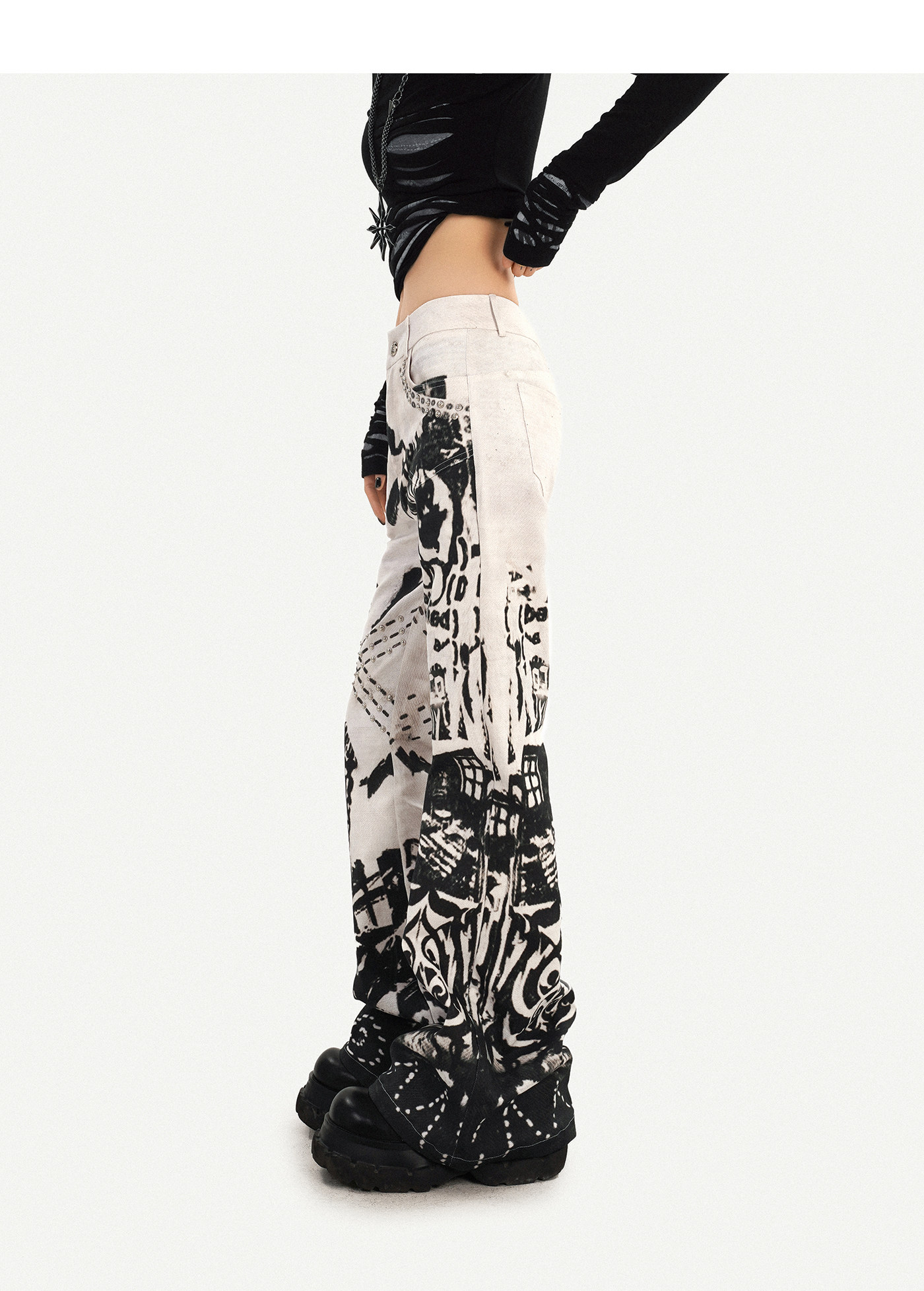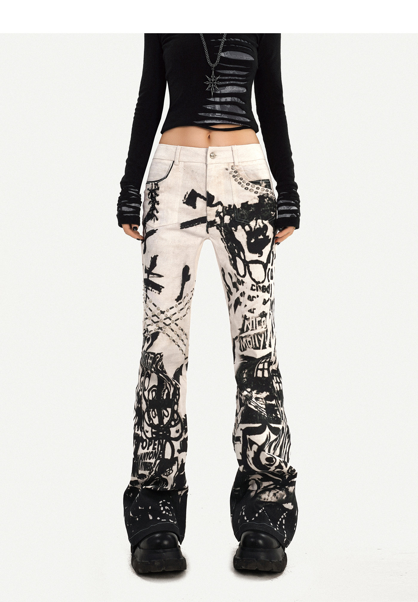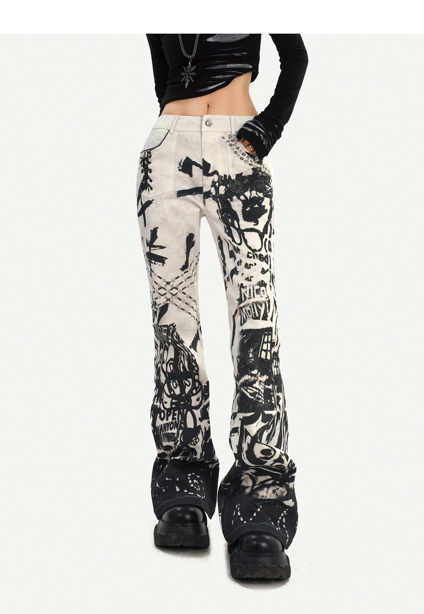 Ink Print Design Denim Jeans NA8583