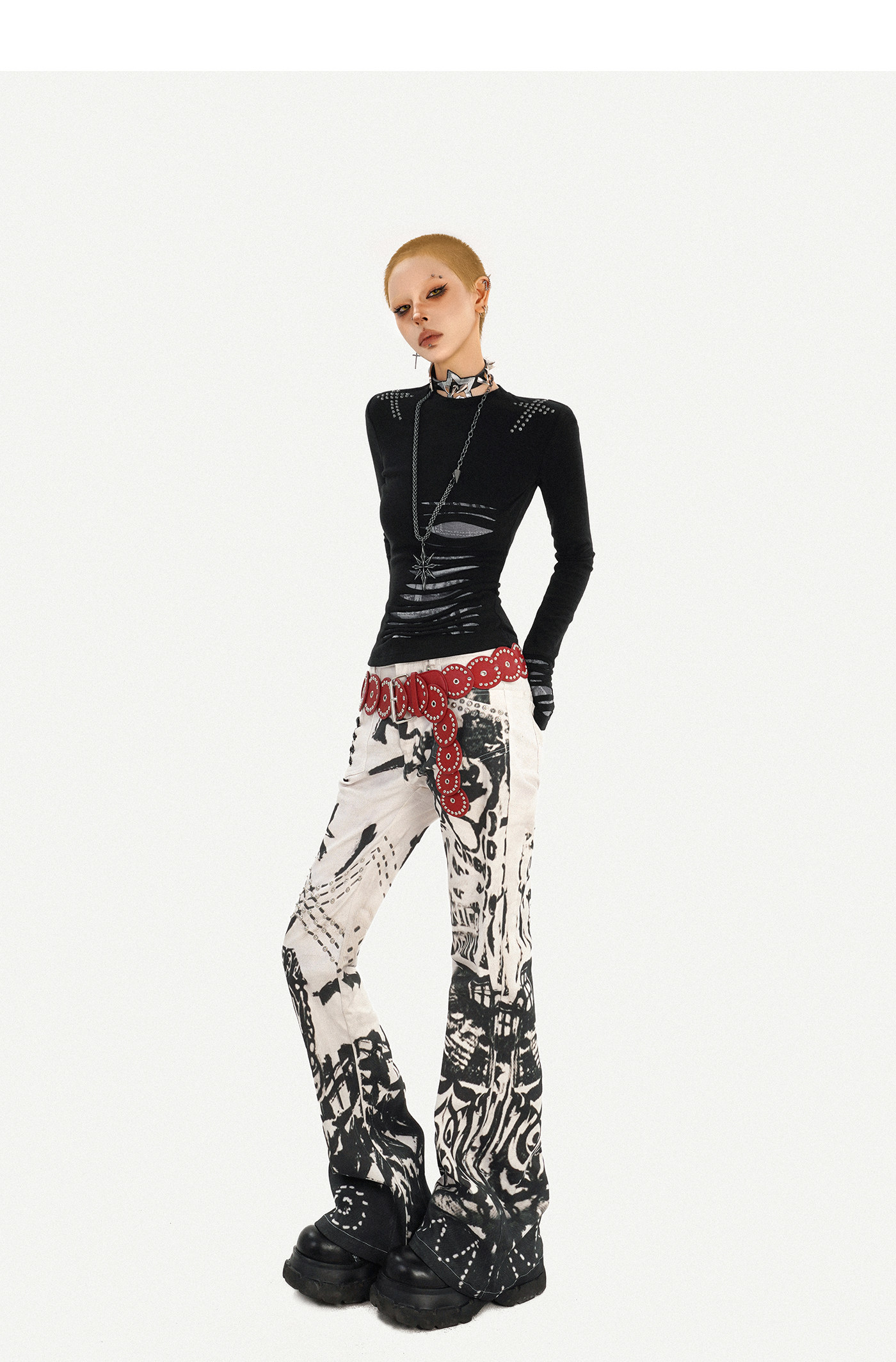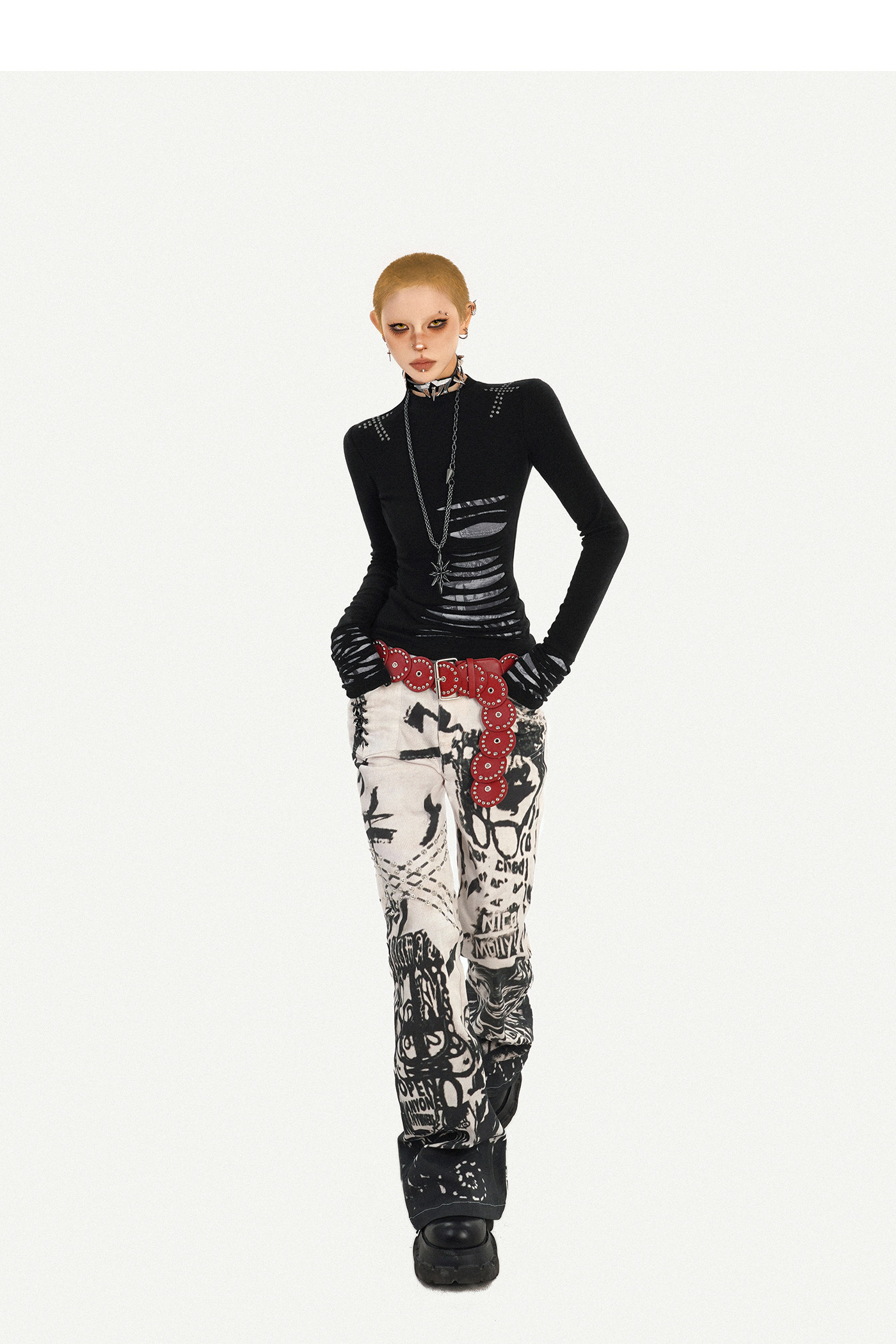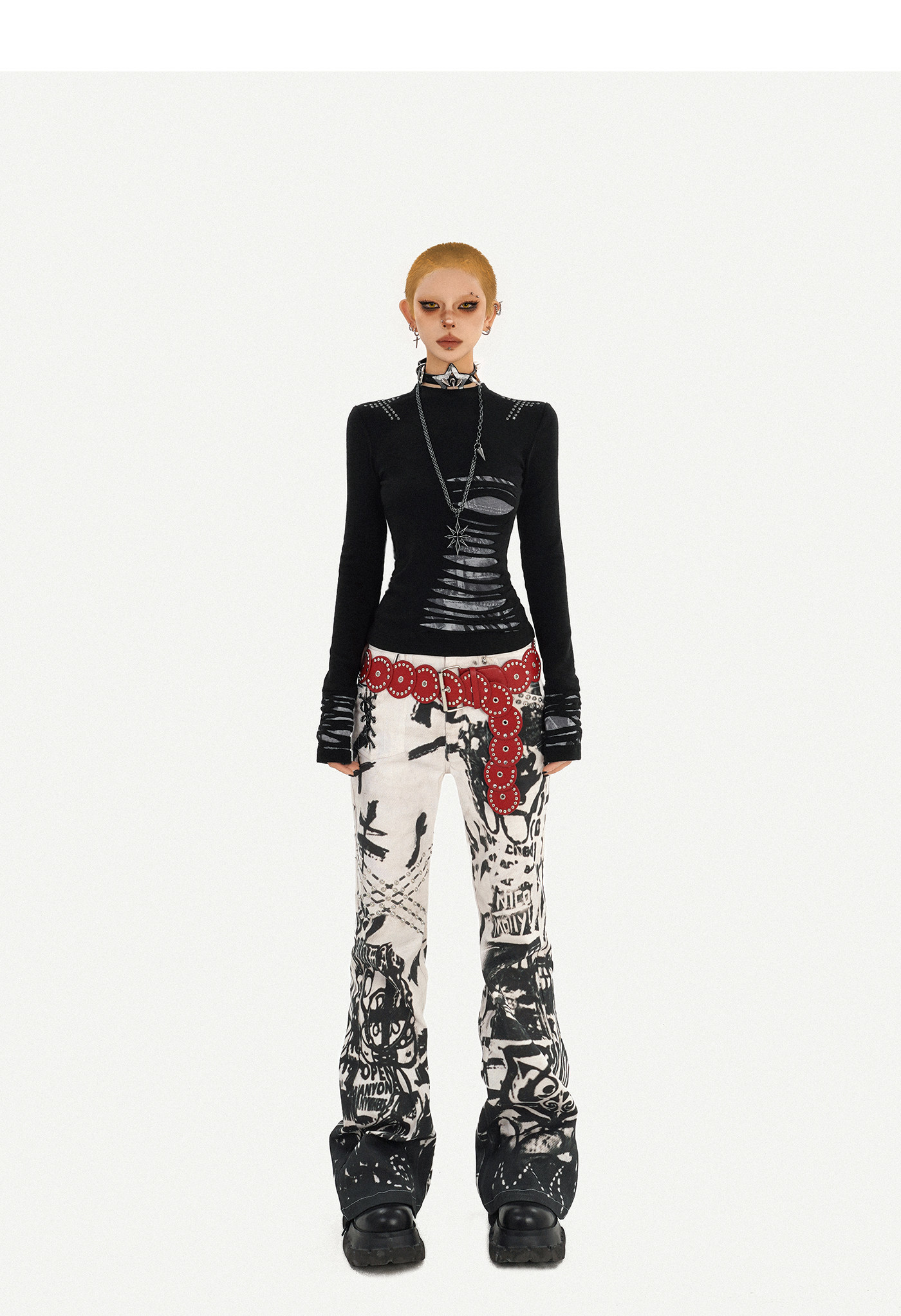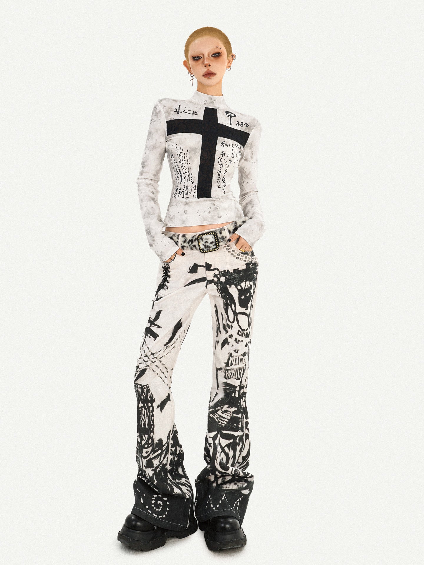 Ink Print Design Denim Jeans NA8583