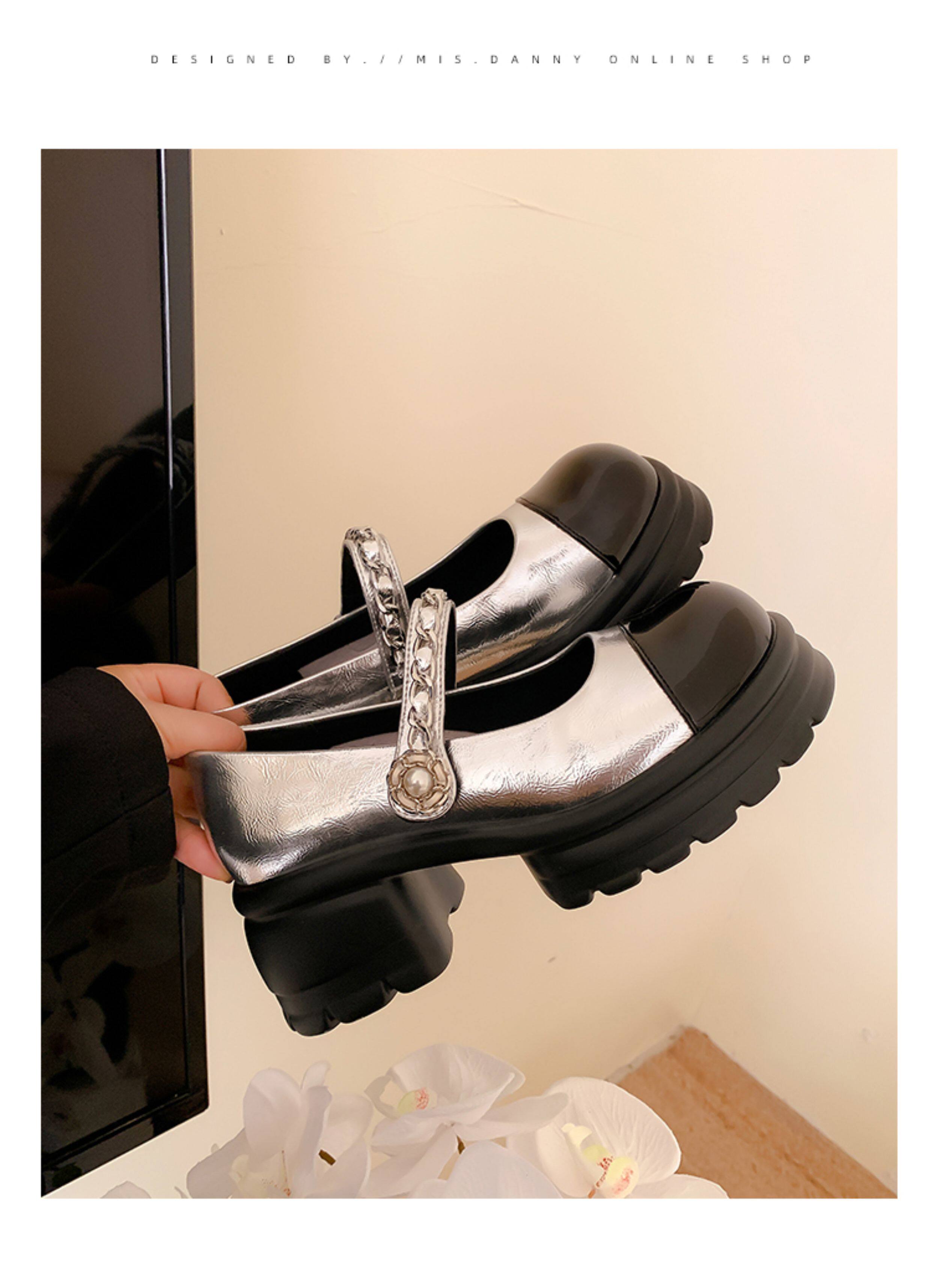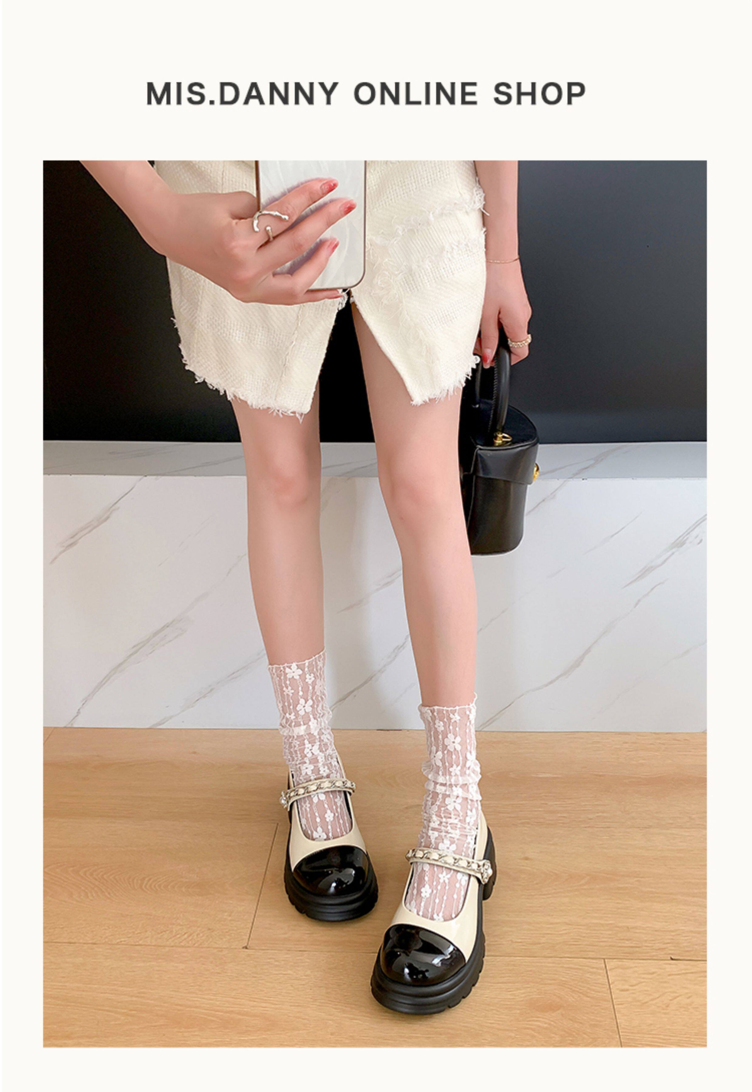 Rhinestone Strap Metallic Mary Jane Flats NA8642