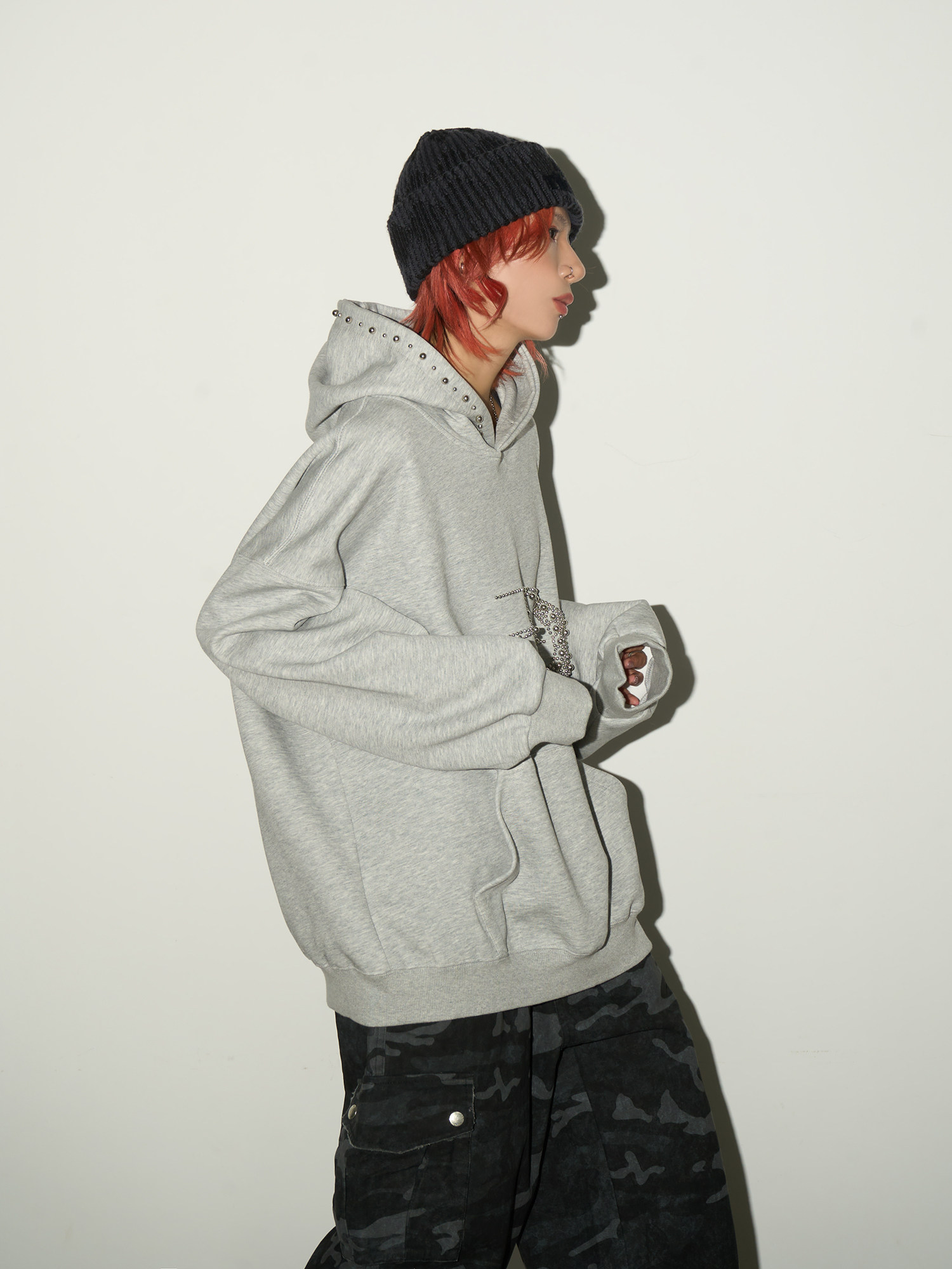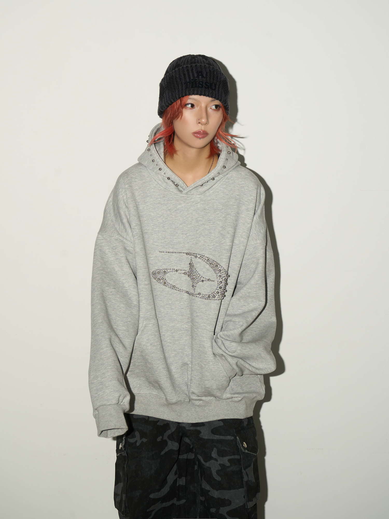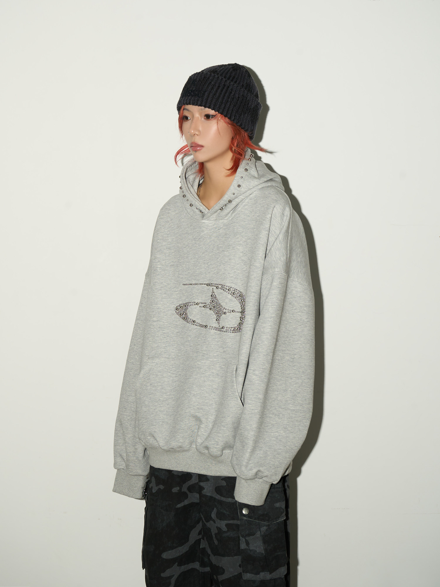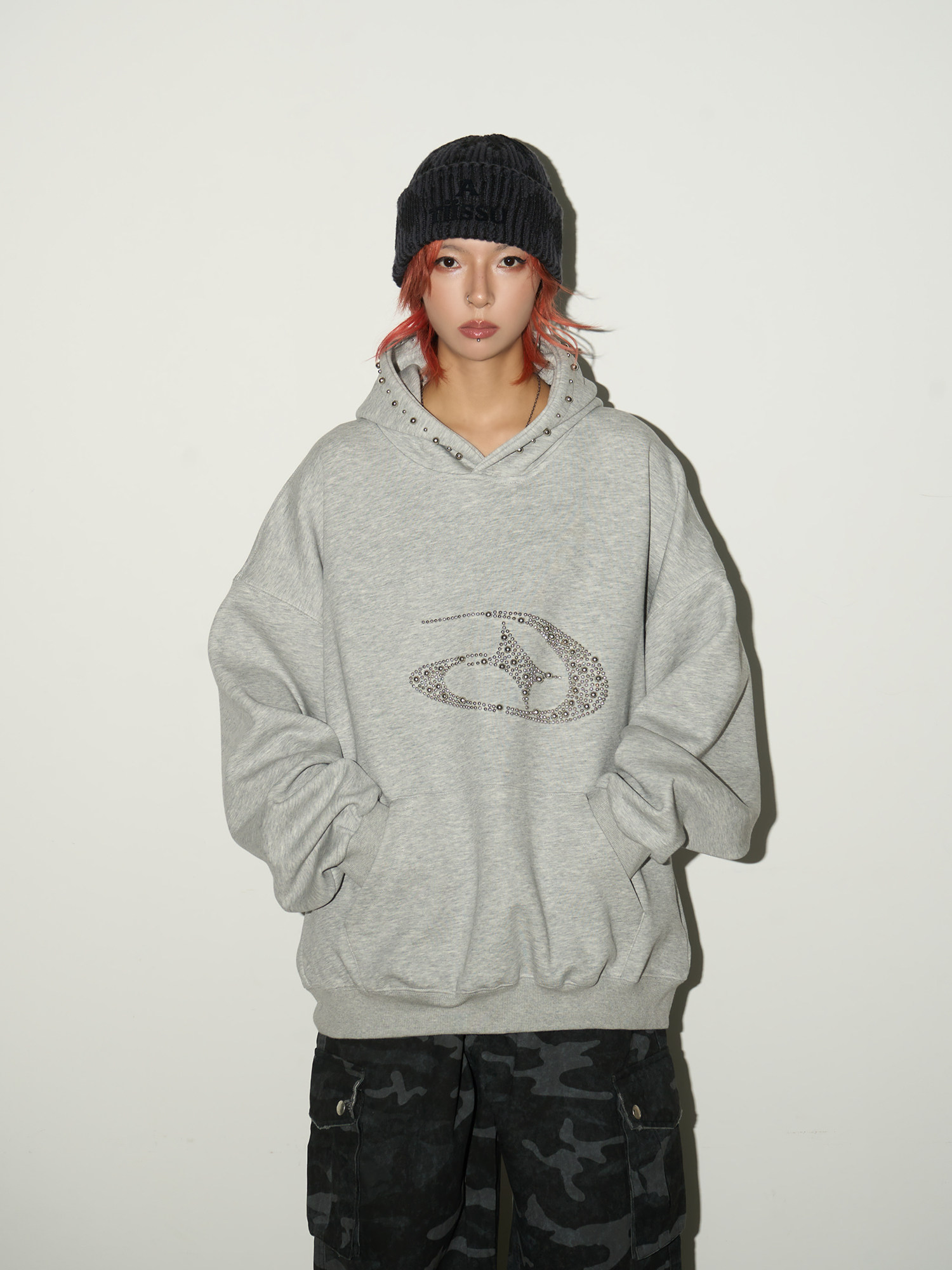 Studded Beaded Design Oversize Pullover Hoodie NA9136