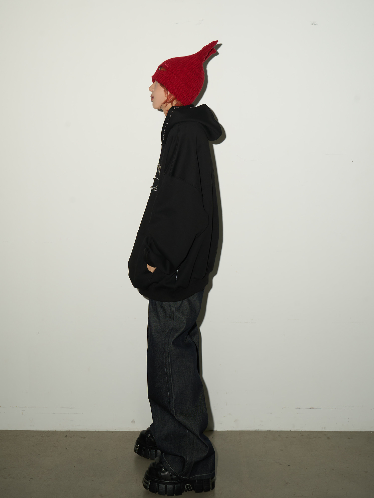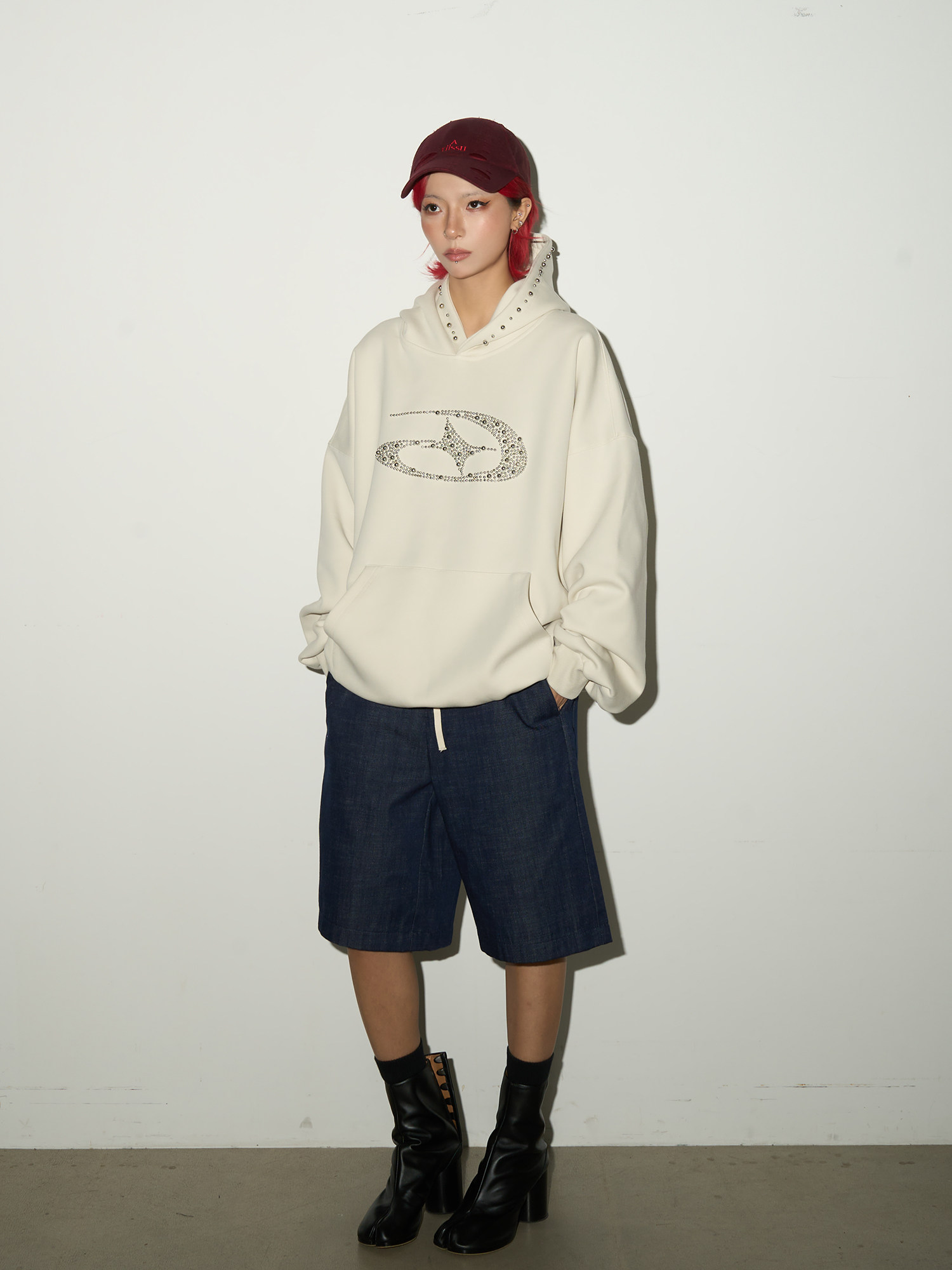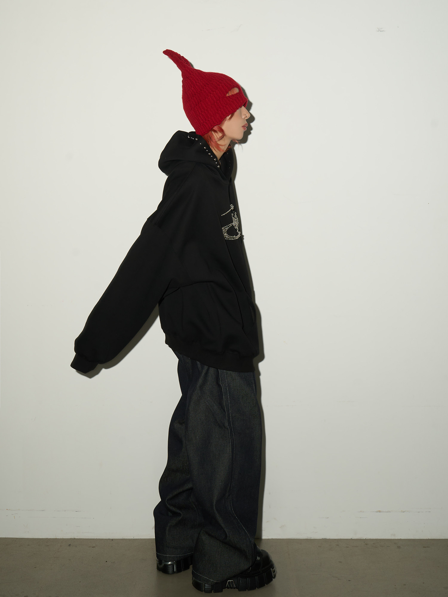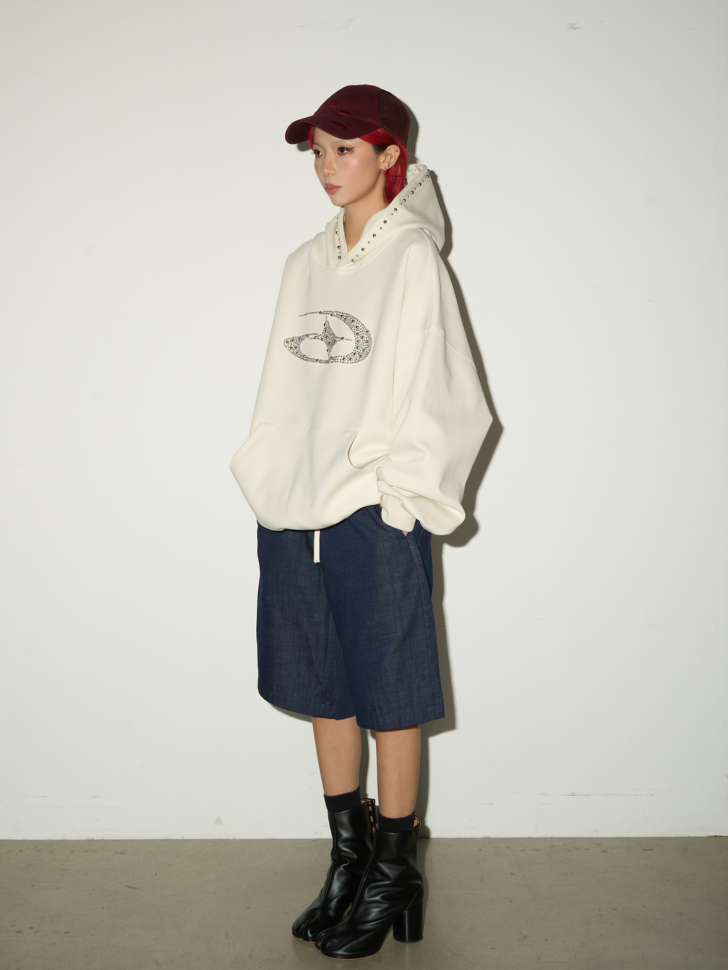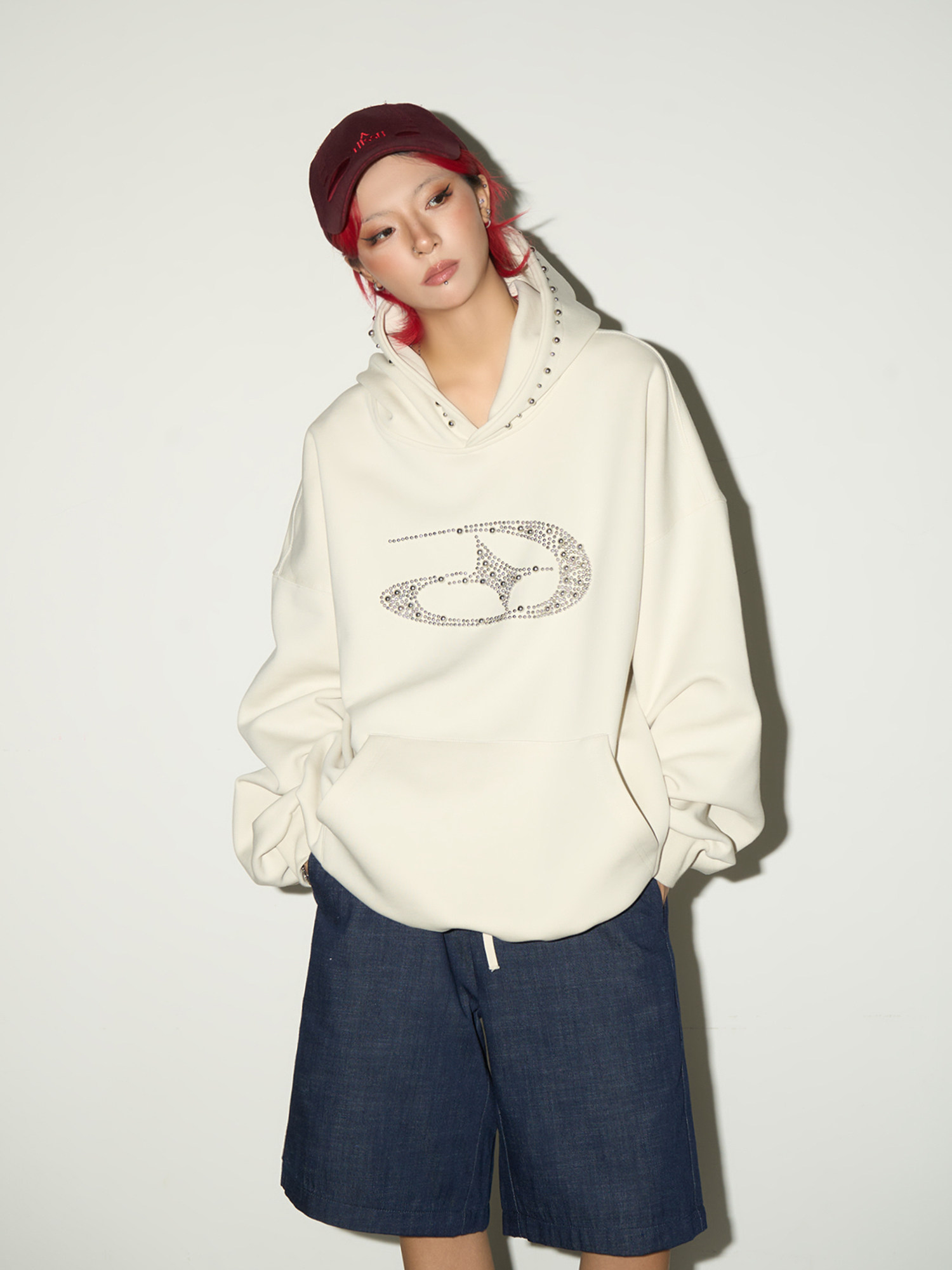 Studded Beaded Design Oversize Pullover Hoodie NA9136