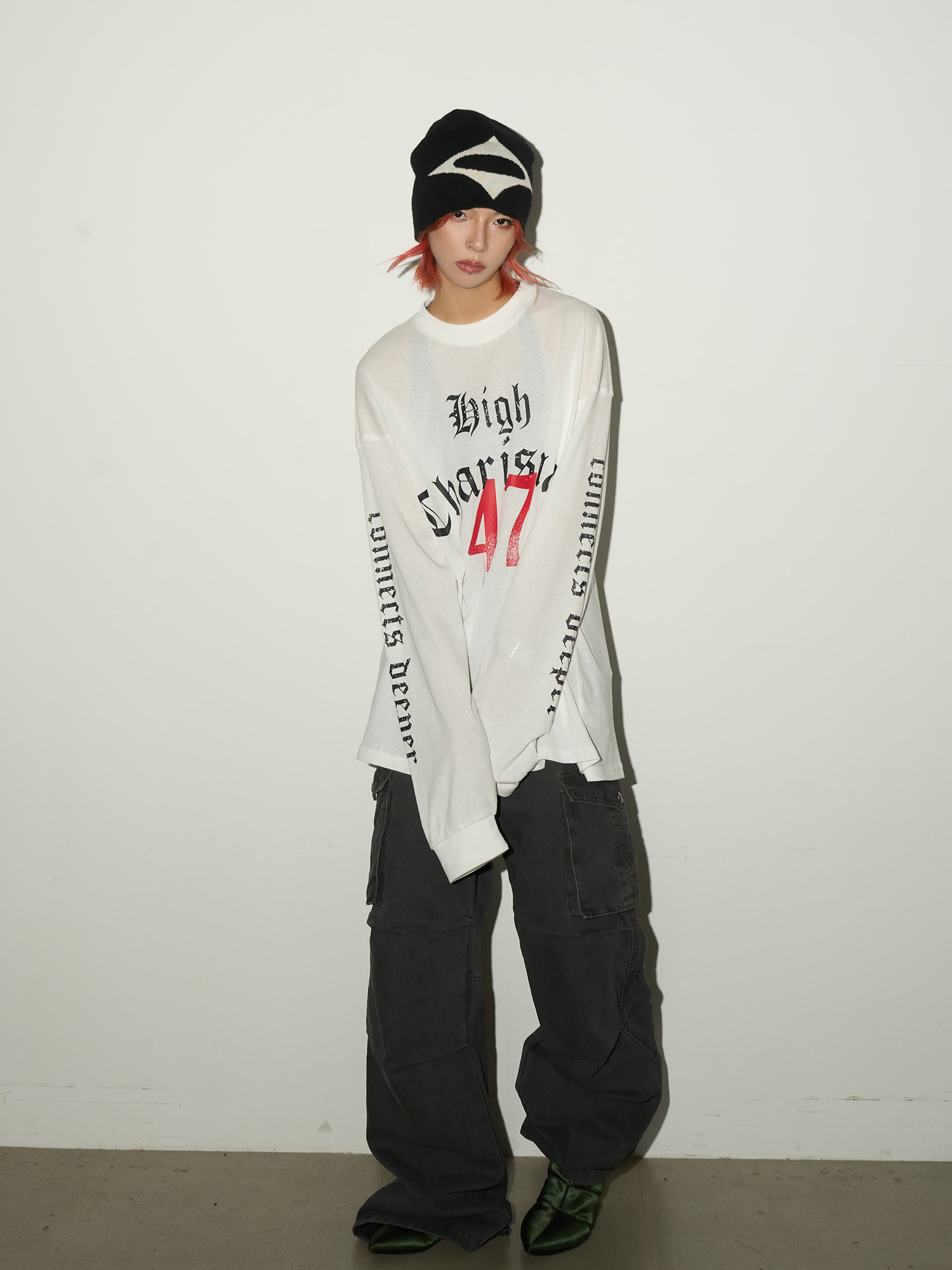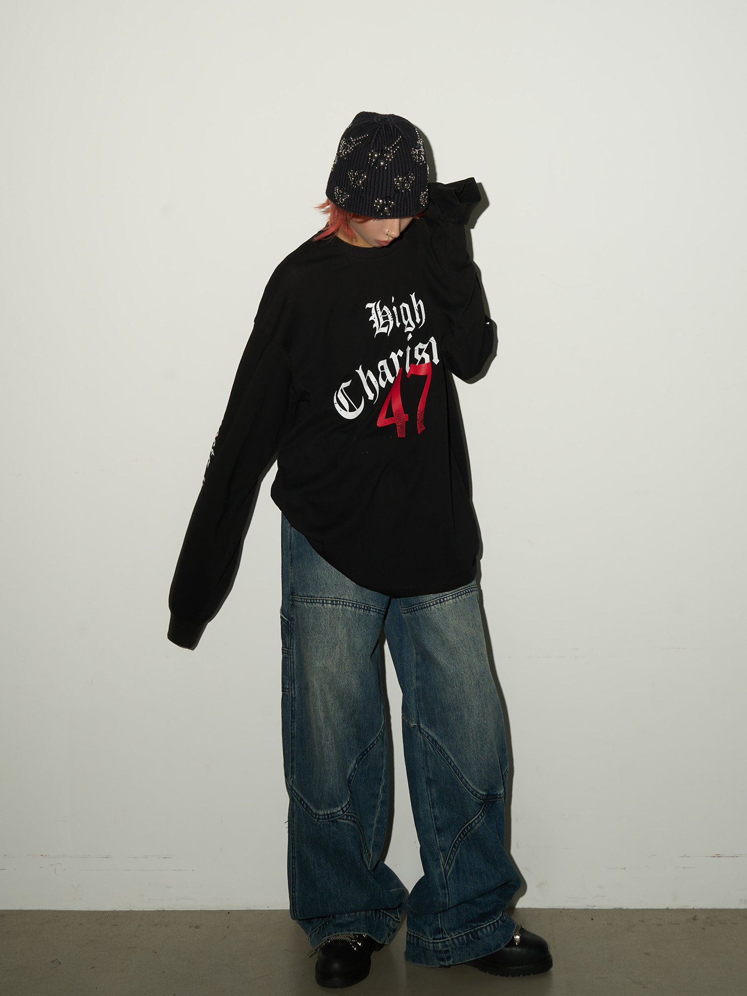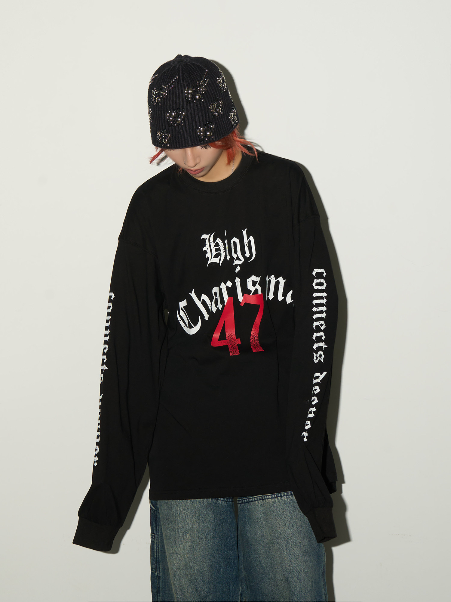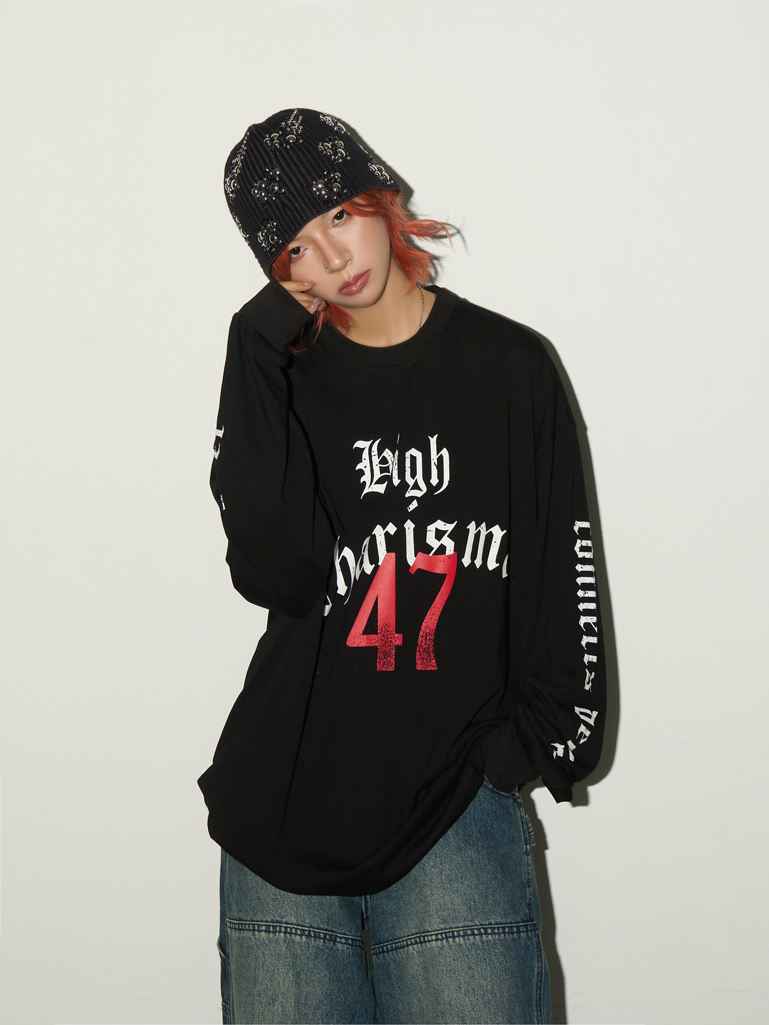 Gothic Print Damage Long Sleeve T-Shirt NA9141